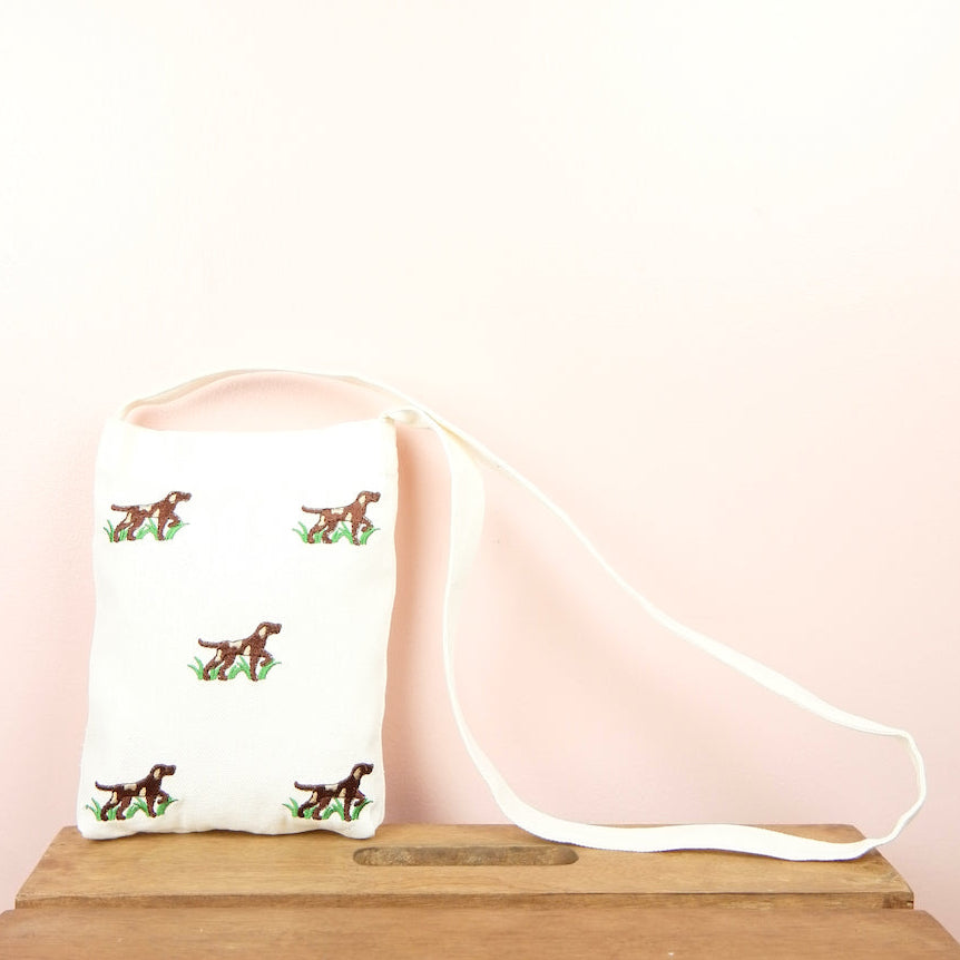 Dog in the Park on Natural Canvas Mini Sling Bag