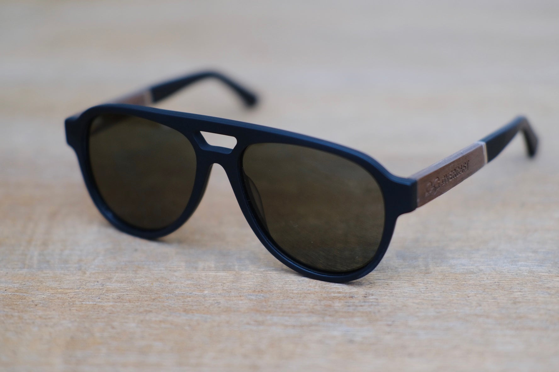 Combination of natural wood and acetate frame featuring a double-bar bridge, metal spring hinges, acetate end caps and G15 polarized lenses with built-in UV400 protection.Lens - 52 mm | Bridge - 20 mm | Temple -153 mm