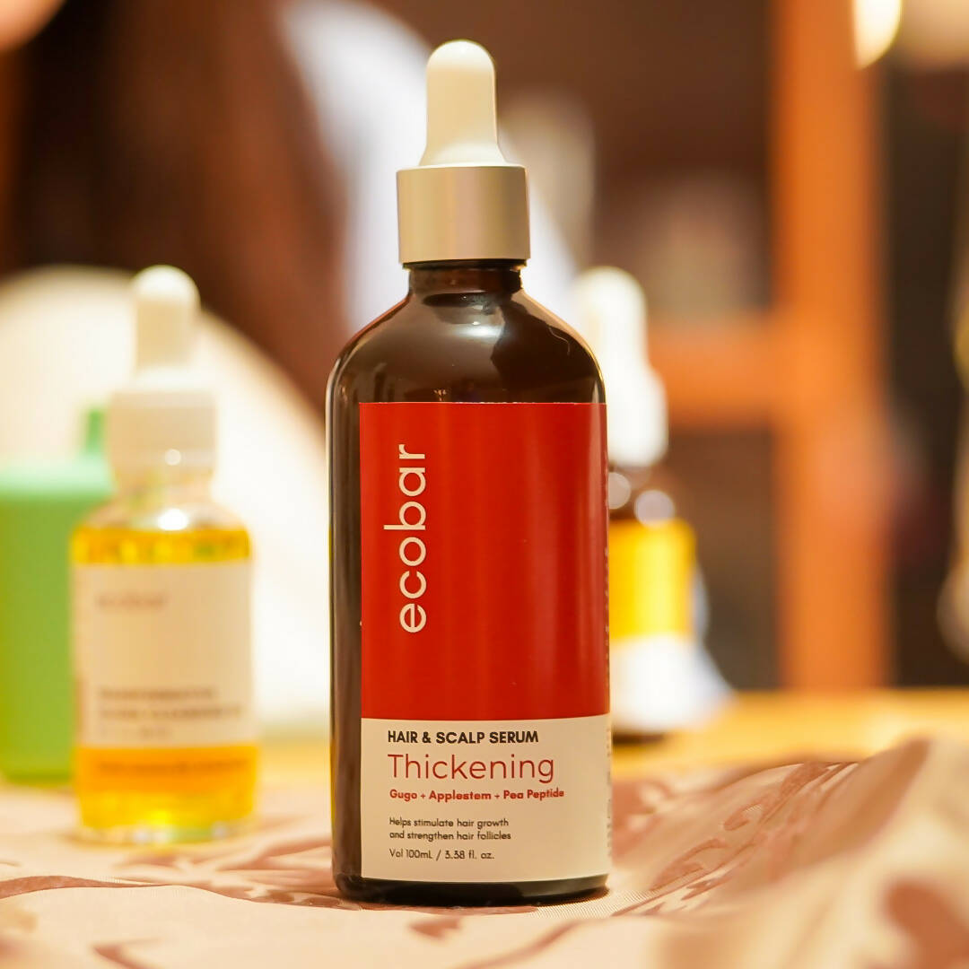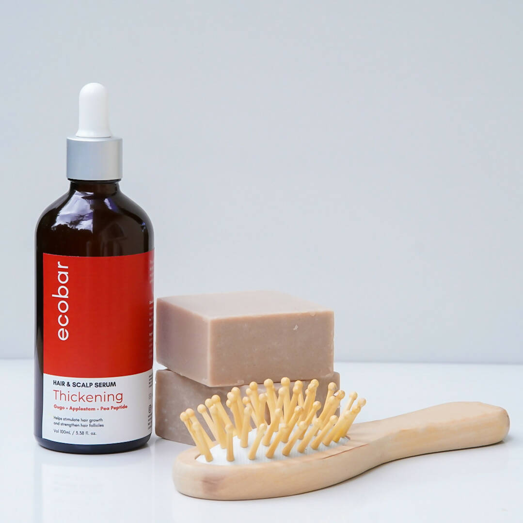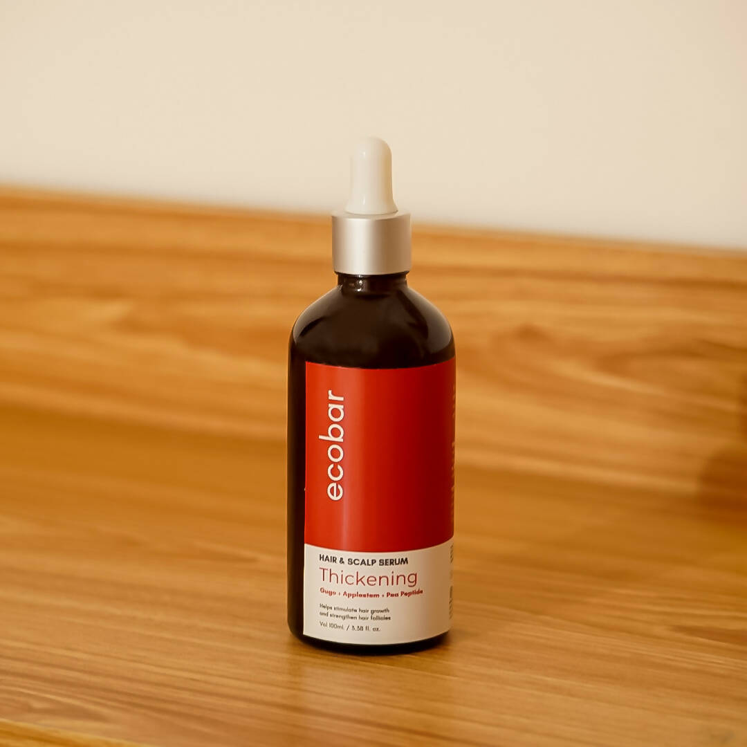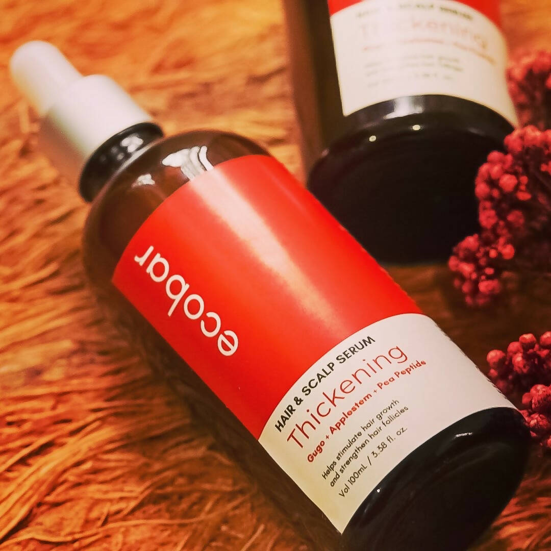 Our best selling Thickening Shampoo bar now has a new partner! Introducing our Hair and Scalp serum - the newest product line of Ecobar. Our Thickening serum variant contains clinically tested blend of natural extracts - gugo, applestem and pea peptide that helps alleviate hair fall and increase volume by providing nourishment to hair and scalp. Great partner for our Thickening shampoo bar!Directions for use: Apply the serum directly on scalp. Gently massage to aid absorption. Do not rinse off the serum within 6 hours of application. For best results, apply the serum for 1 to 2x a day for 90 days.