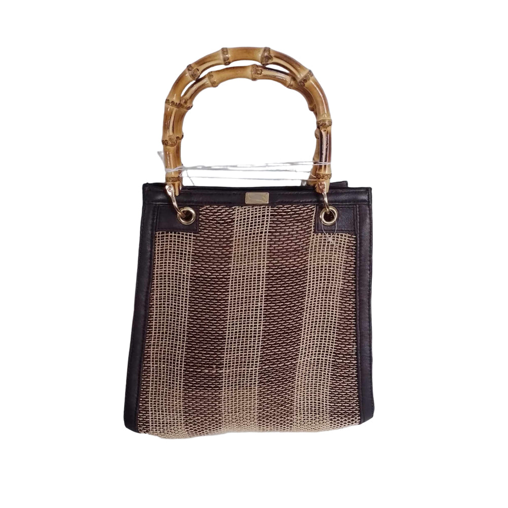 ABACA TOTE BAG WITH LEATHER TRIMMING AND BAMBOO HANDLE