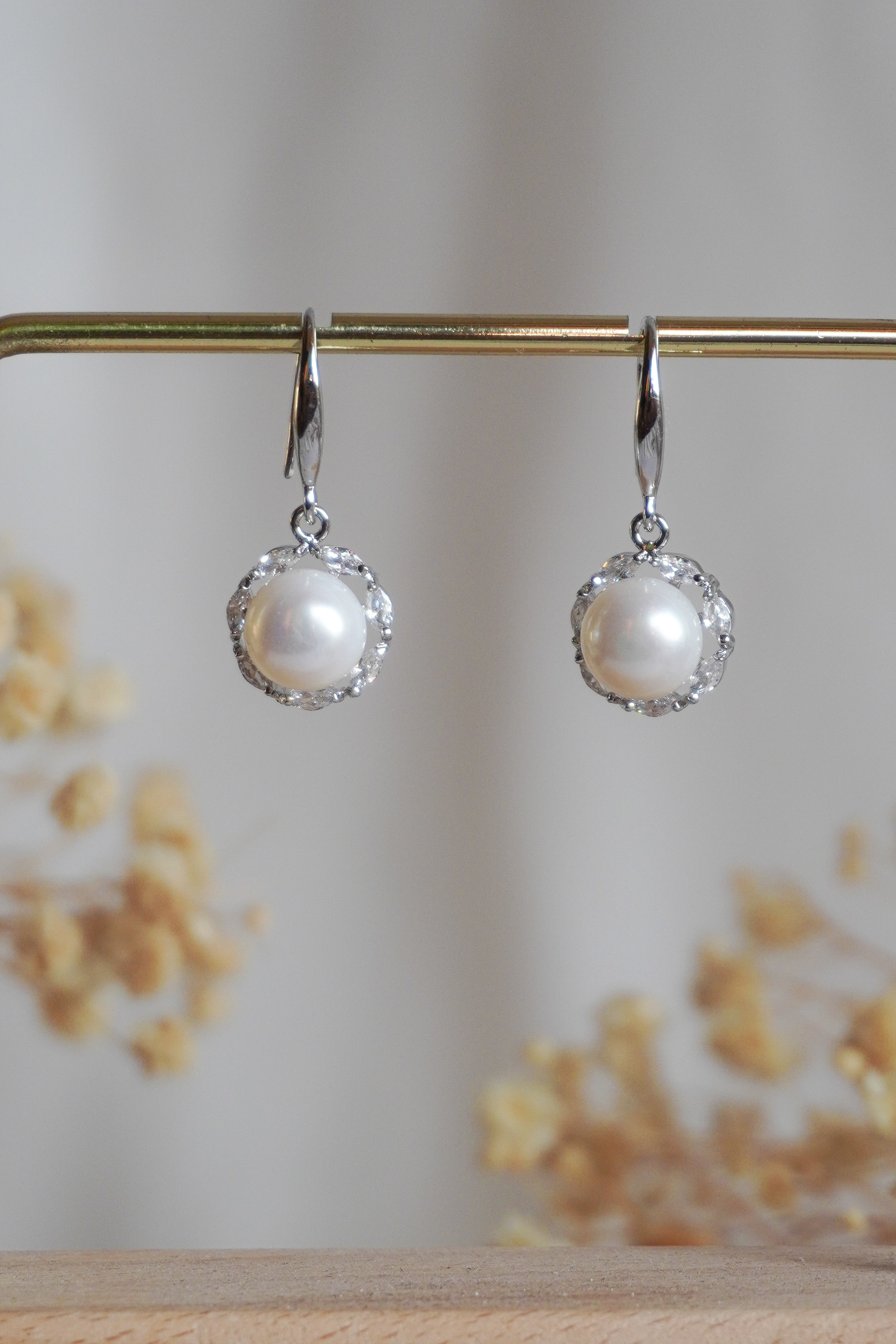 freshwater pearl | silver | dangling | zirconia