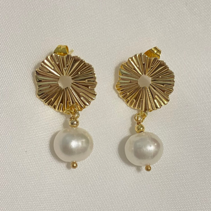 Freshwater Pearl Earrings; Material: Gold Plated; Length: 0.5 inches; Shape: Potato; Size: 8-9 mm