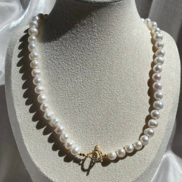 Freshwater Pearl Necklace Material: Gold Plated Lock Length: 18 inches Shape: Potato Size: 8-9 mm
