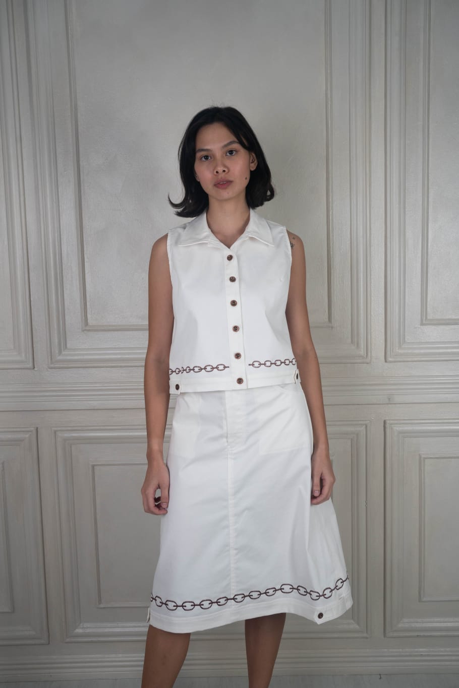 Pencil skirt with chain embroidery