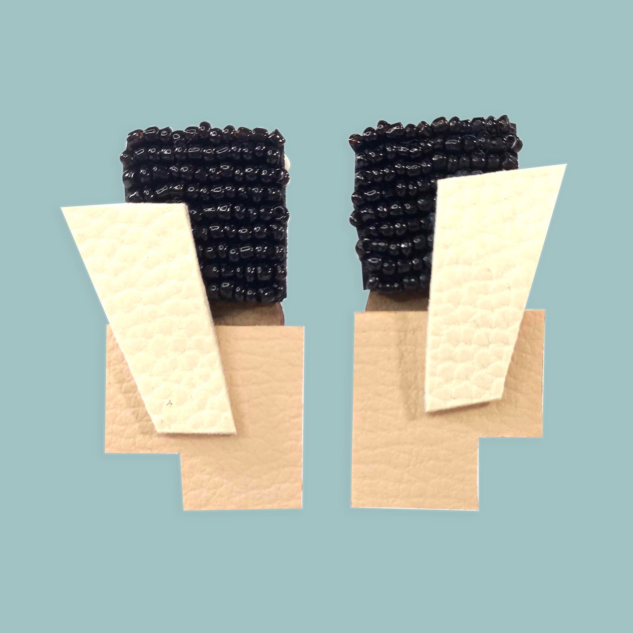 "Ettore" In Neutral Hand-Beaded Up-cycled Leather Earrings