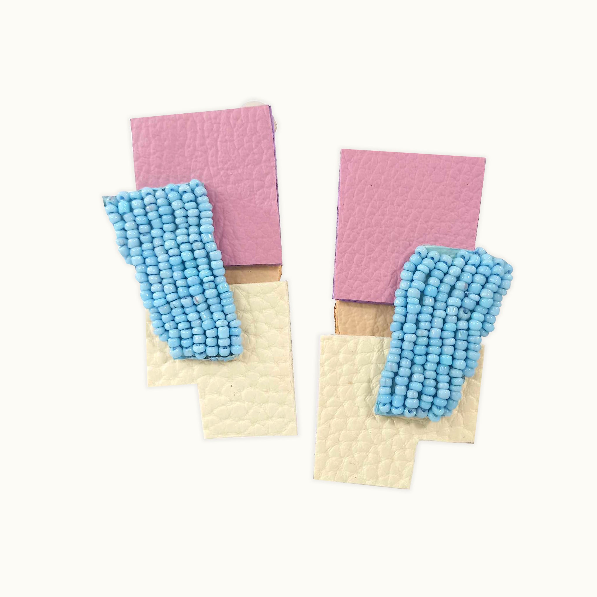 "Ettore" In Pastel Hand-Beaded Up-cycled Leather Earrings