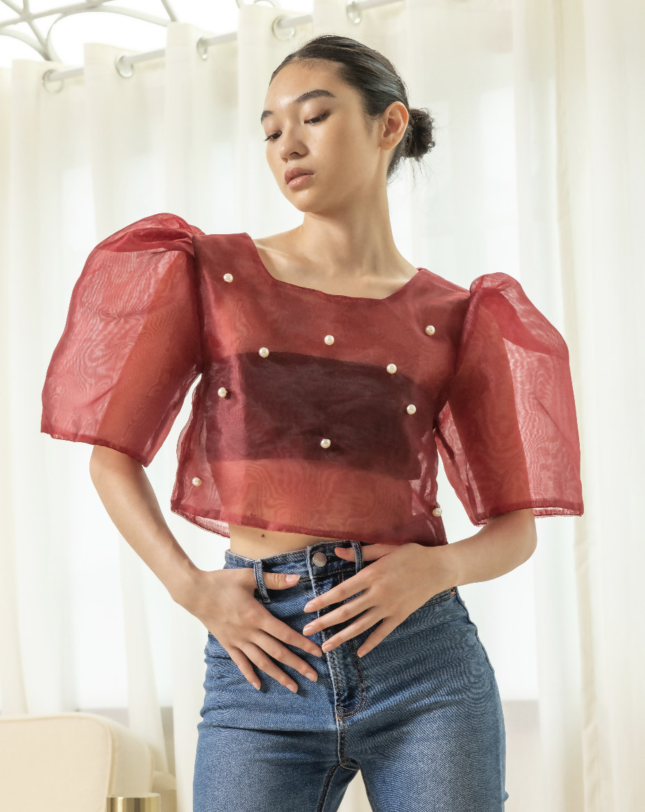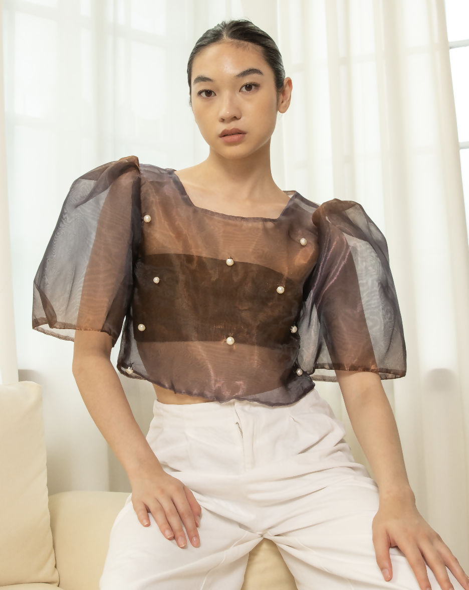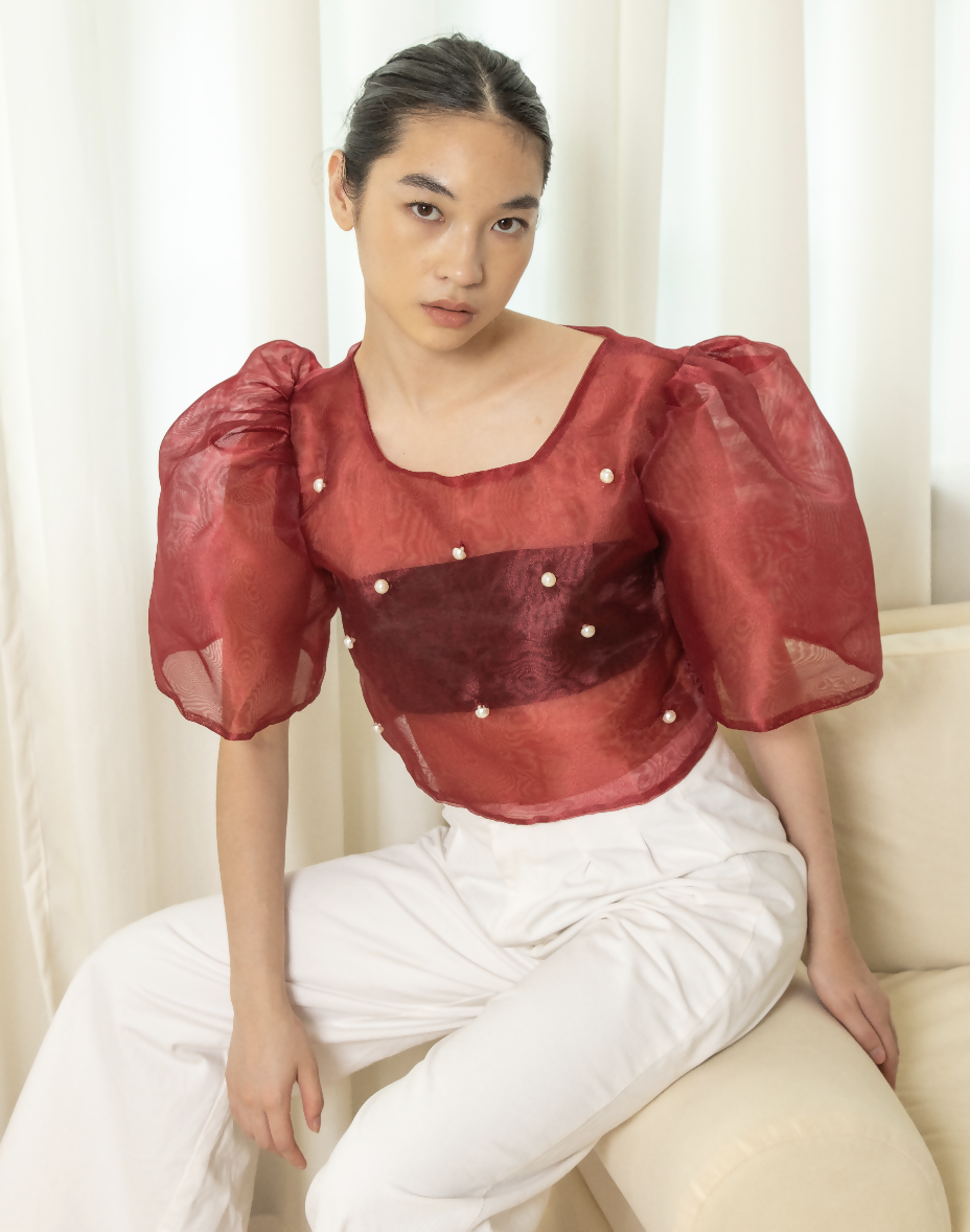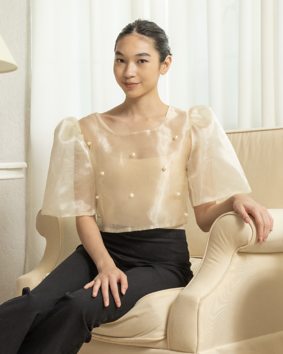 Presenting our modern twist on the timeless filipiniana blouse for women. This captivating blouse combines classic elements with contemporary flair. It features a square neckline and voluminous puff sleeves, adding elegance and drama. The front is adorned with scattered pearl detailing, while the back boasts pearl buttons for a luxurious touch. With its loose-fitting silhouette and short sleeves, this blouse offers both comfort and style. Embrace tradition with a modern edge and make a statement wherever you wear it. Fabric - Organza Colors: Cream, Black, and Purple x Bronze Pearl button enclosure at the back Note: Actual color may vary depending on the screen setting Size Chart (inches): XS SMALL MEDIUM LARGE BUST Up to 32 Up to 34 Up to 36 Up to 38 LENGTH 14 15 16 17 Garment Care: Hand wash separately from other items Iron or steam in low heat