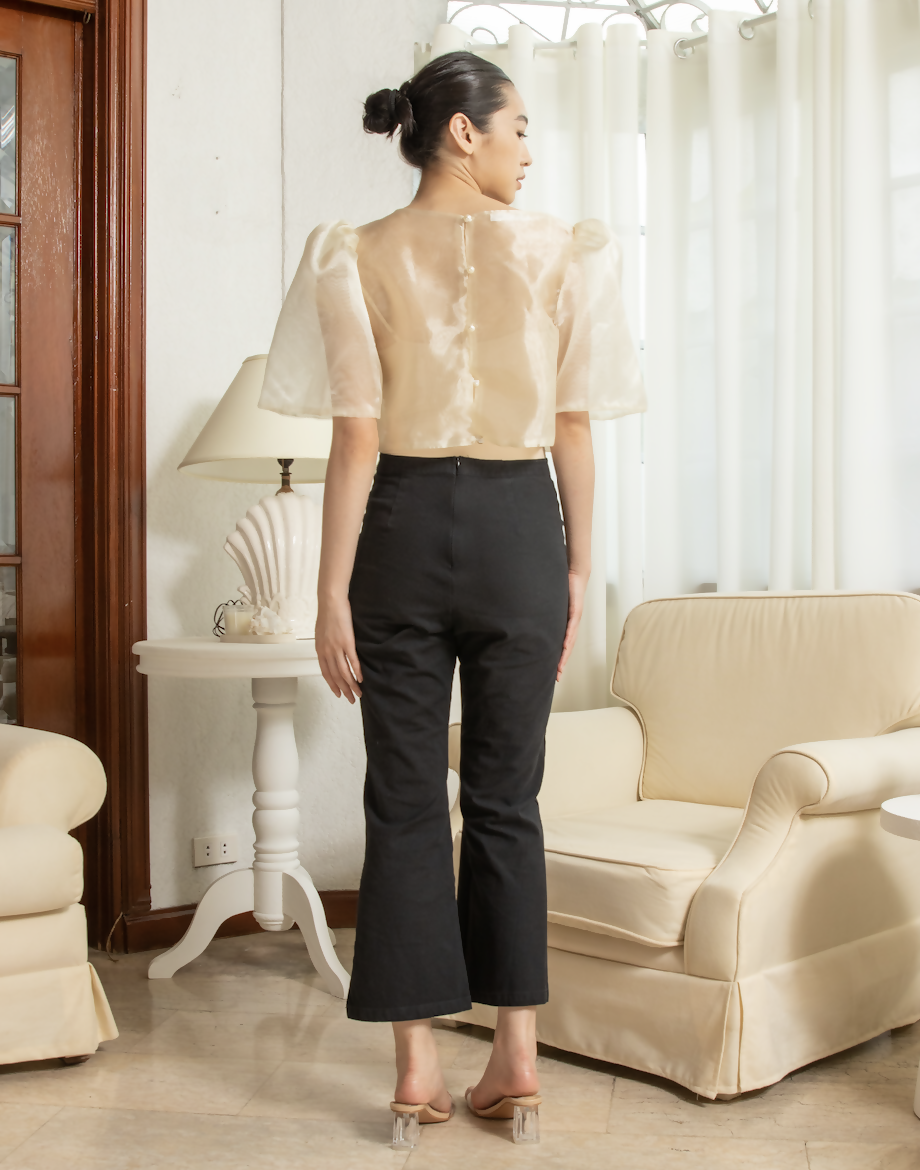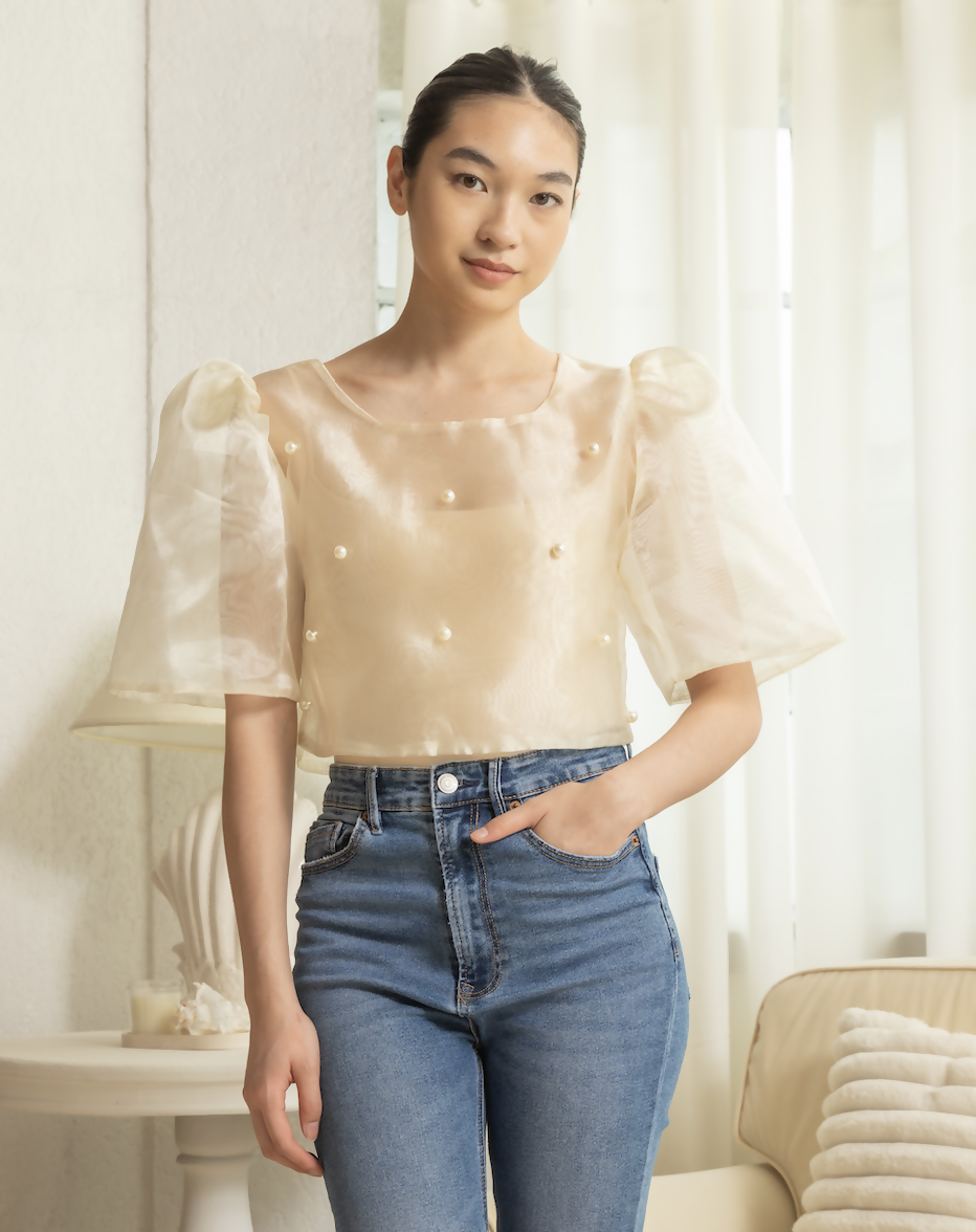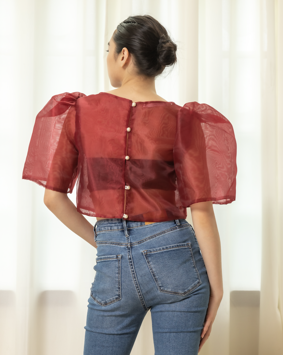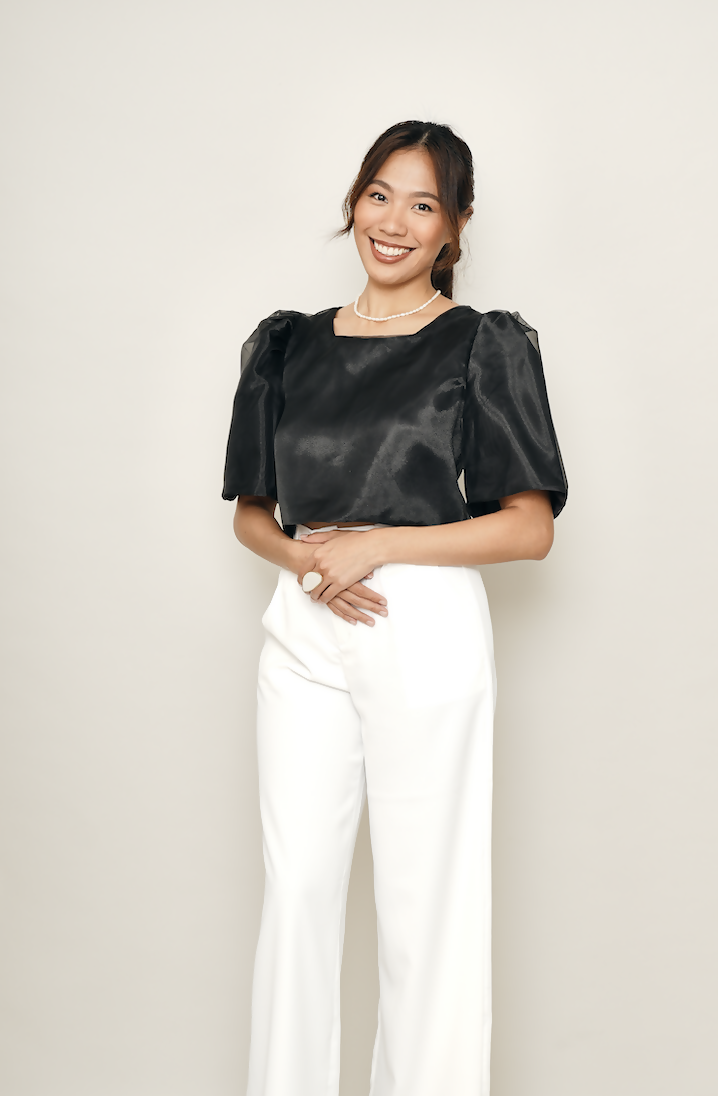 Presenting our modern twist on the timeless filipiniana blouse for women. This captivating blouse combines classic elements with contemporary flair. It features a square neckline and voluminous puff sleeves, adding elegance and drama. The front is adorned with scattered pearl detailing, while the back boasts pearl buttons for a luxurious touch. With its loose-fitting silhouette and short sleeves, this blouse offers both comfort and style. Embrace tradition with a modern edge and make a statement wherever you wear it. Fabric - Organza Colors: Cream, Black, and Purple x Bronze Pearl button enclosure at the back Note: Actual color may vary depending on the screen setting Size Chart (inches): XS SMALL MEDIUM LARGE BUST Up to 32 Up to 34 Up to 36 Up to 38 LENGTH 14 15 16 17 Garment Care: Hand wash separately from other items Iron or steam in low heat