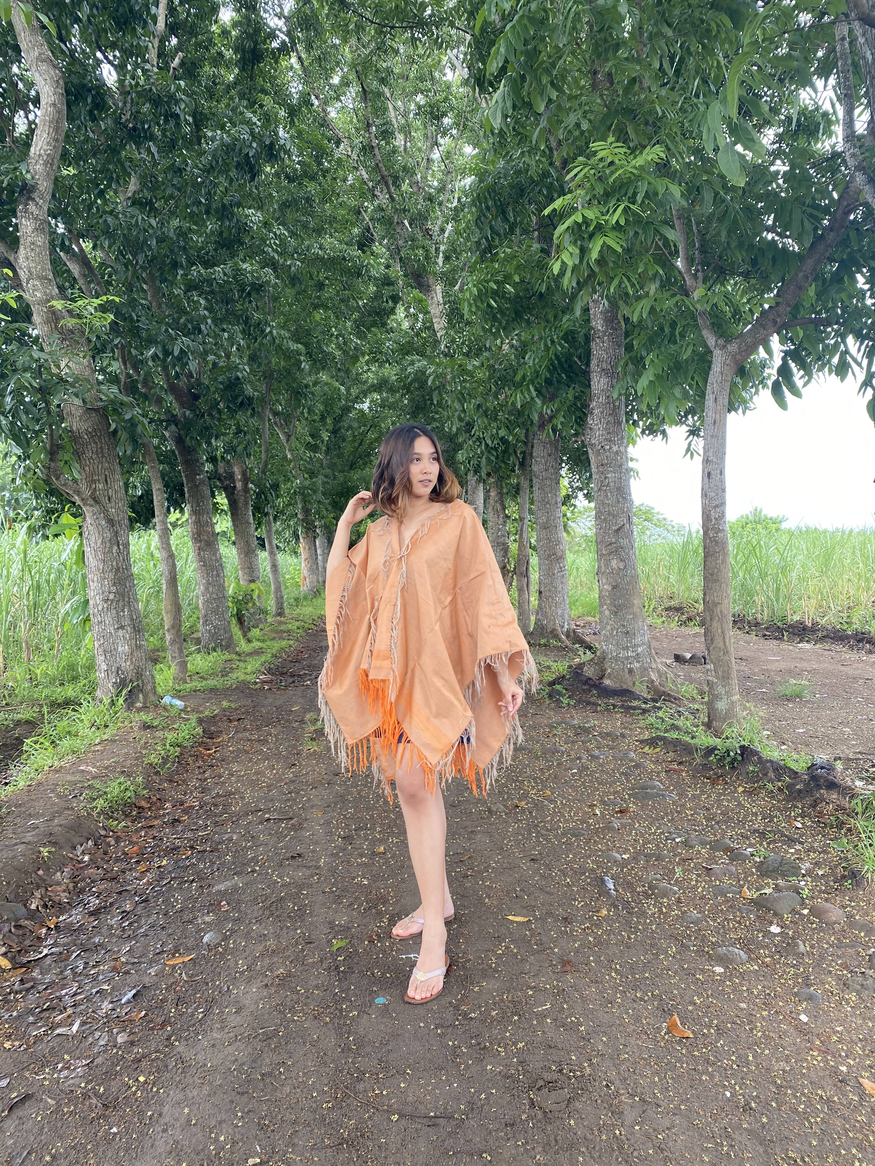 Faith is another Artsy poncho design, Combining upcycled threads creates this cool and fun poncho Vida Hayes design. Negros Island Weavers loom by hand using plain pattern and add fine tassel edges. The poncho is handwoven with a soft polycotton blend. Great to all-year-round weather.