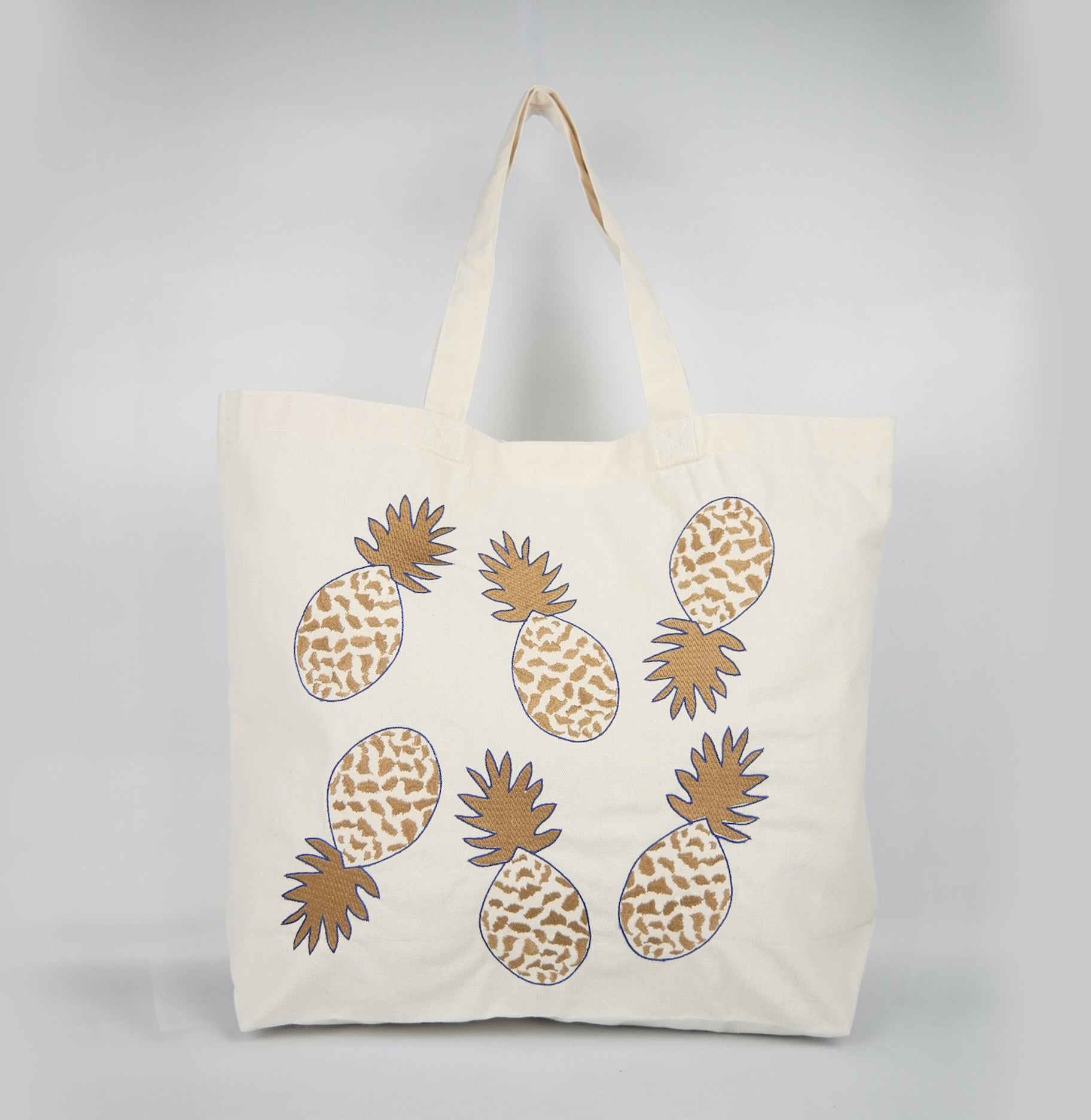 Fancy Pineapple on Natural Canvas Shopping Tote