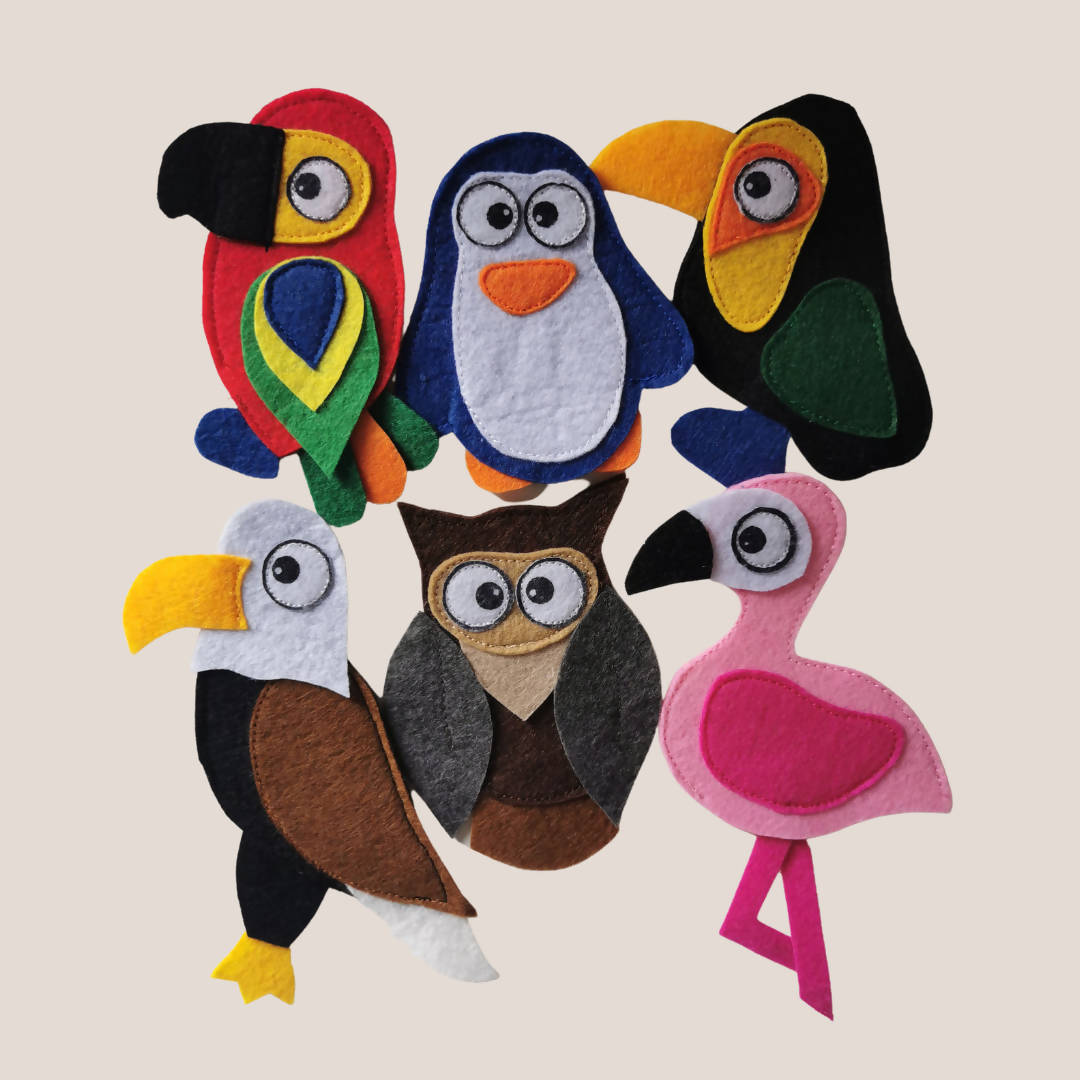Explore the adventures of these pretend flying creatures and discover the things they can do. Includes 1 eagle, 1 owl, 1 flamingo, 1 penguin, 1 parrot and 1 toucan.