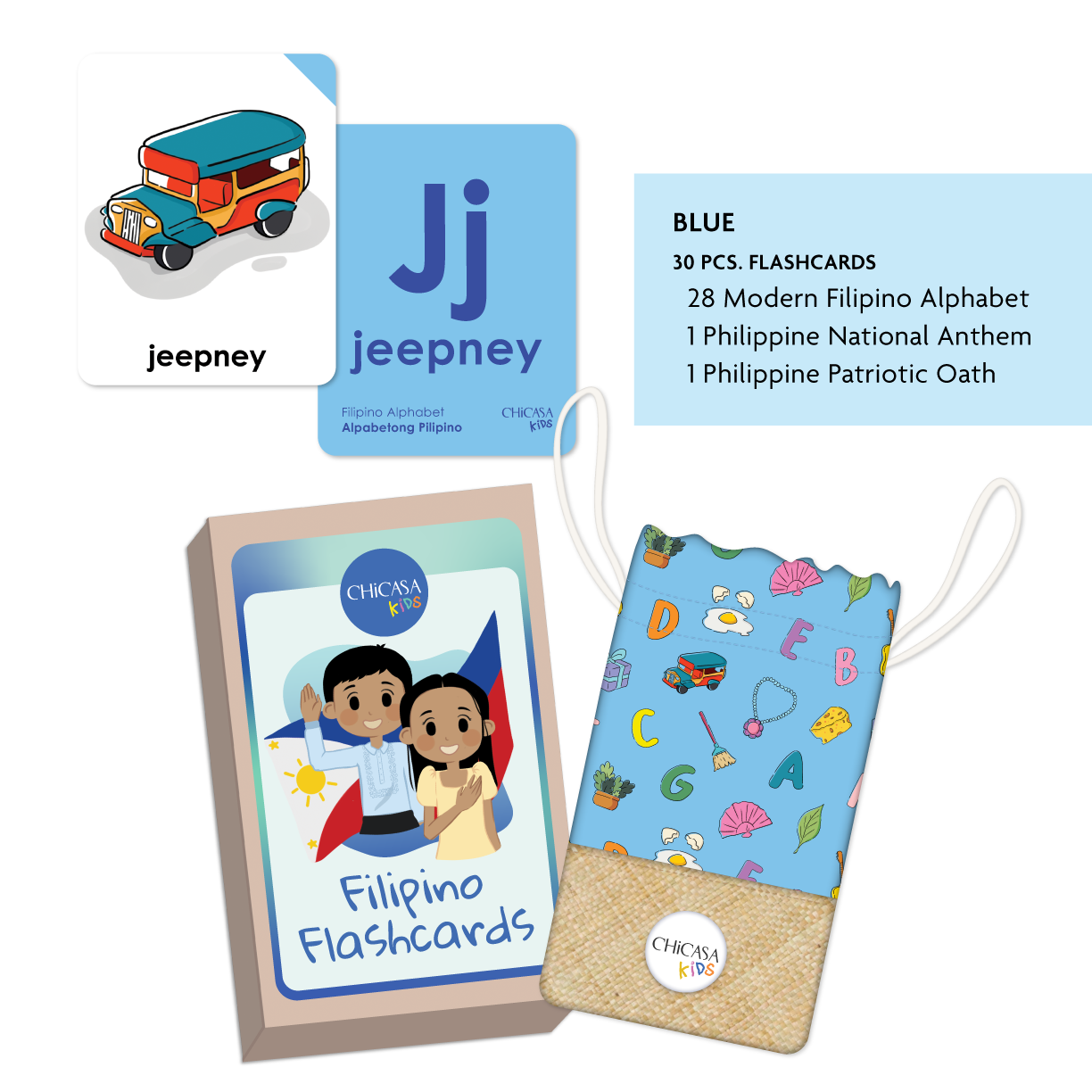 Learn Tagalog at home with the Filipino Flashcards! Crafted to bring true Filipino influences into your home,  from the curated words and colorful illustrations on each card to the handwoven banig pouches. Collect all 6 colors!