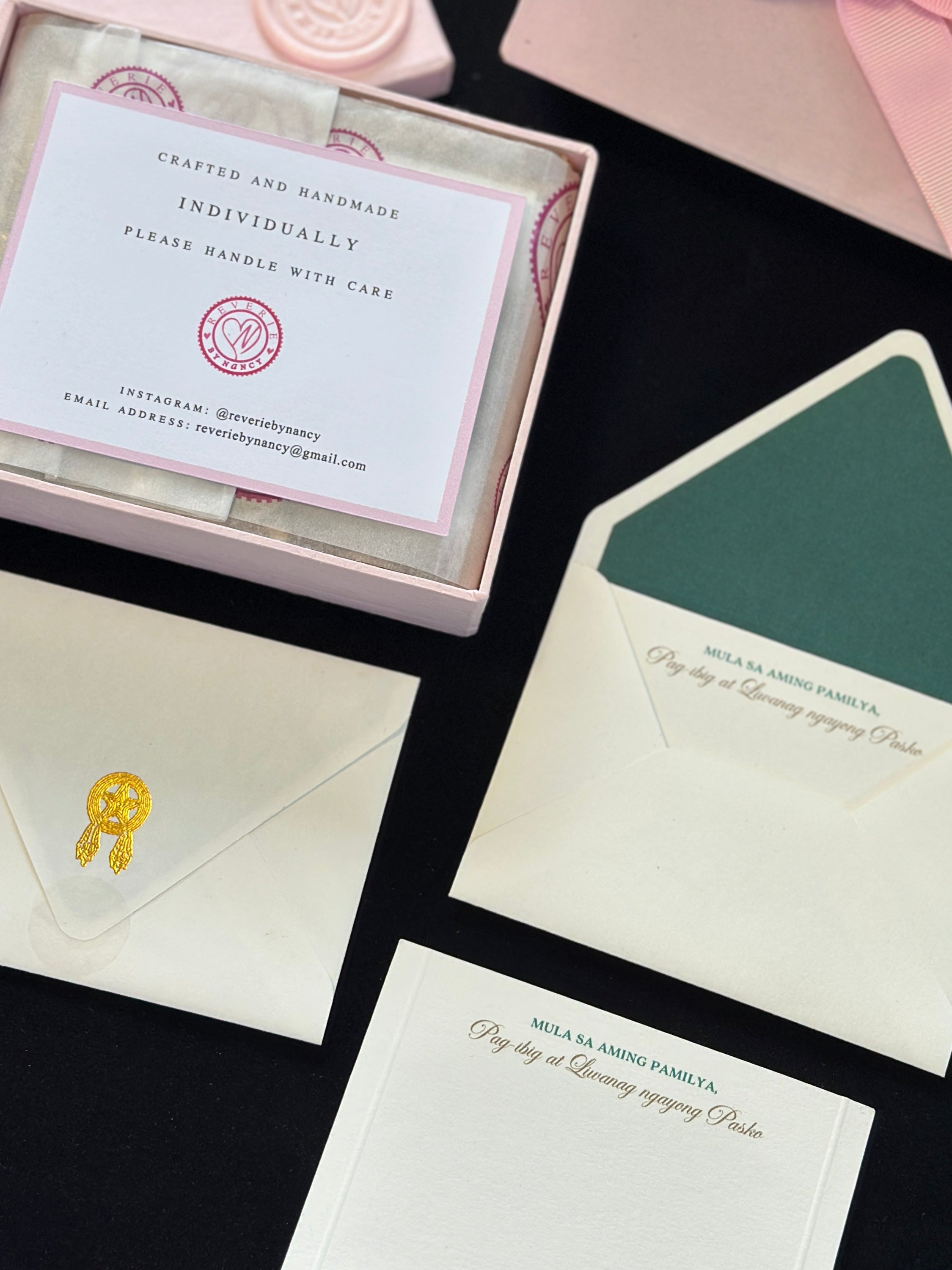 Reverie By Nancy Stationeries are made with premium specialty paper. Crafted and handmade with care - please handle gently.