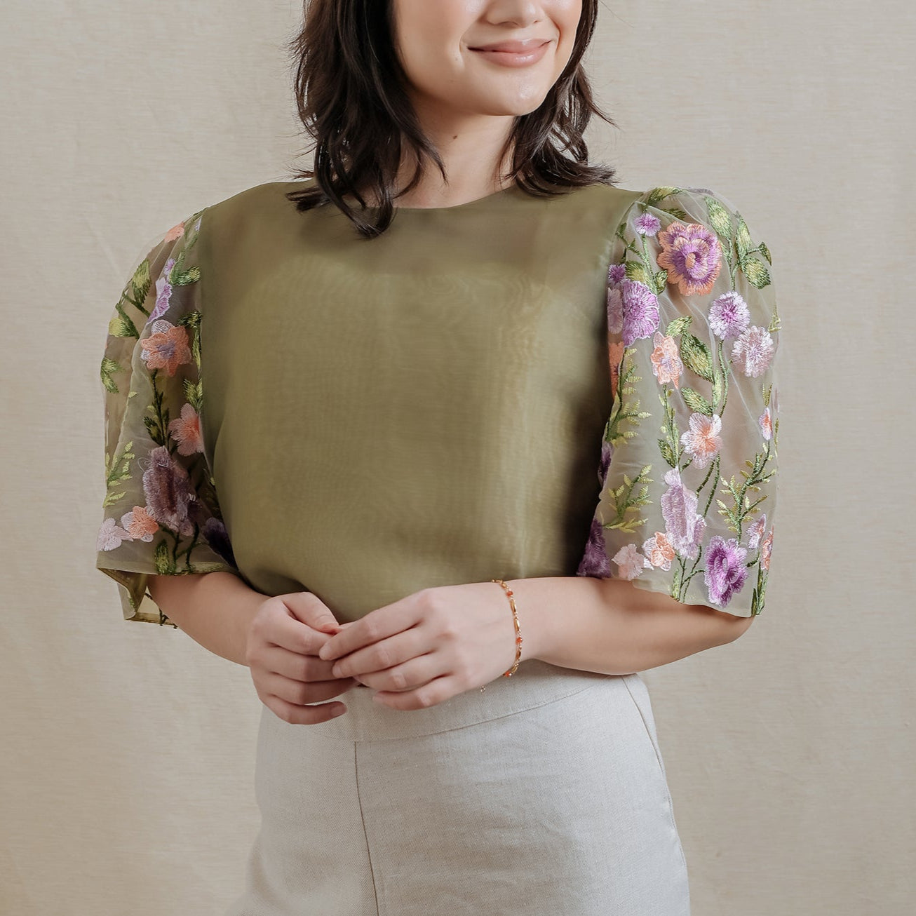 KIMONA BLOUSE also known as the top part of Filipiniana Terno attire that embodies elegance of our cultural heritage. It is characterized by its loose-fitting, short-sleeved blouse that is typically made from lightweight and colorful fabrics and flowing silhouette. Its butterfly sleeves are wide and voluminous, extending from the shoulder to the forearm, creating a distinctive and graceful appearance.  Fabric: 2 FLY MATTE ORGANDI Sizes : Shoulder-Bust-Length S 14-34-15 M 15-36-17 L 16-38-18 XL 17-40-20 2XL 18-42-21