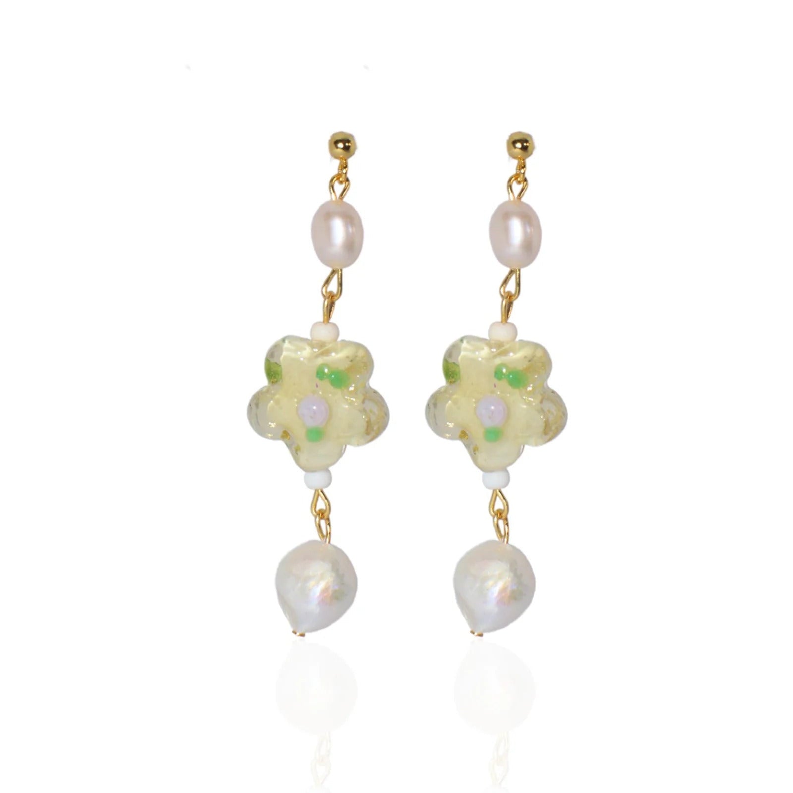 Romantic and artful, the Flower Baroque Earrings bloom with vintage charm. Delicate glass flowers rest above glowing baroque pearls, creating a silhouette that feels both feminine and sculptural. Like something passed down, yet made for now.