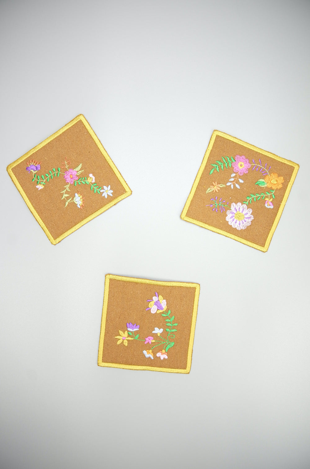Flowers on Dark Khaki Canvas Coaster (set of 6)