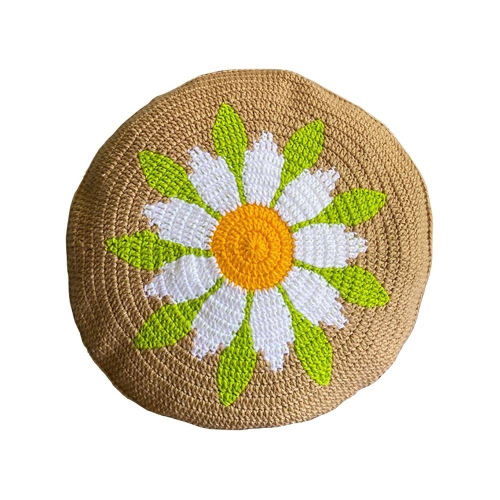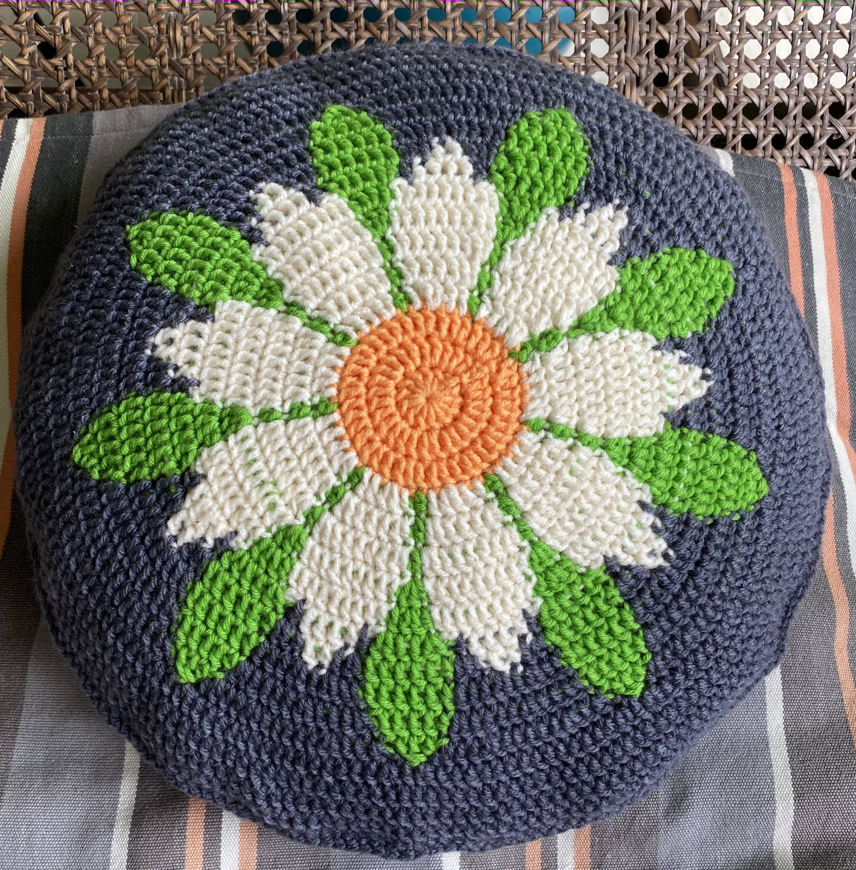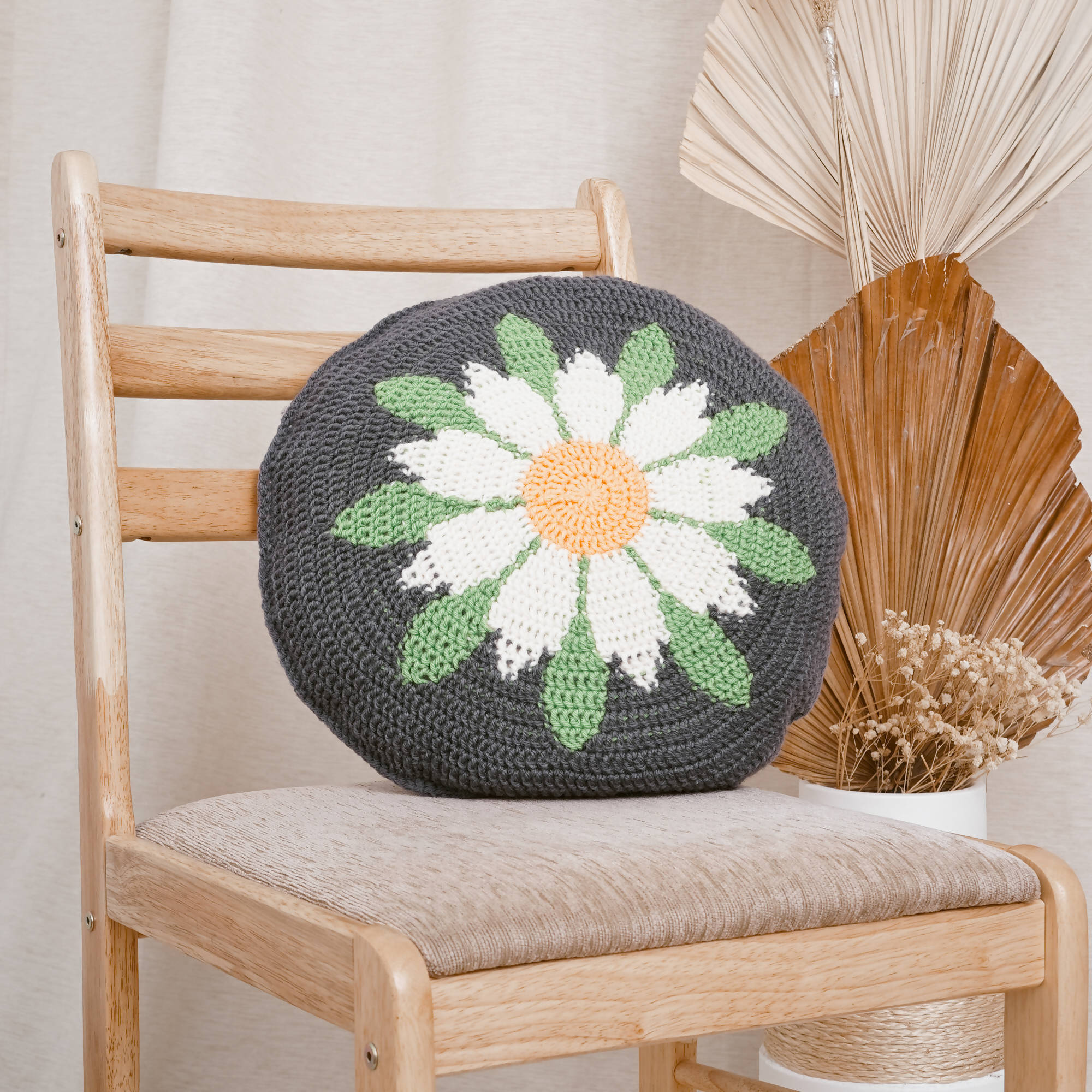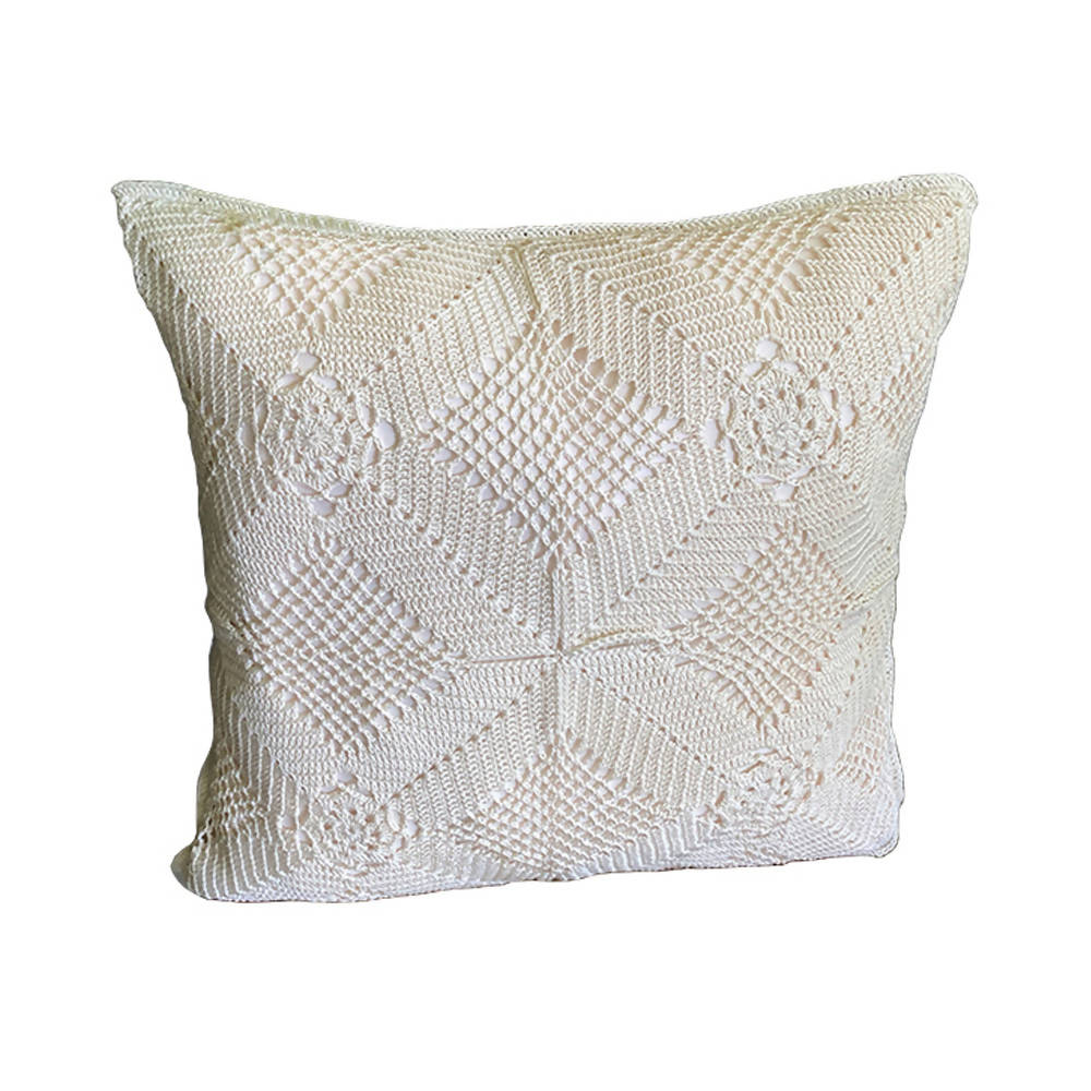 16” diameter Flower design - throw pillow in acrylic yarn (flowers) or 16" x 16" Pure Cotton (Divina design) Hand-Crocheted in Floral Motif or Divina design Can also be used as a comfortable seat cover  Large Shipment: Additional shipping charges may apply after purchase.
