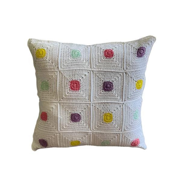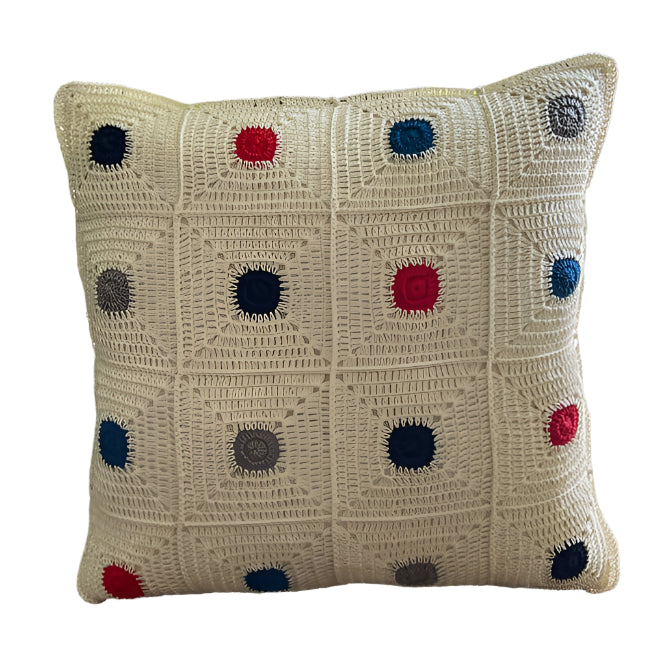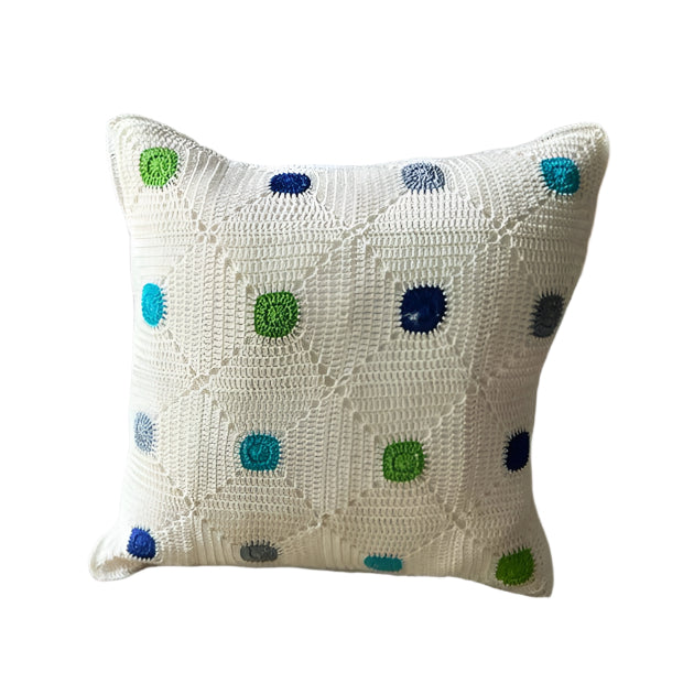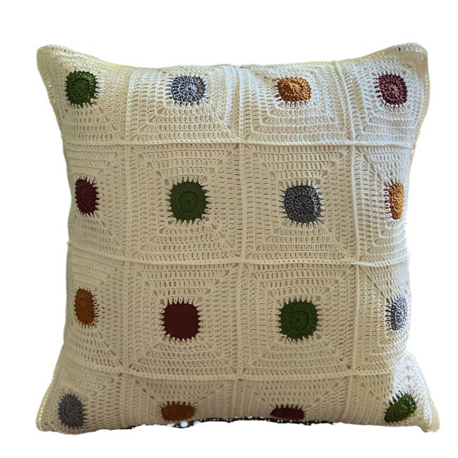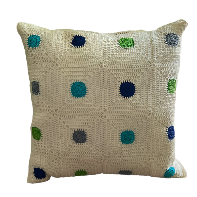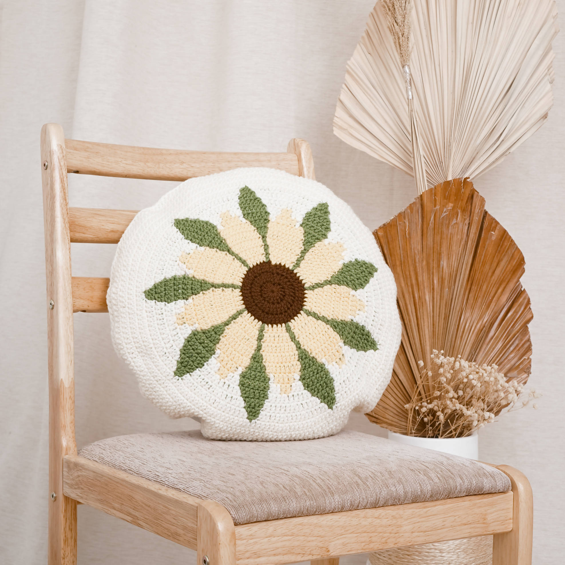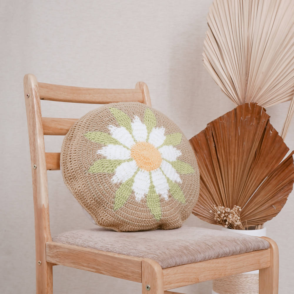 16” diameter Flower design - throw pillow in acrylic yarn (flowers) or 16" x 16" Pure Cotton (Divina design) Hand-Crocheted in Floral Motif or Divina design Can also be used as a comfortable seat cover  Large Shipment: Additional shipping charges may apply after purchase.