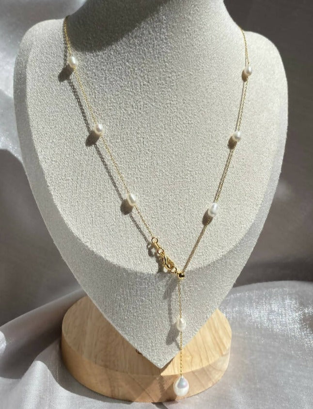 Biwa Freshwater Pearl Necklace Material: Gold Plated Lock and Chain Length: 18 inches Shape: Potato Size: 8-9 mm