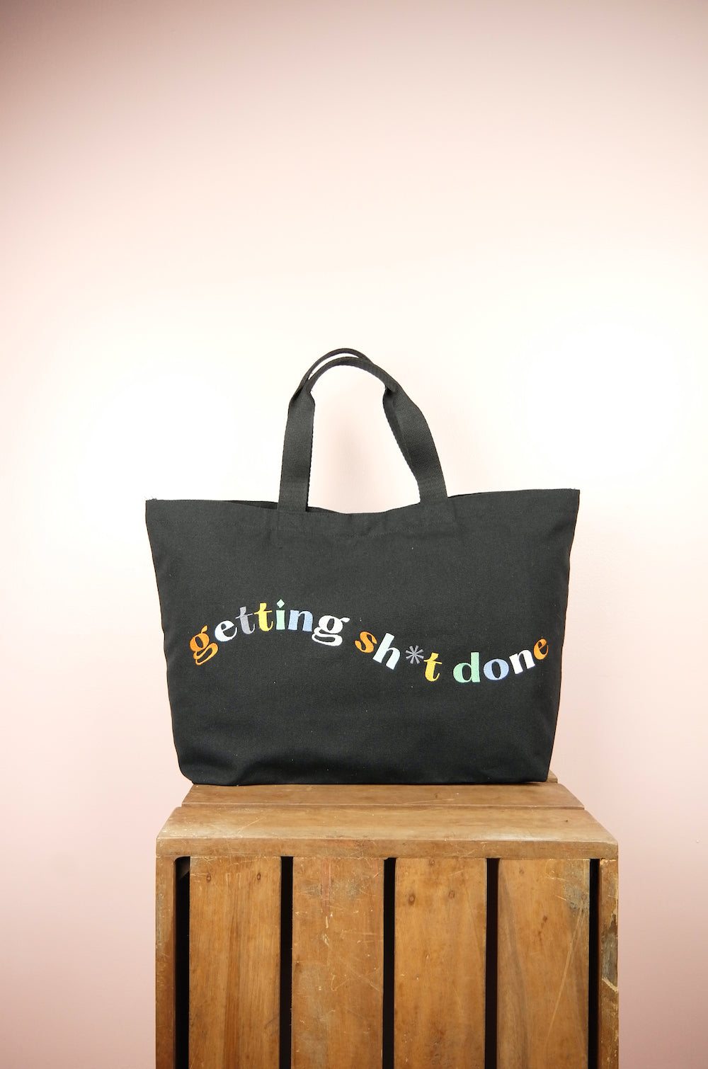 Getting Sh*t Done Black Canvas Carryall Handbag
