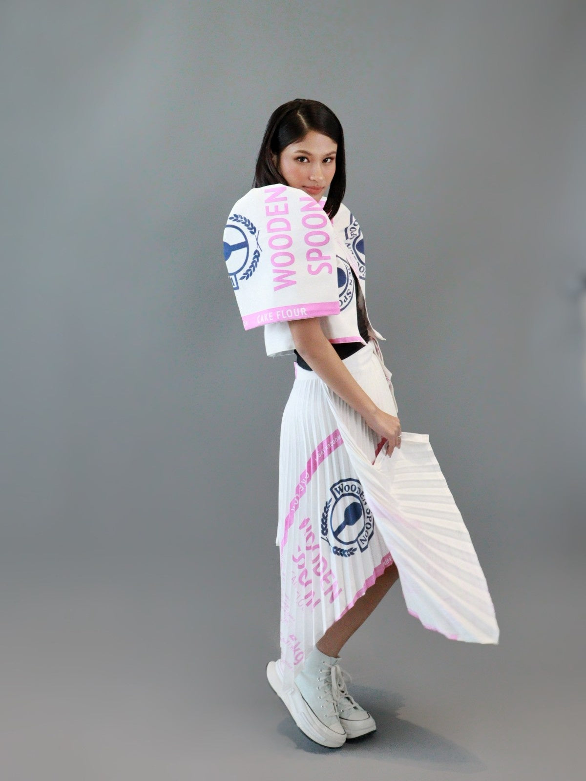Flour Sack Pleated Wrap Skirt Freesize Length