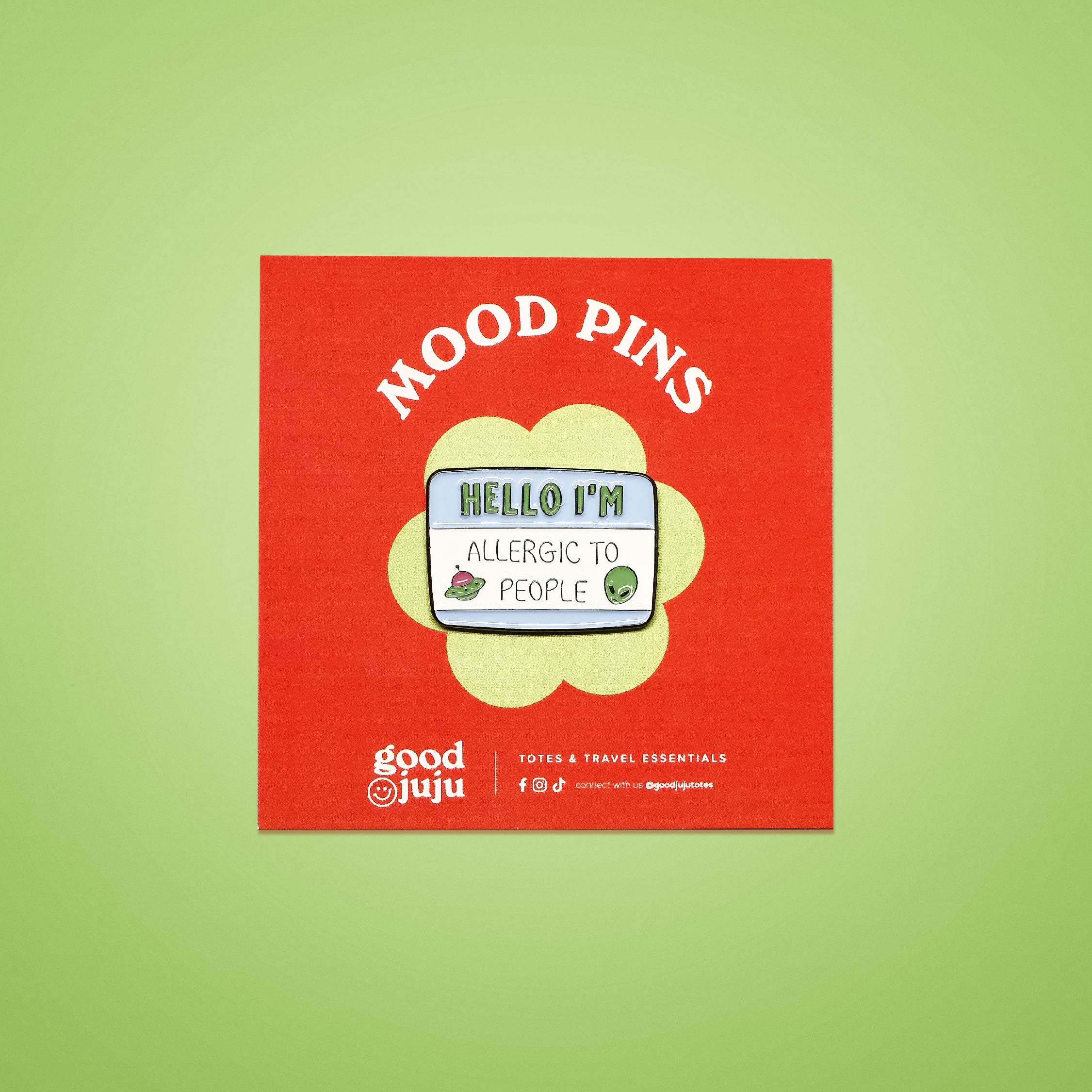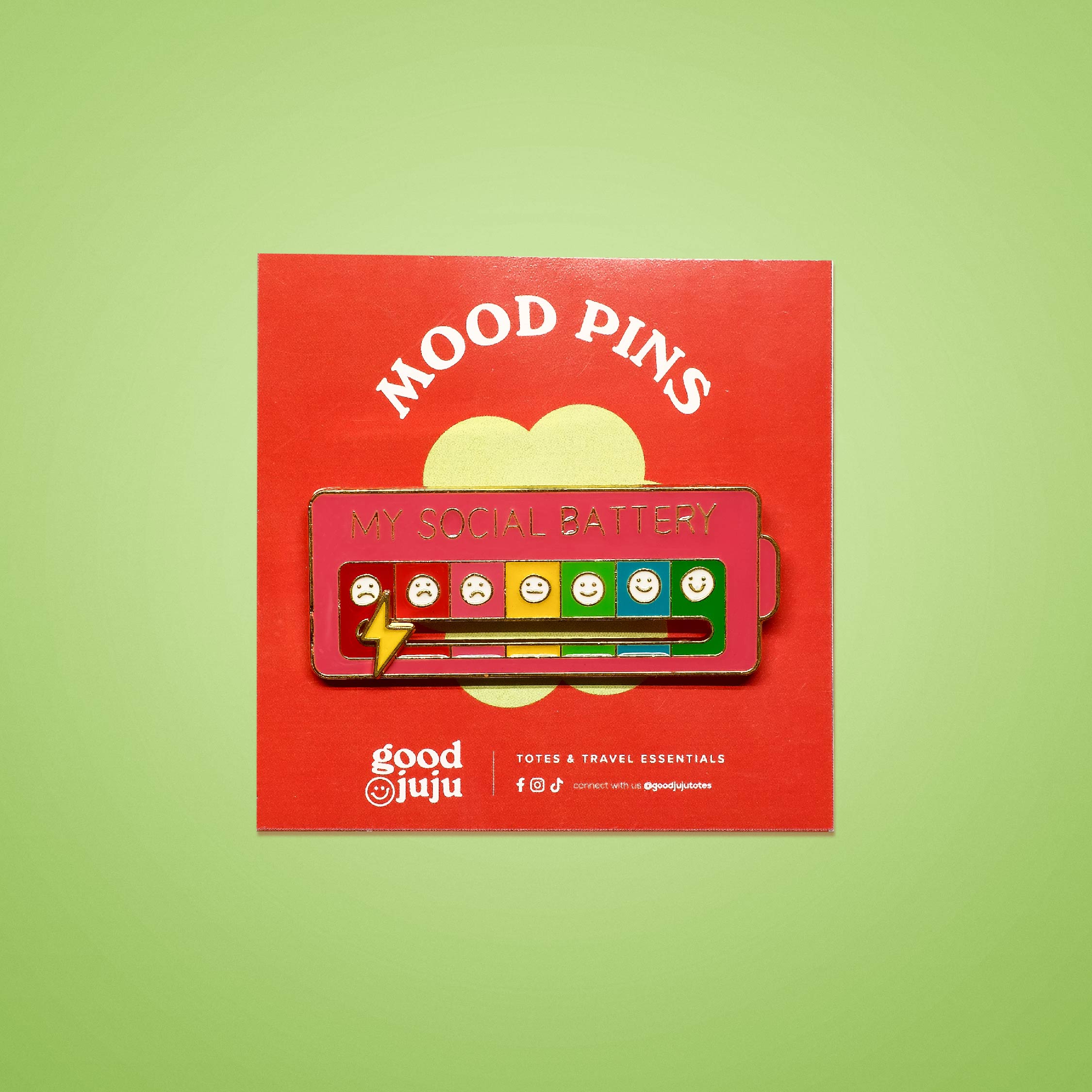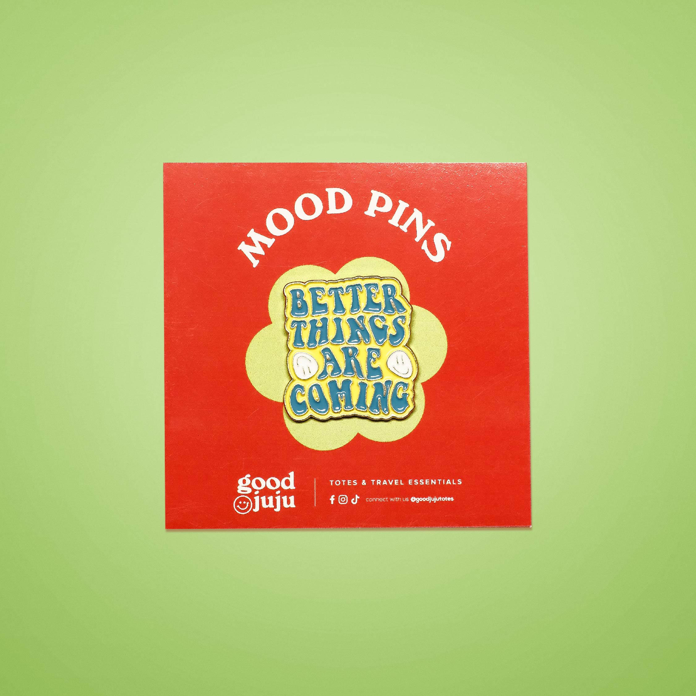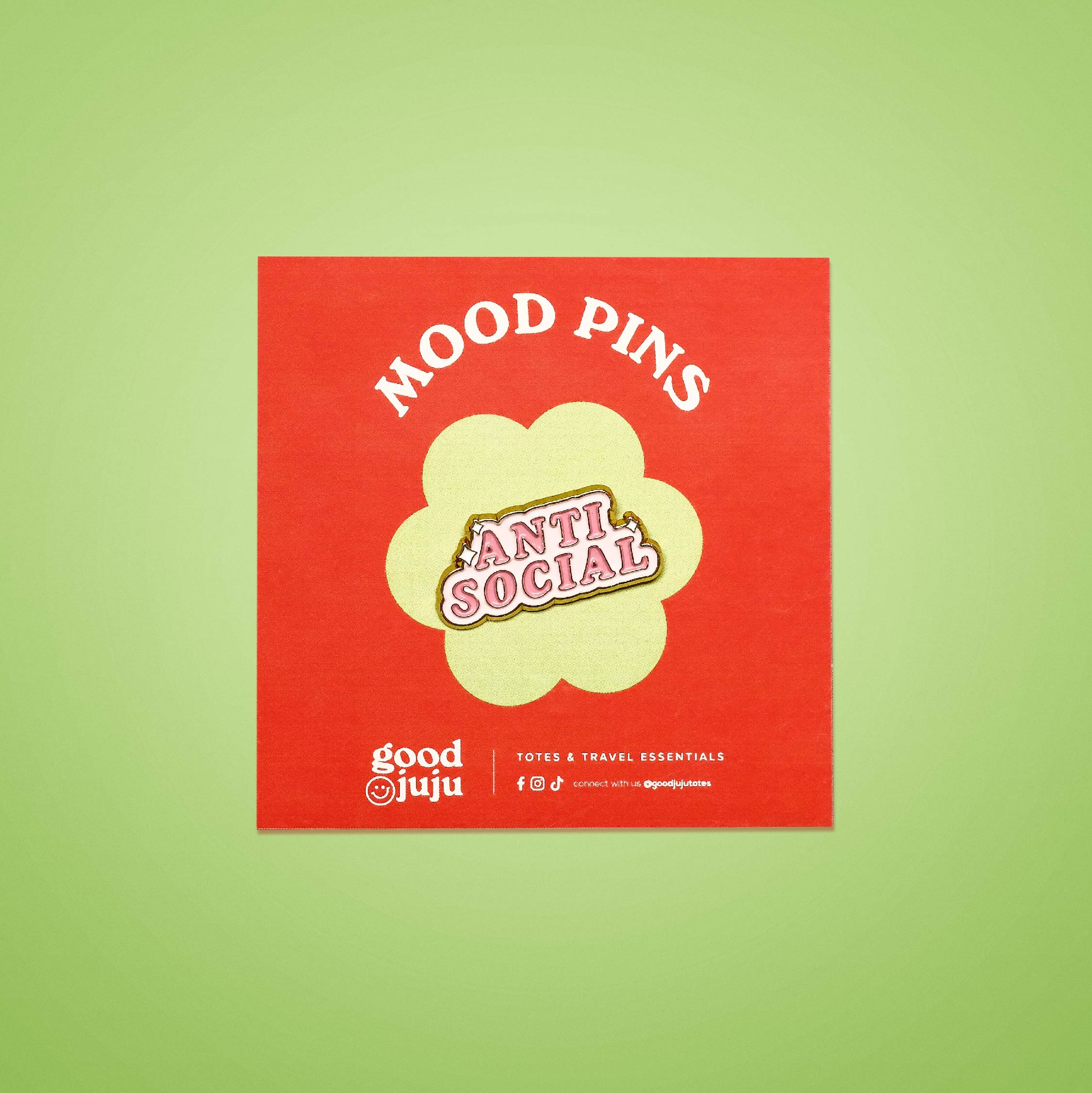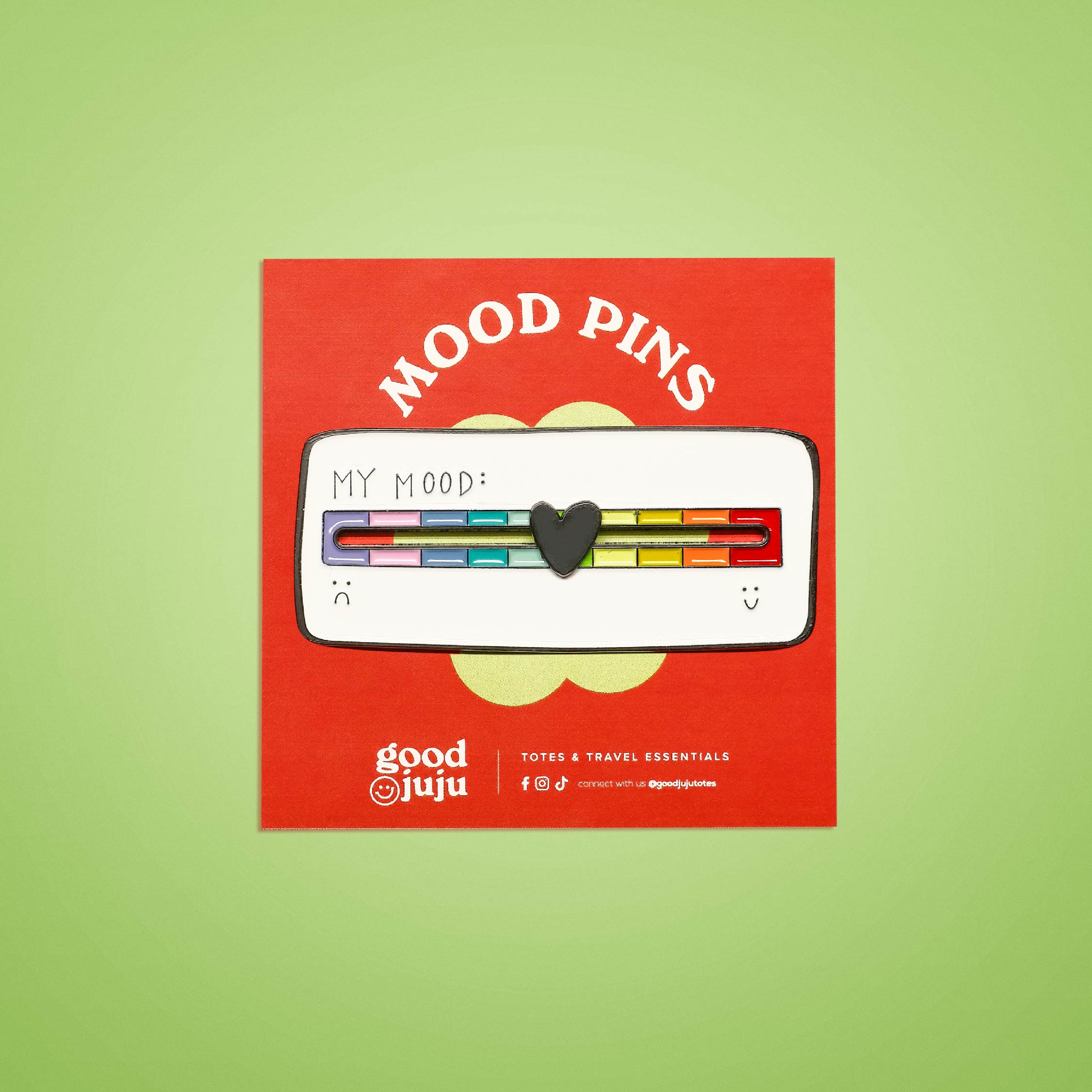GoodJuju MOOD PinsPin it on your tote, express how you feel todayGoodJuju MOOD Pins now available!Material: EnamelFeatures: 1 pinDimensions: Approx 2in
