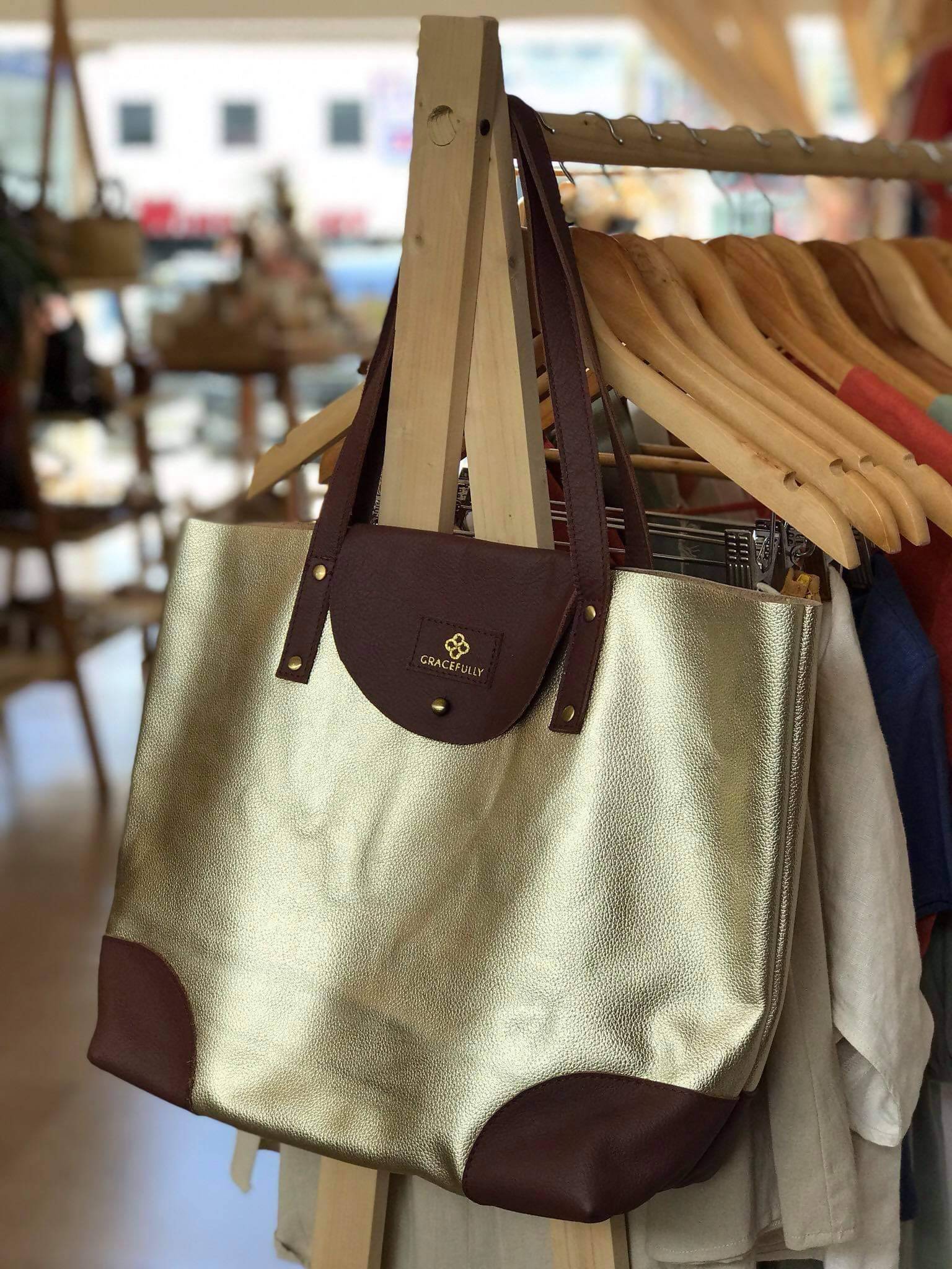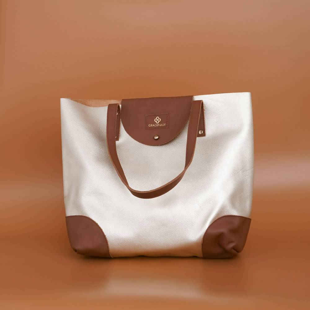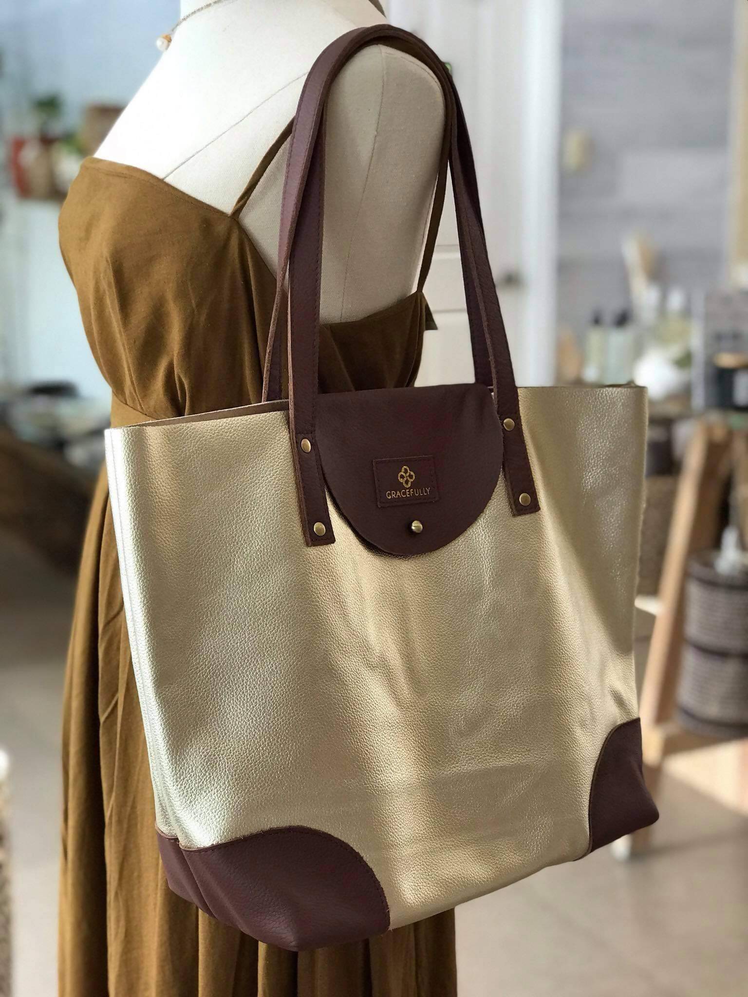 Genuine Leather two-toned tote bag16" x 12" x 5" LHWHandle drop 10"