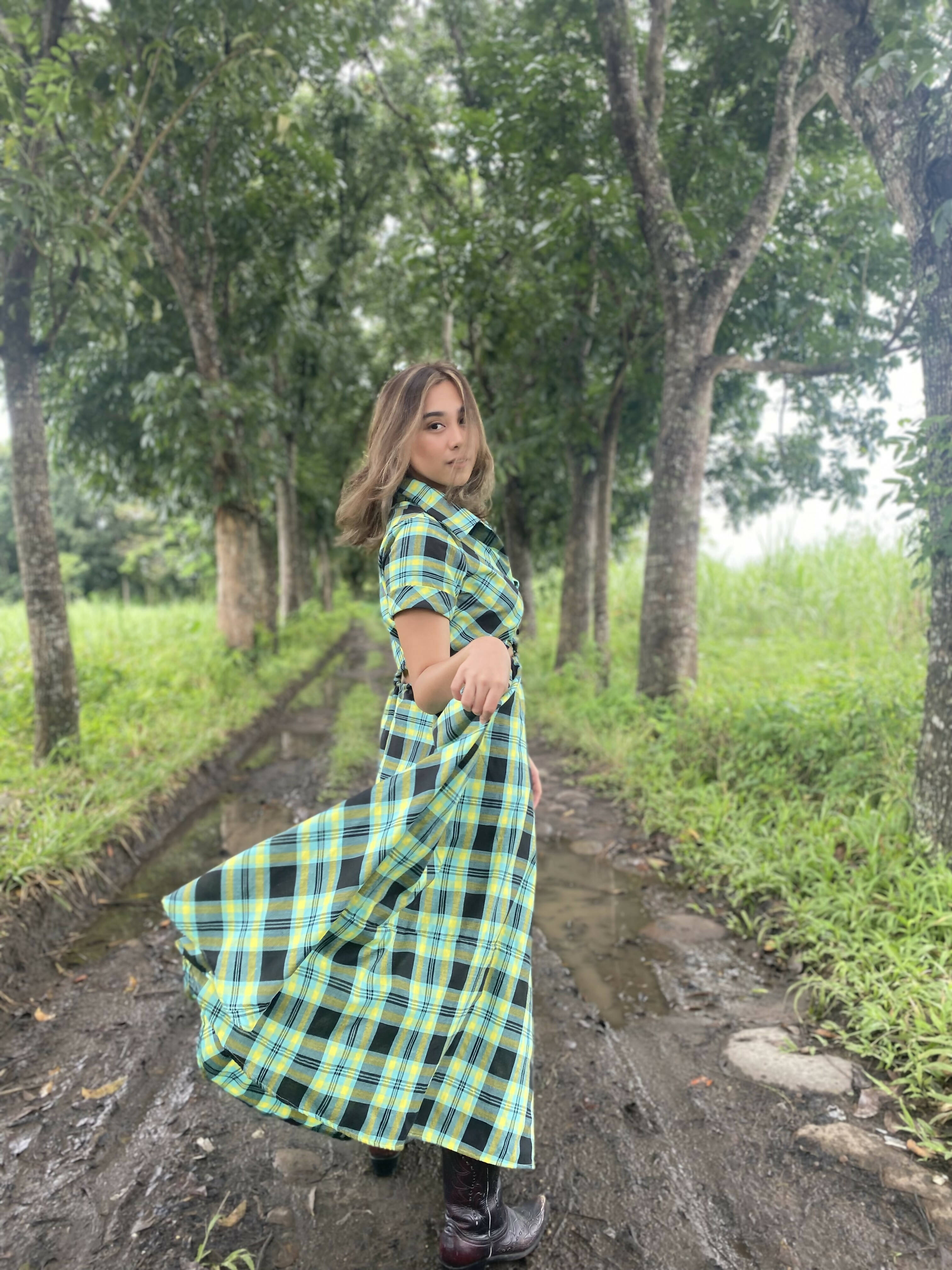 The trendy plaid dress is Hadassah, which shows a strong and confident woman. This handwoven piece can be worn on all occasions and features an attractive balloon skirt in stripe or plaid and a wide collar to bring a retro look yet fun to wear. Woven by Negros Island - Philippines Weaver.