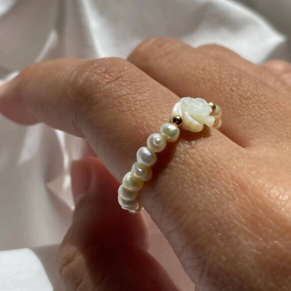 Freshwater Pearl Ring Material: Gold Plated Balls Non-tarnish flower Shape: Potato Ring Size: 5-7 mm (adjustable) Pearl Size: 2-3 mm