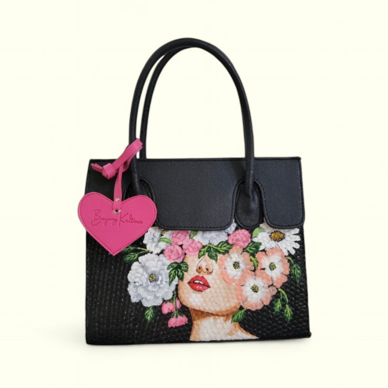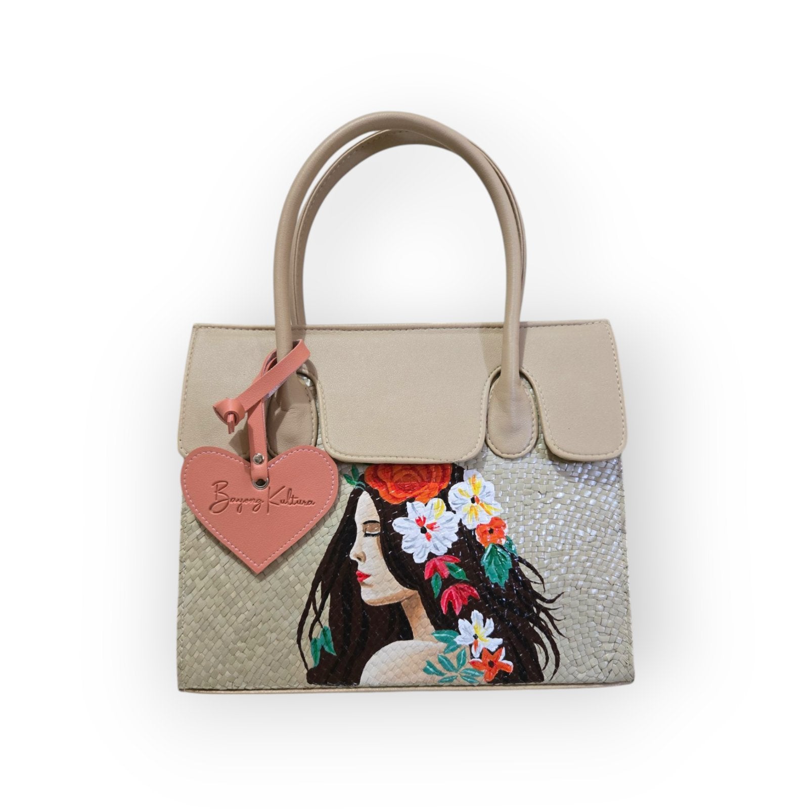 Dimensions: 10Lx3.5Wx8H inches Materials: Pandan with leatherette handle  Specifications: With magnetic closure, inner lining and pockets
