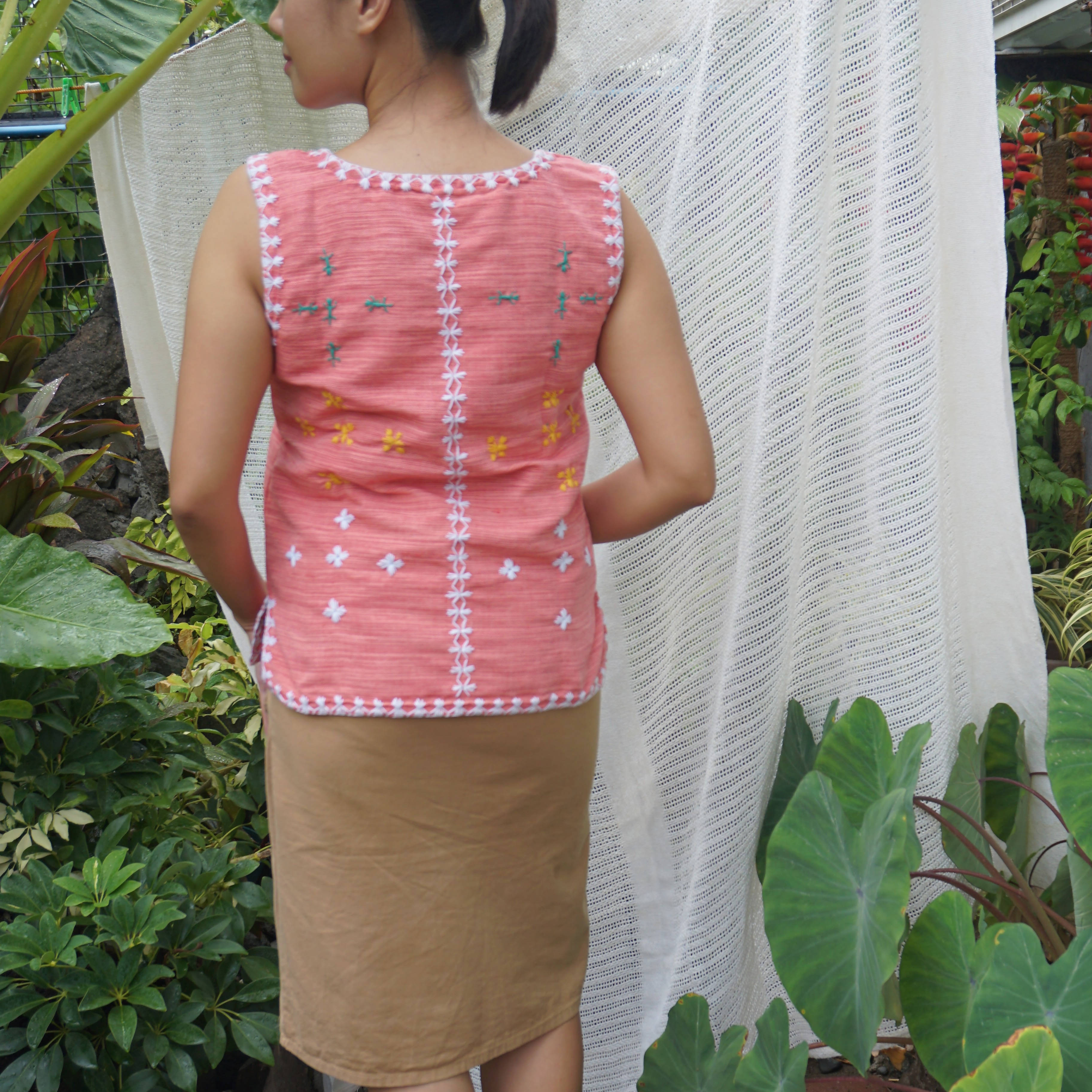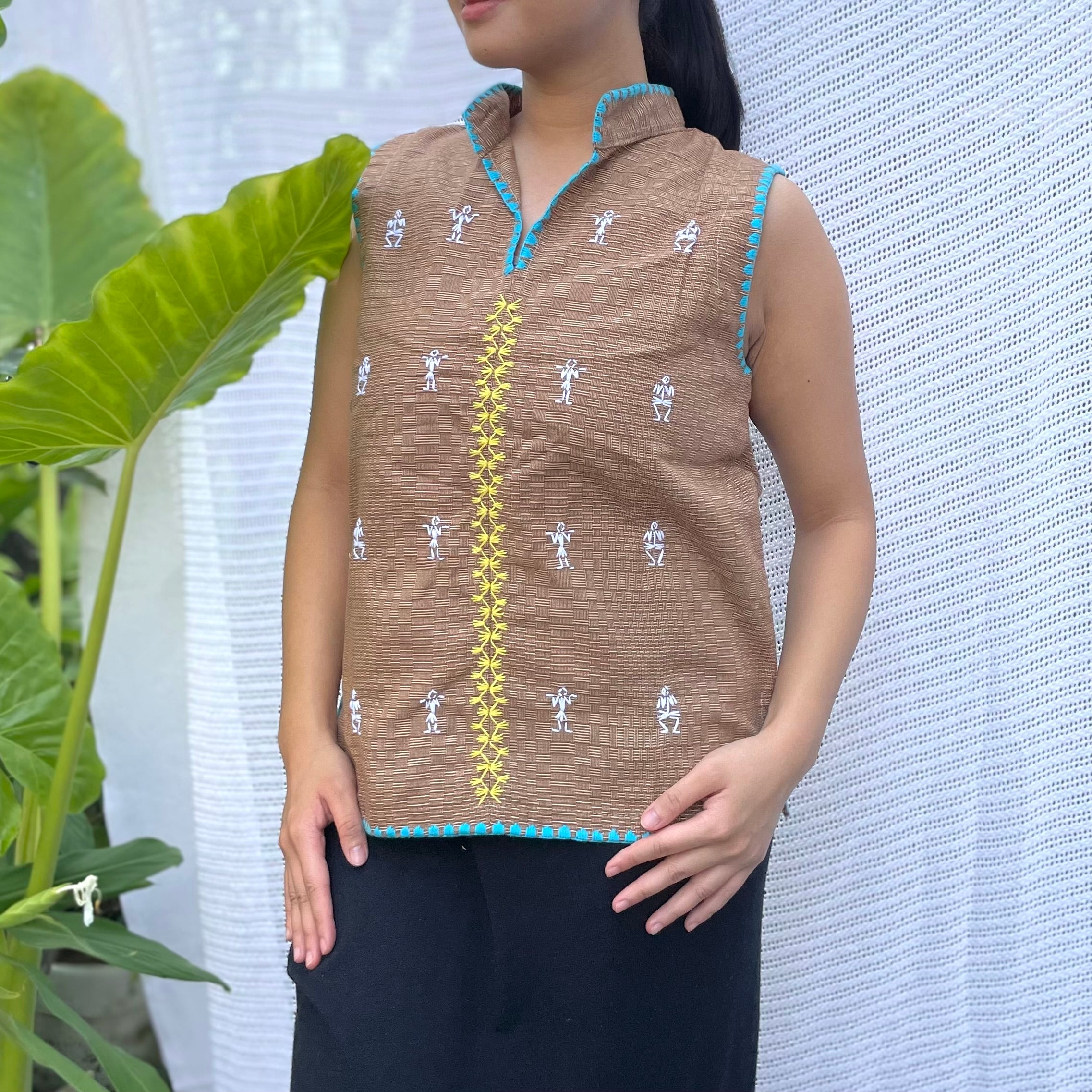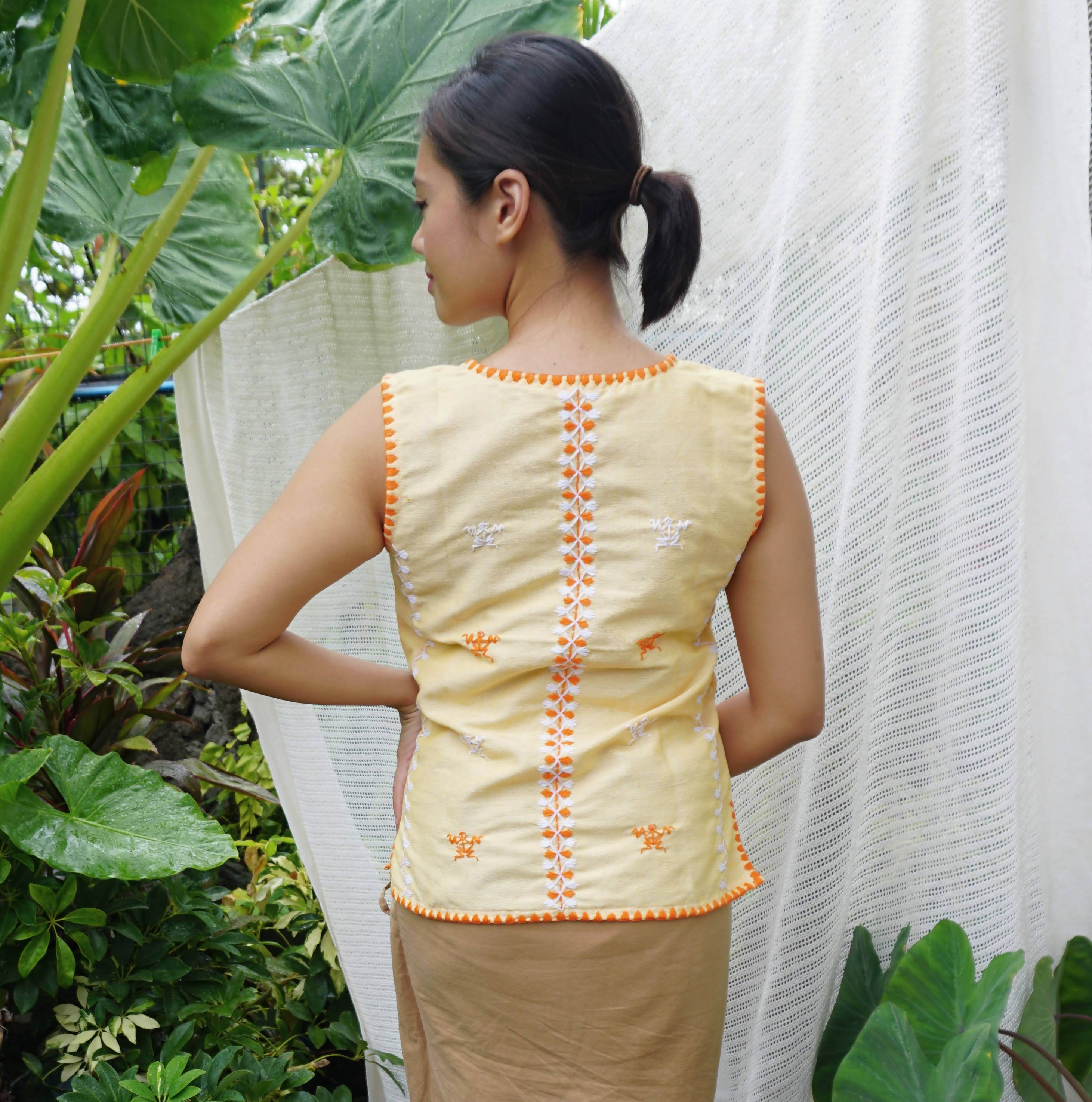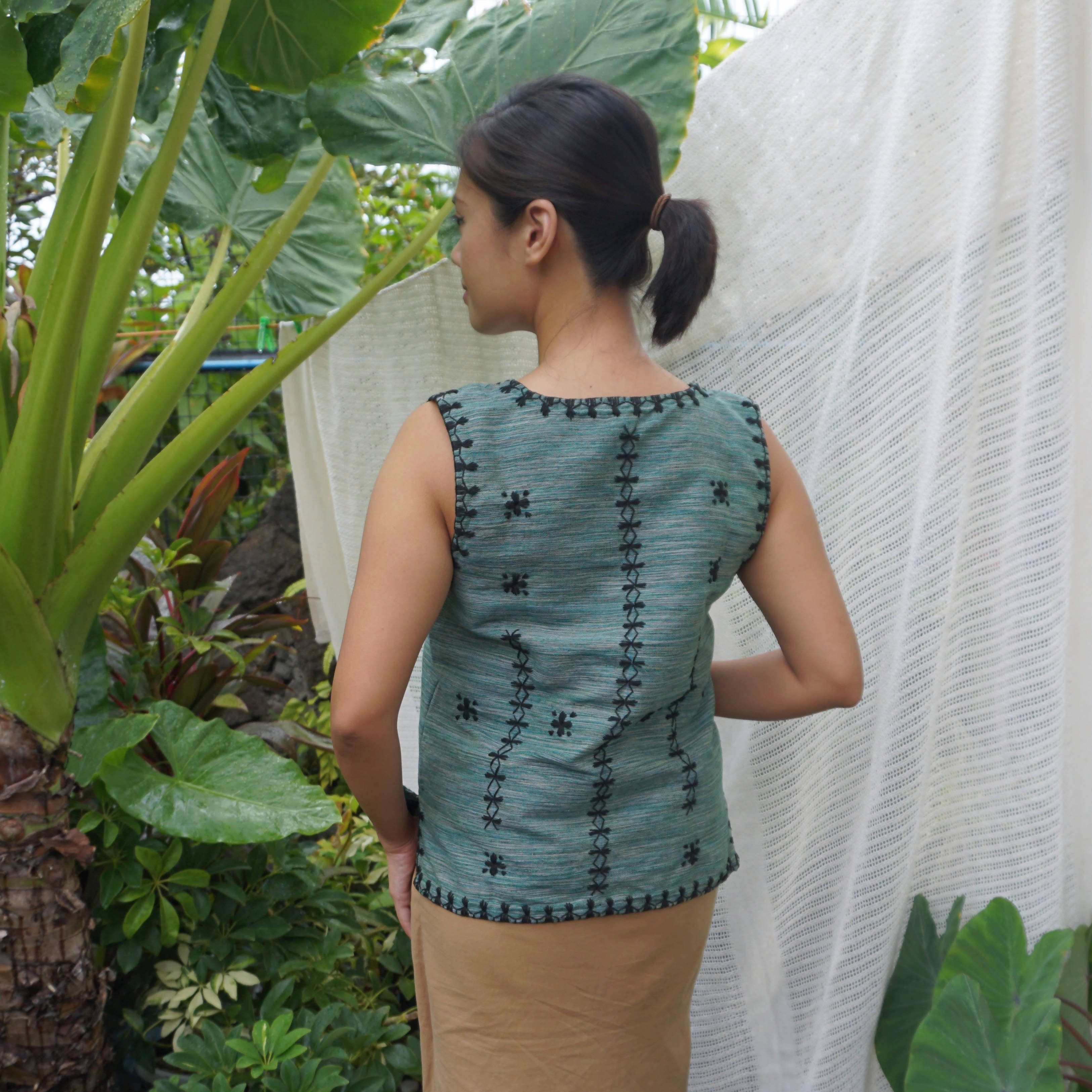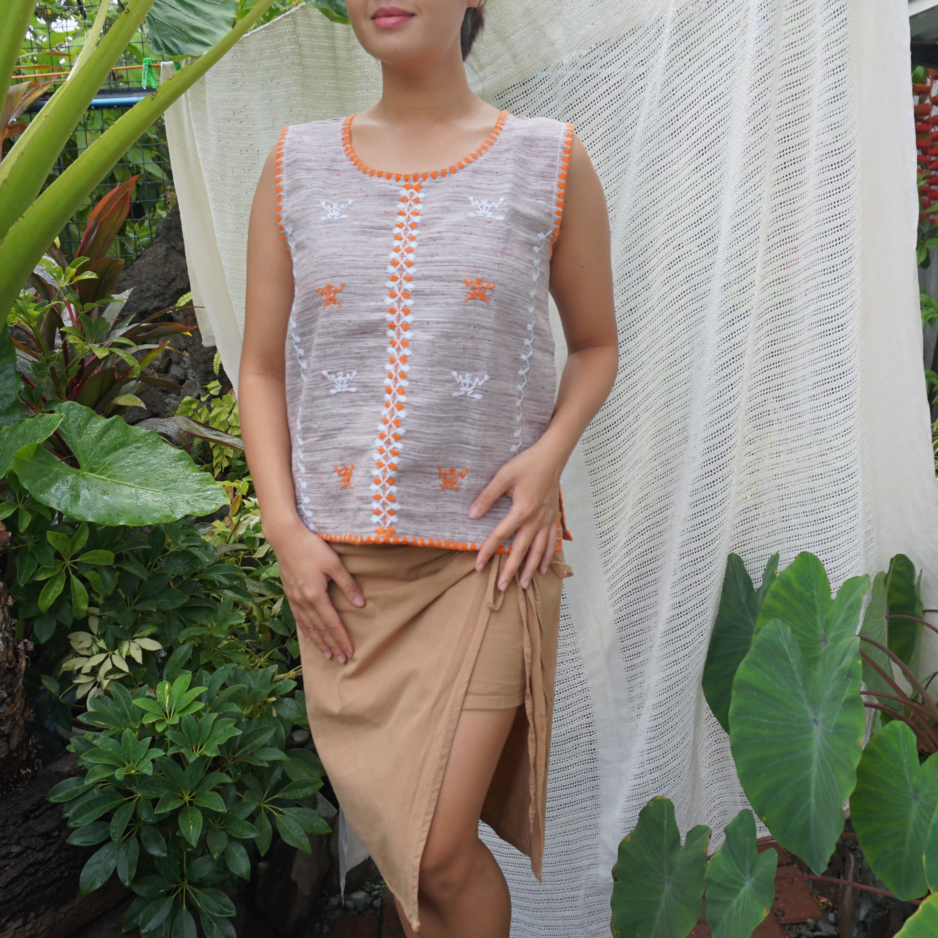 Handwoven Sleeveless Top w/ Itneg Embroidery