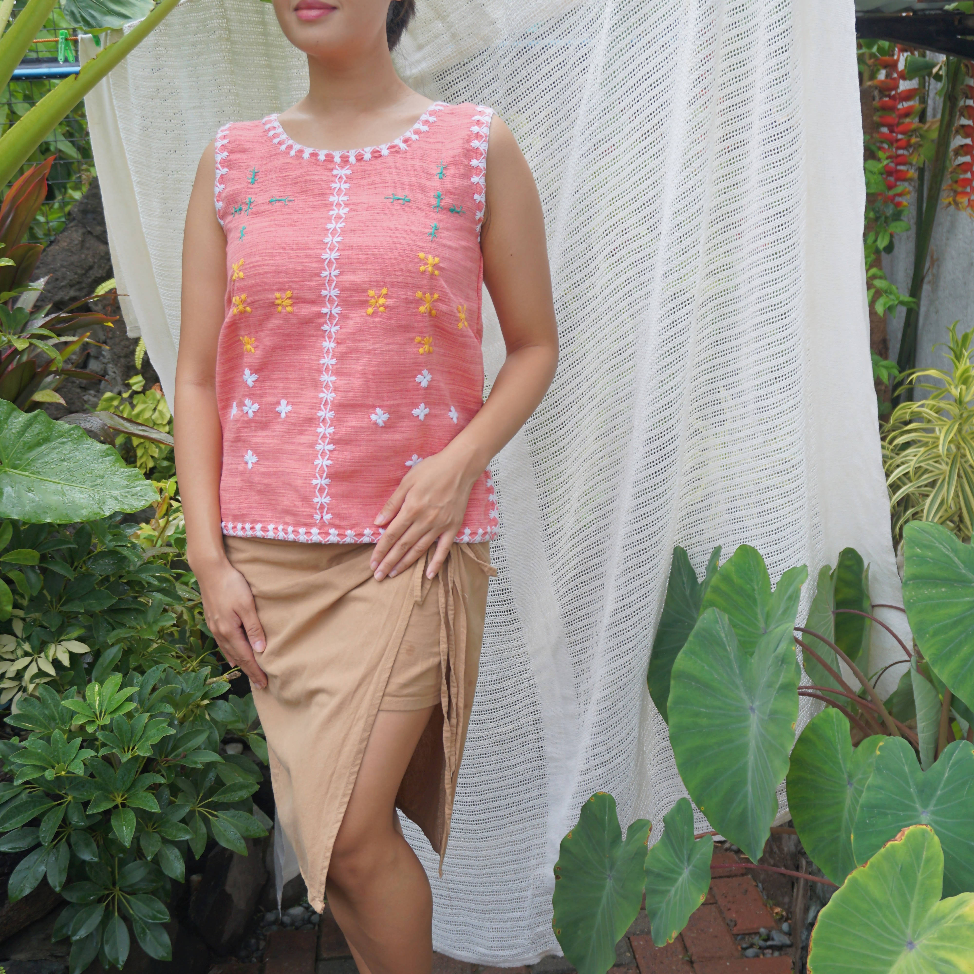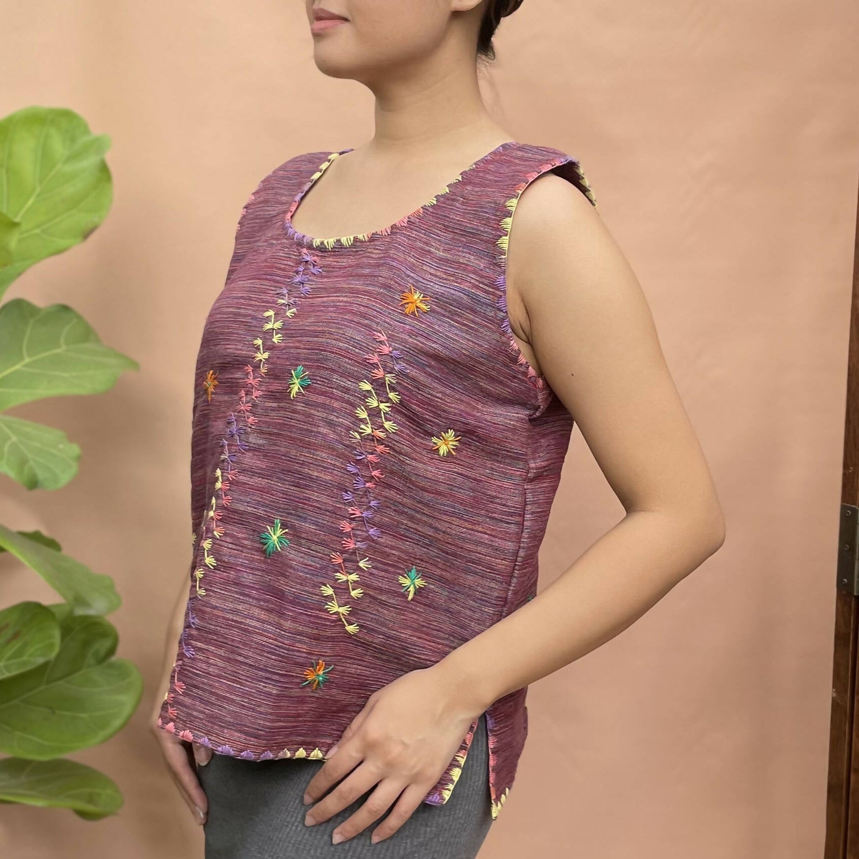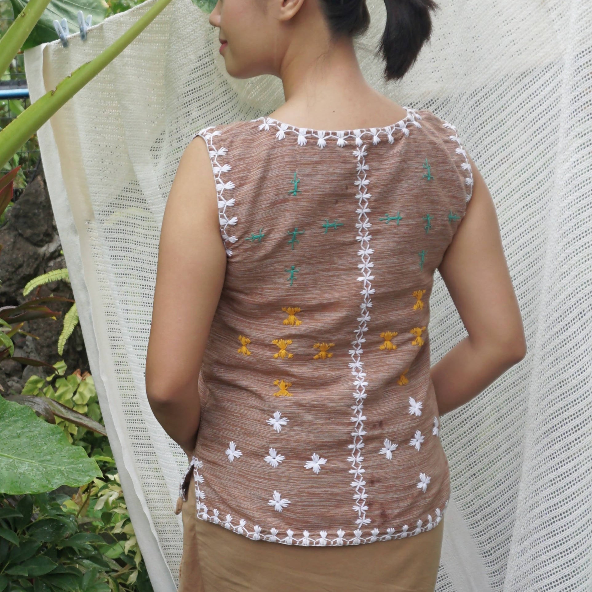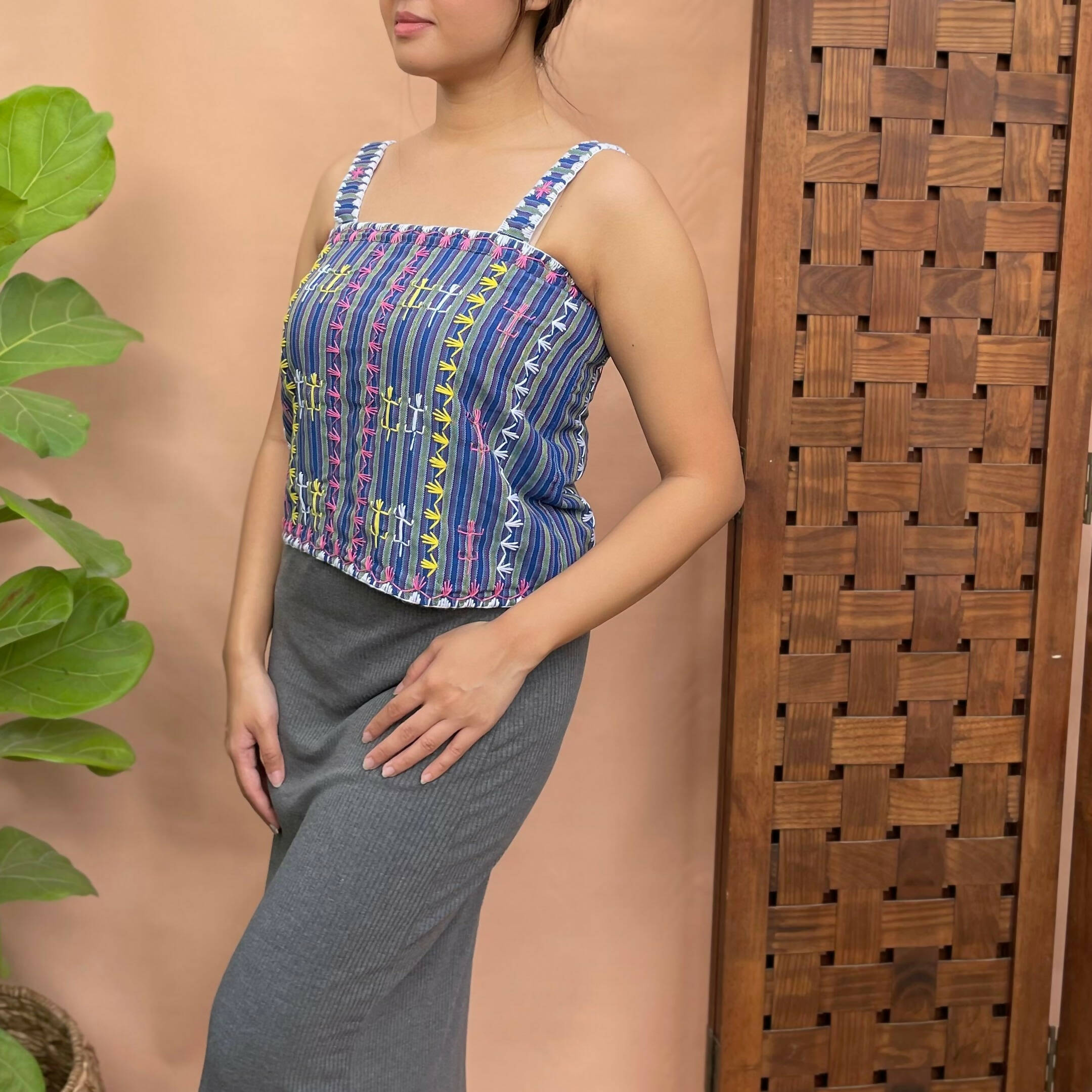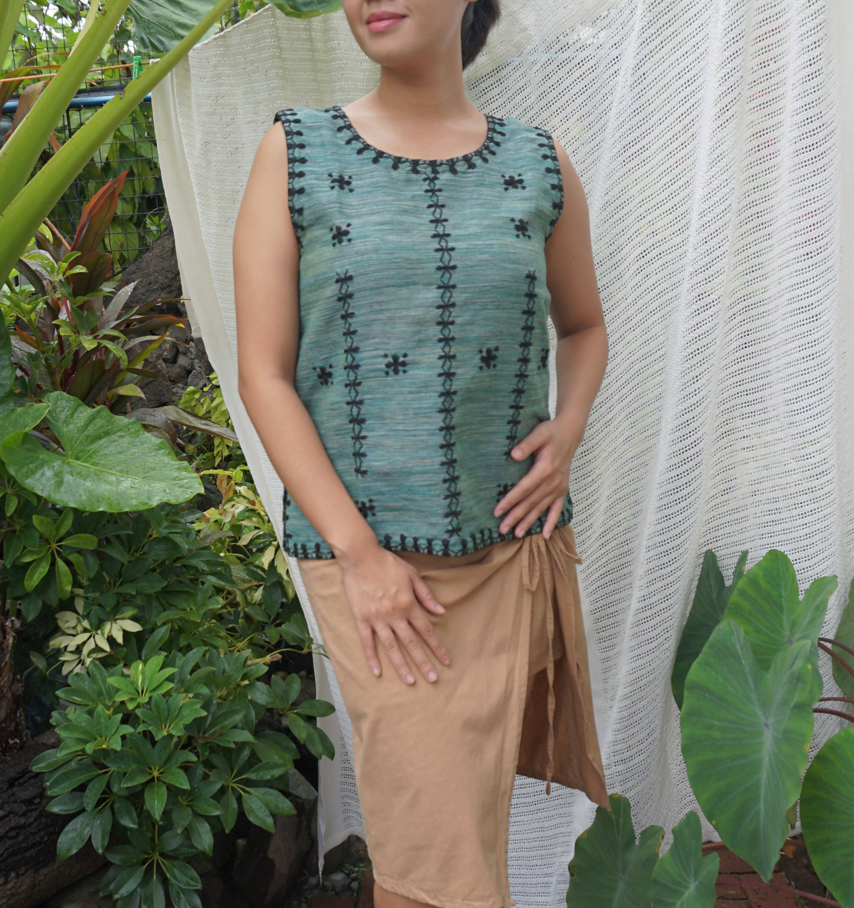 Handwoven Sleeveless Top w/ Itneg Embroidery