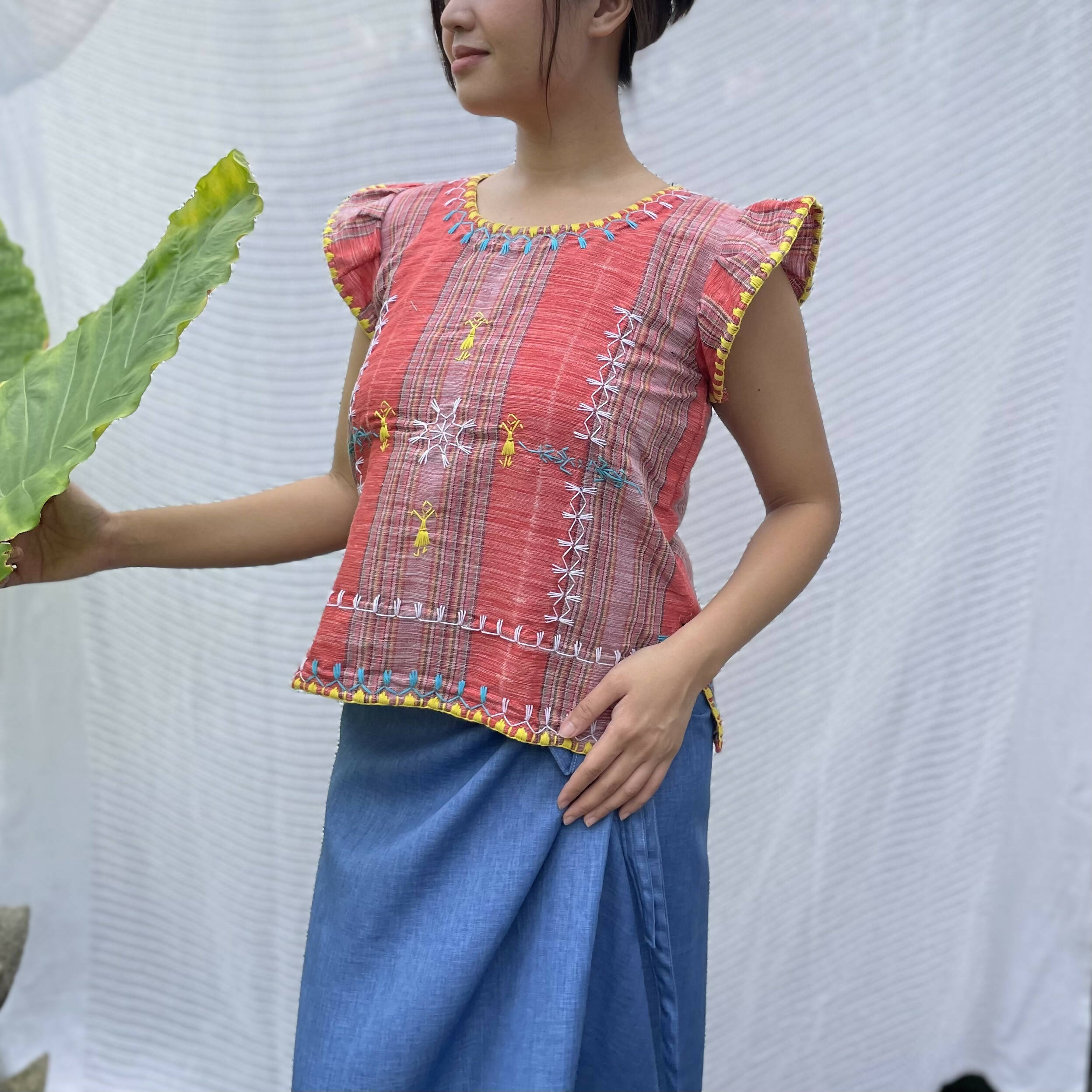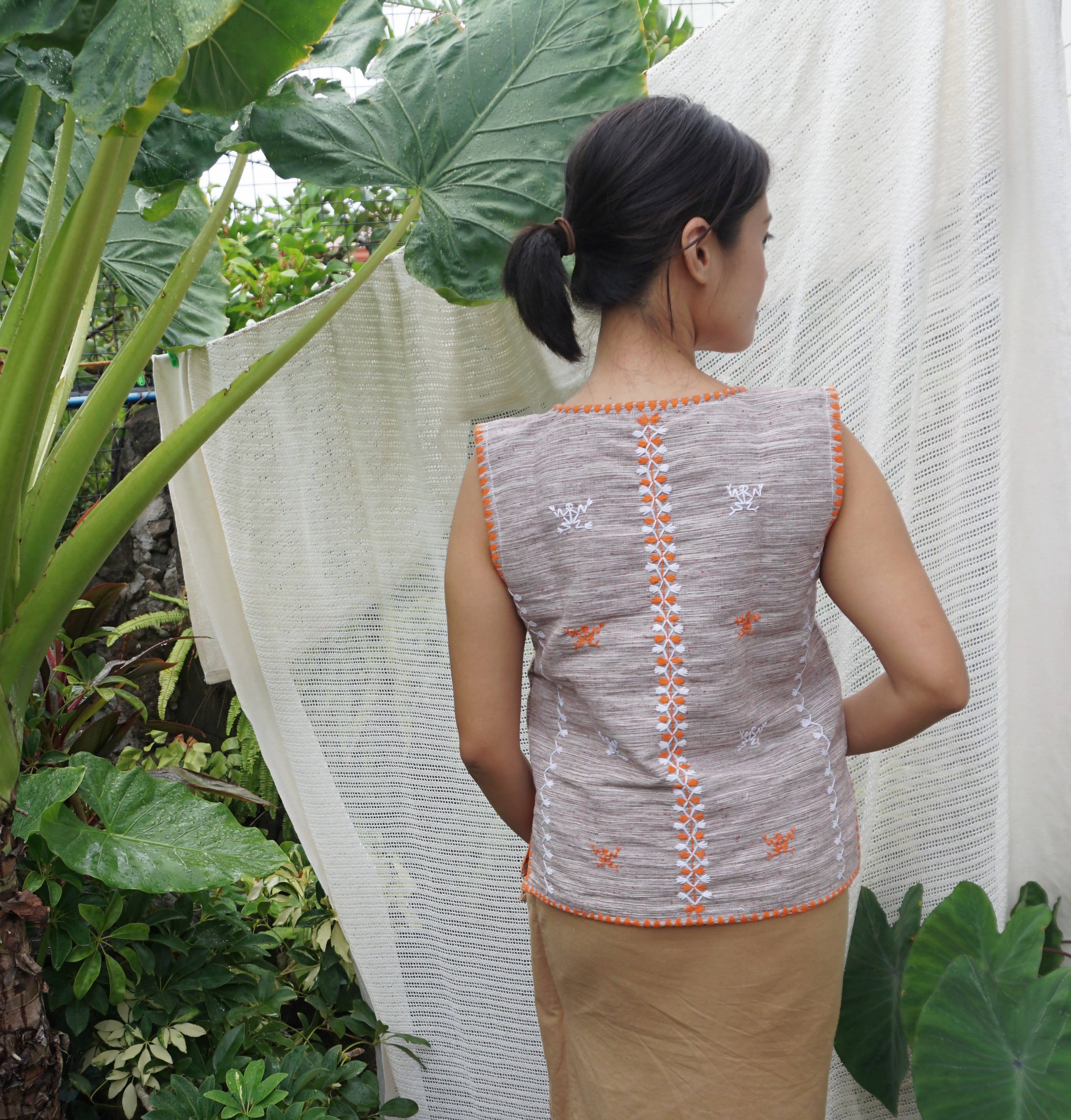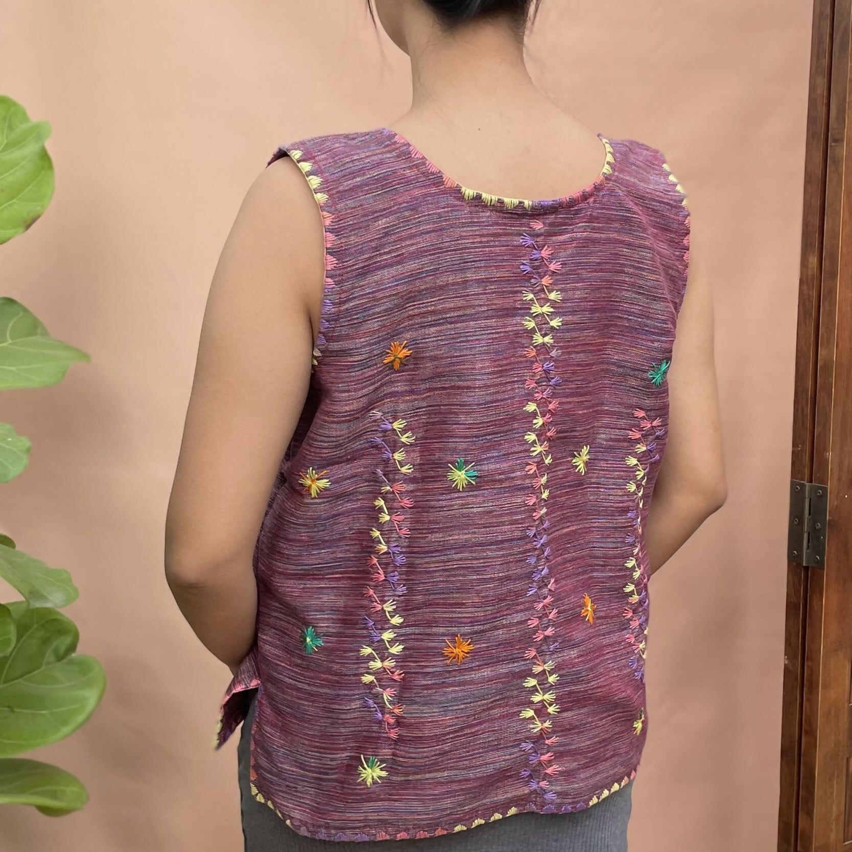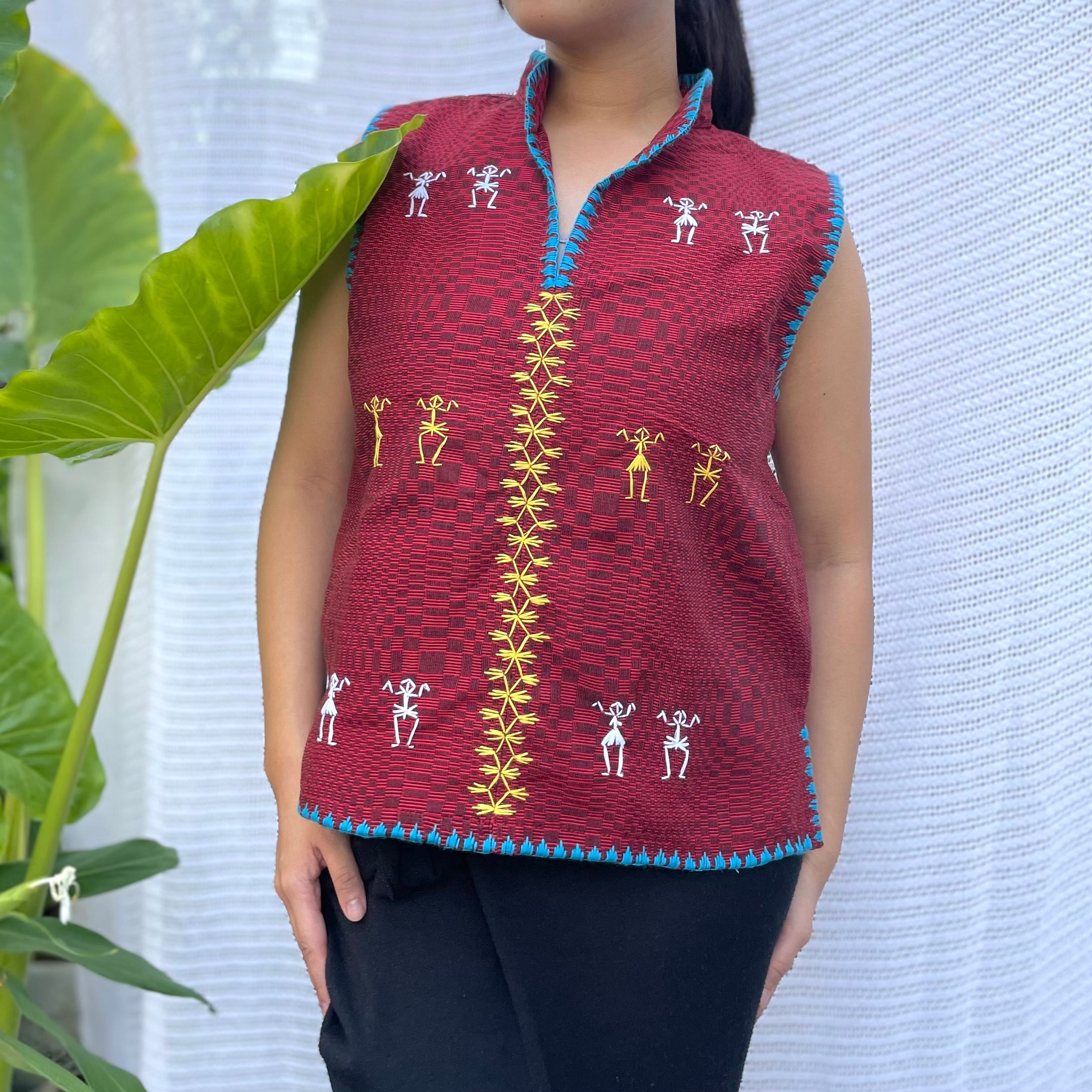Handwoven Sleeveless Top w/ Itneg Embroidery