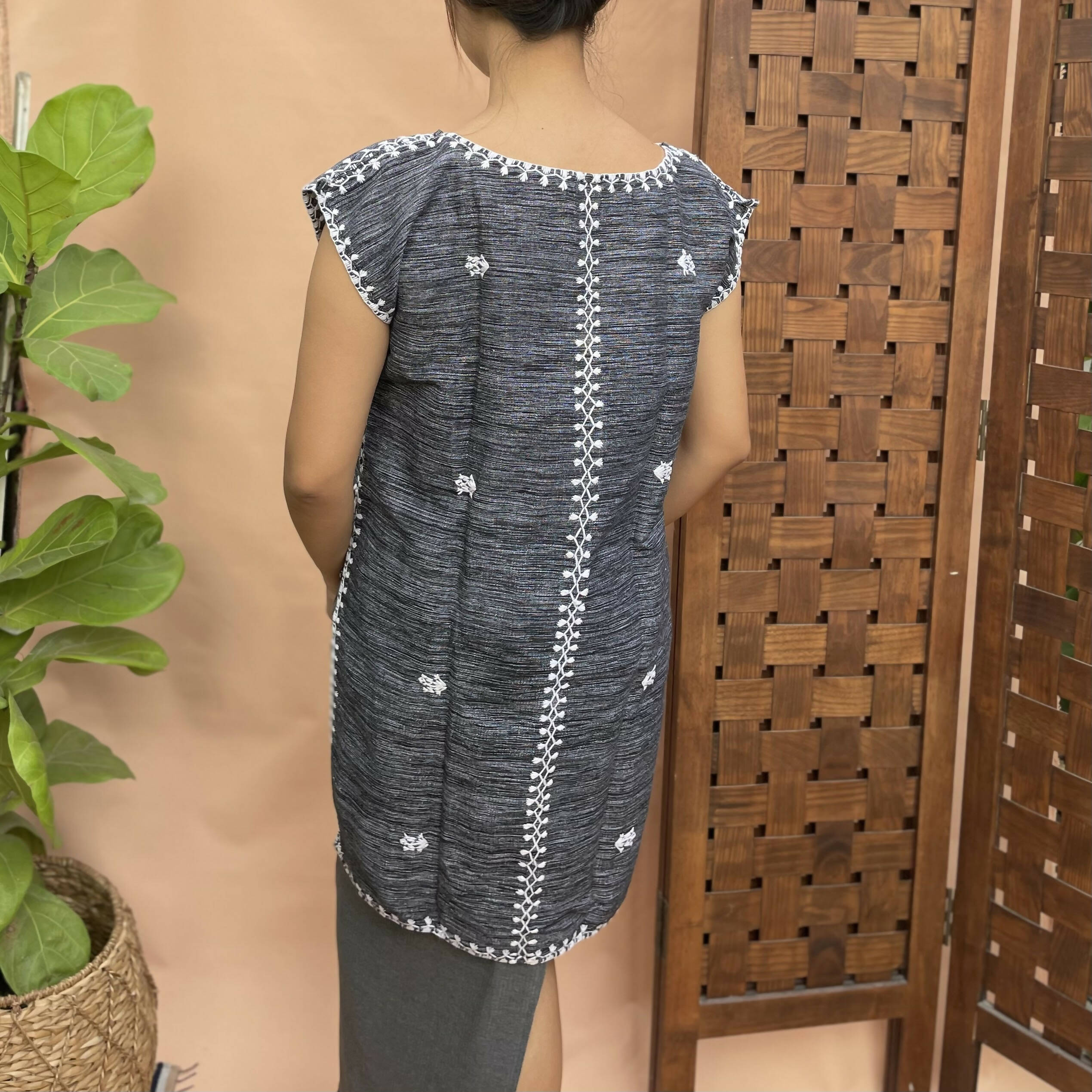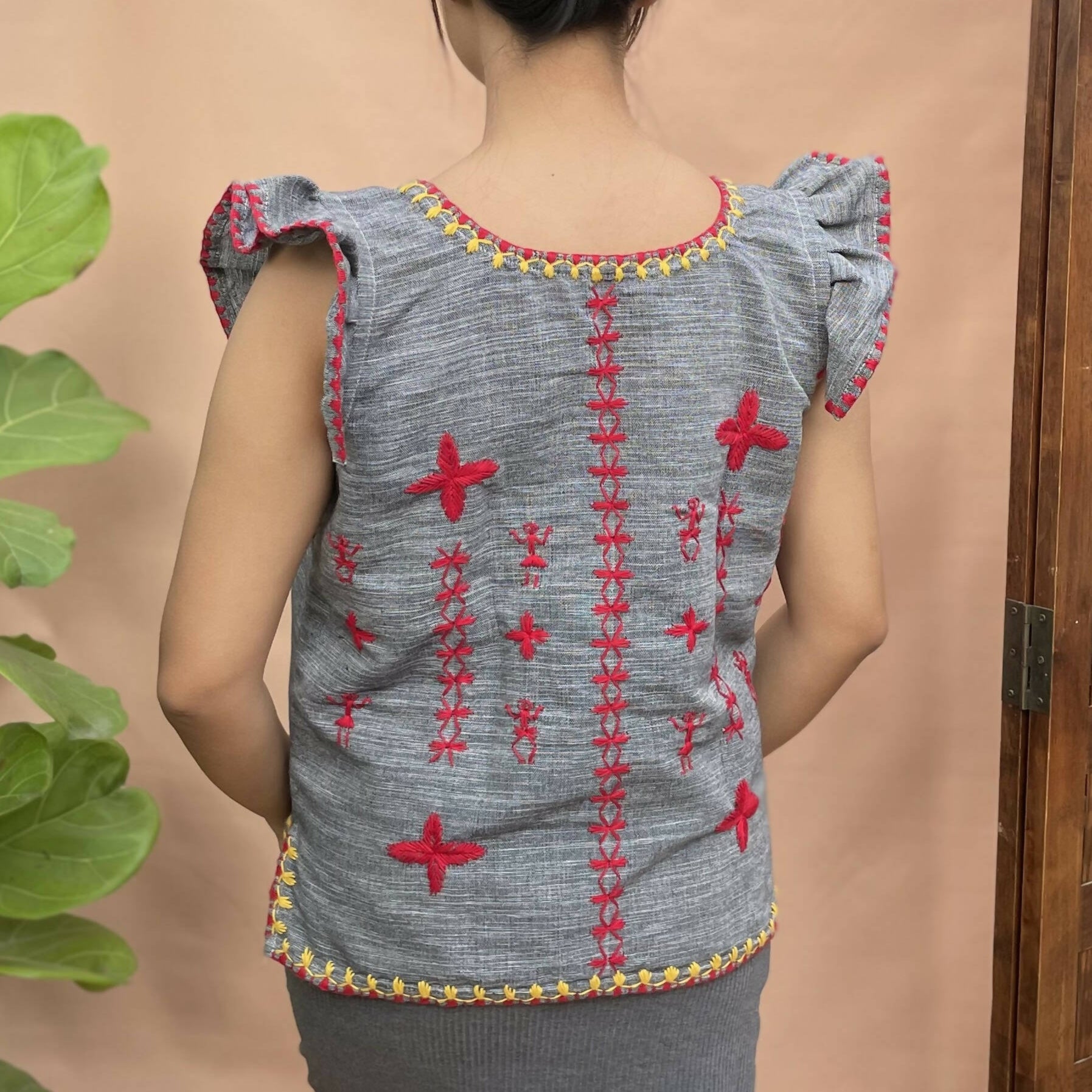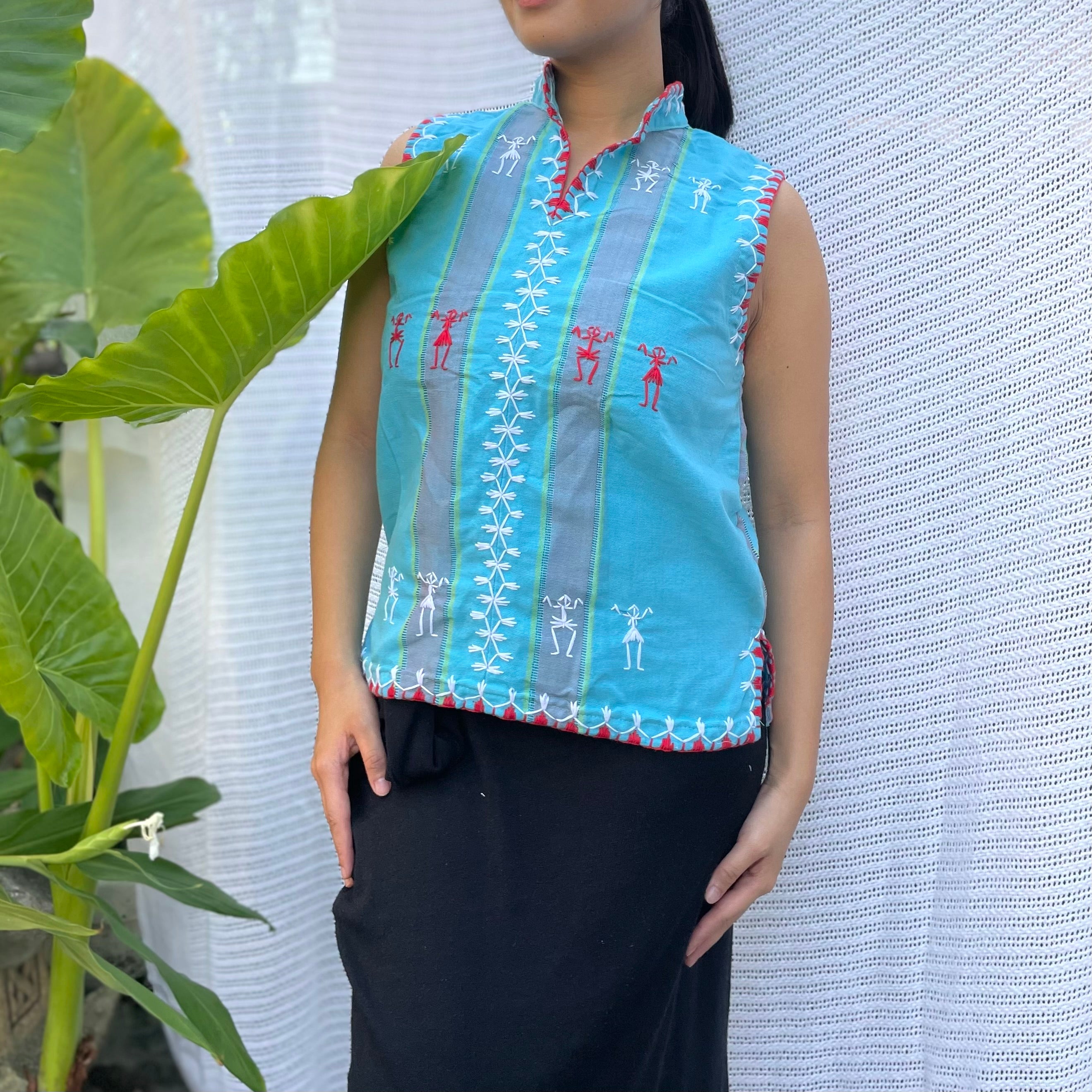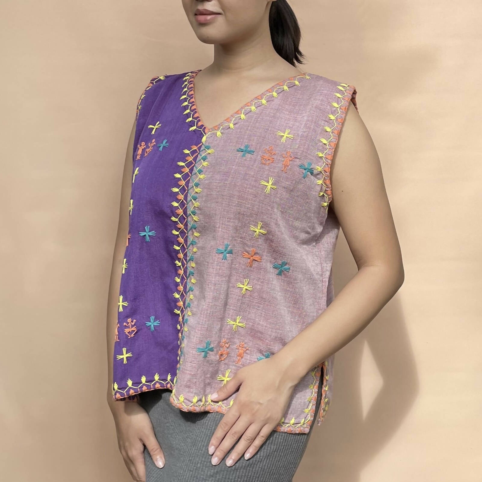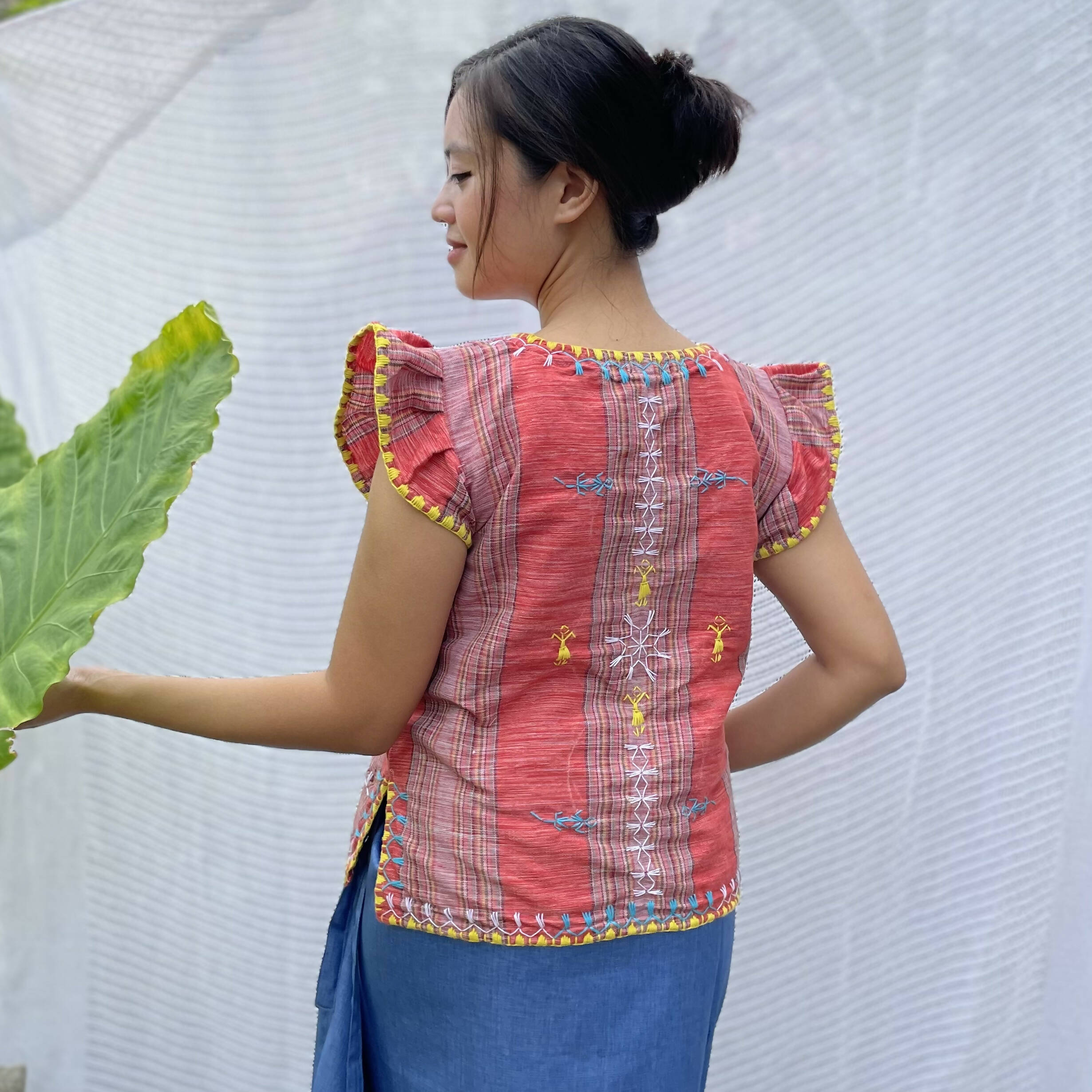 Handwoven Sleeveless Top w/ Itneg Embroidery