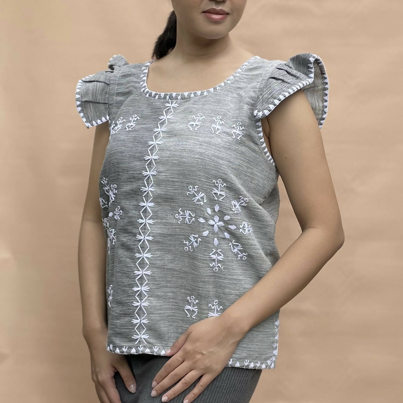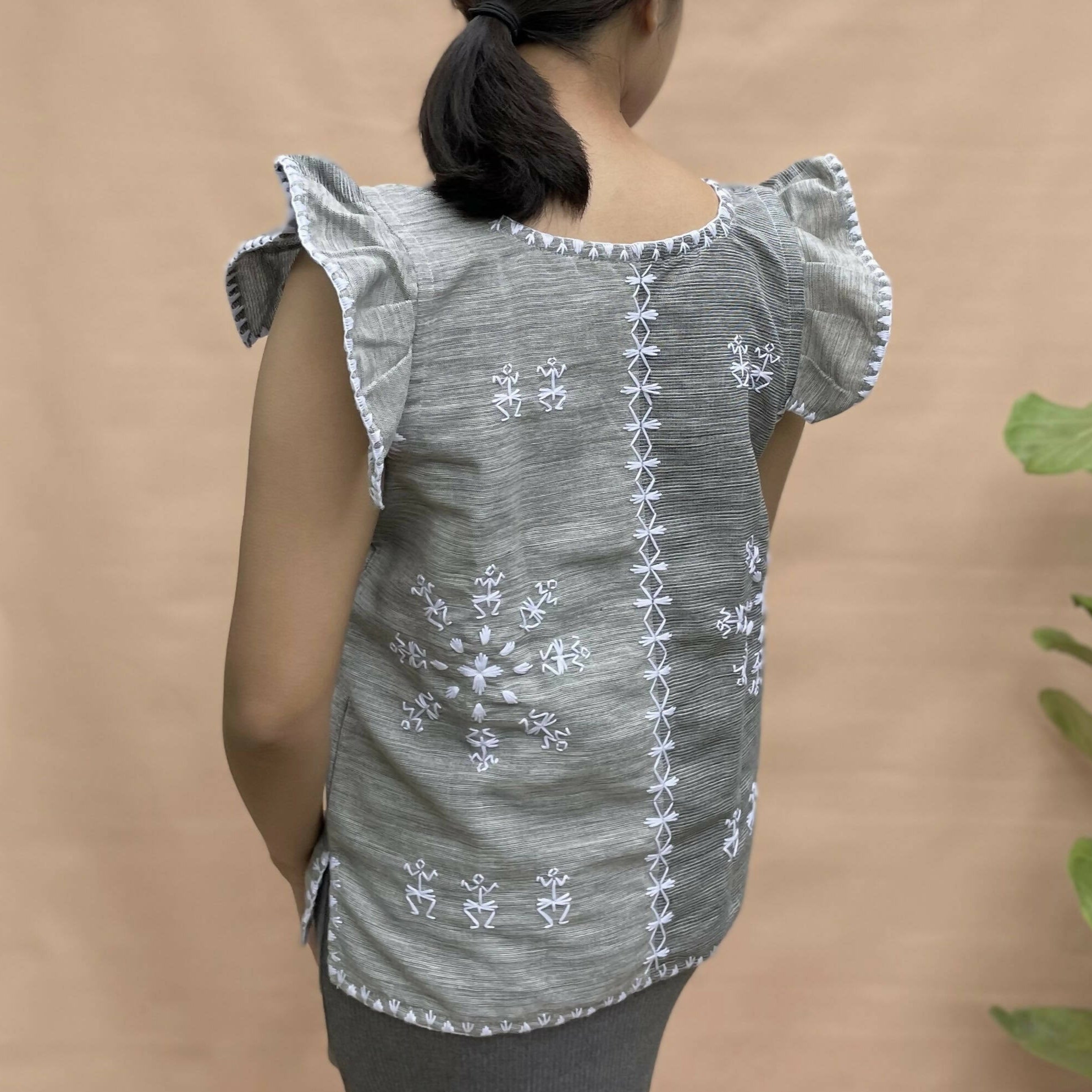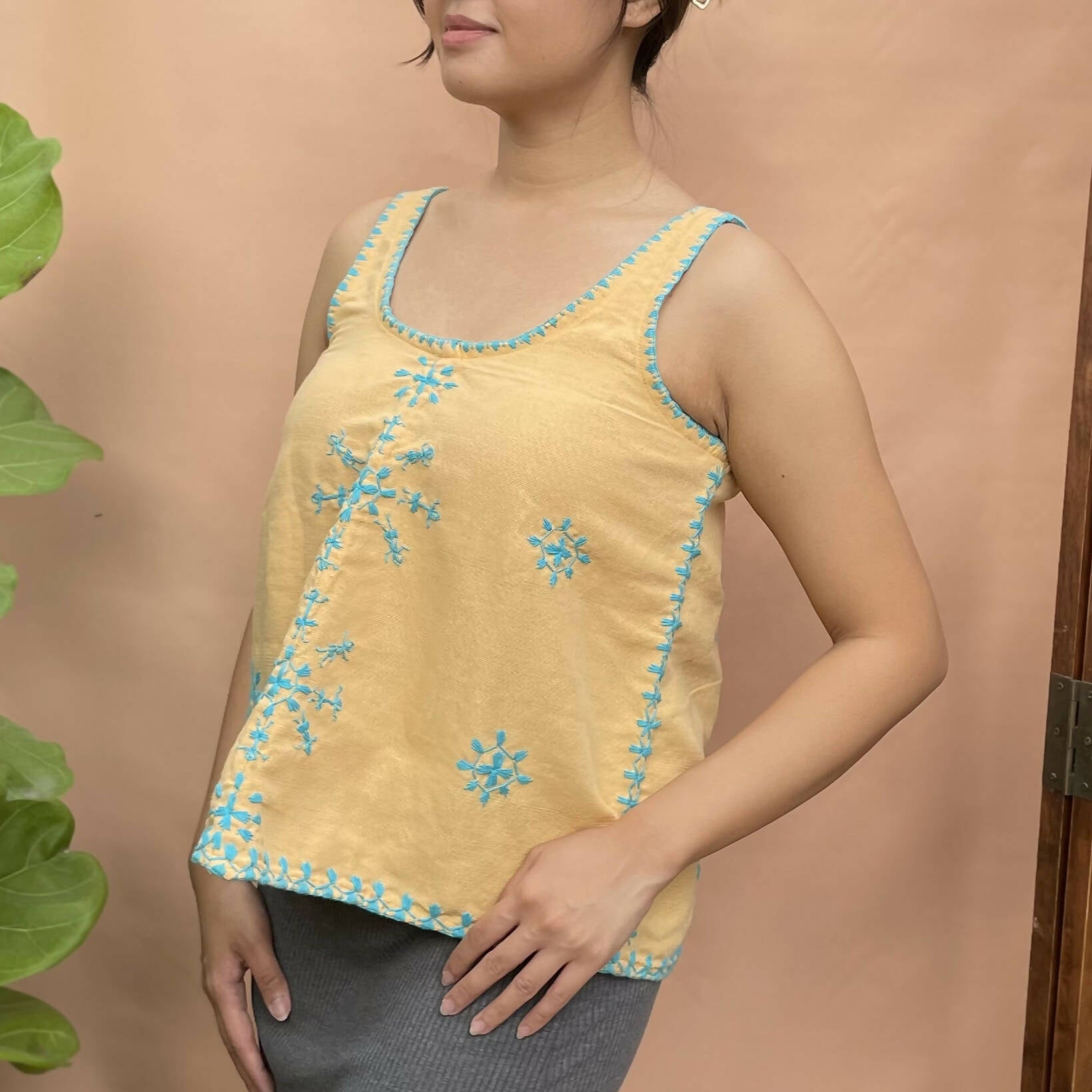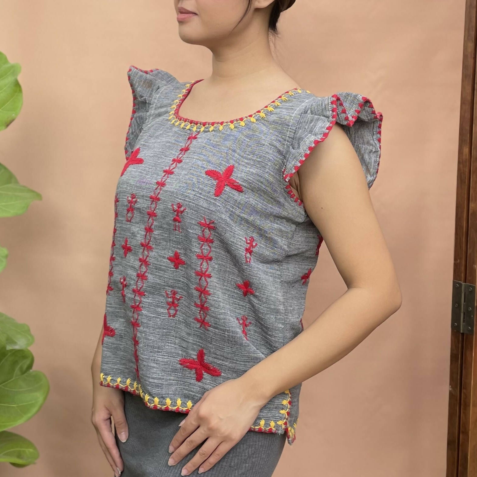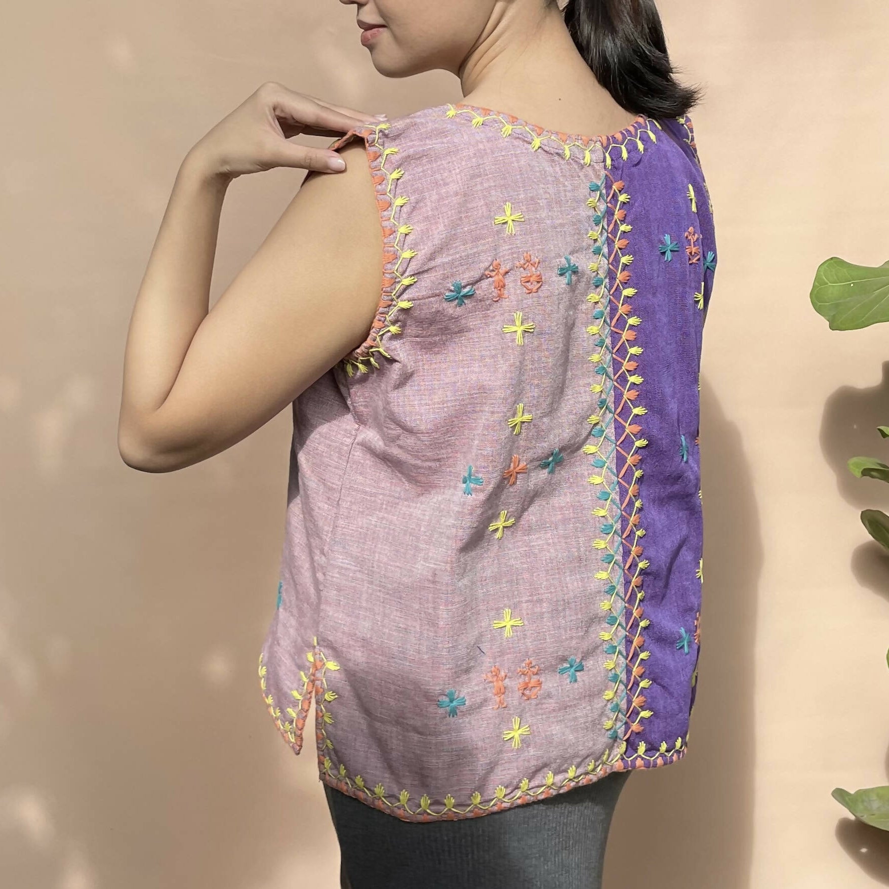 Handwoven Sleeveless Top w/ Itneg Embroidery