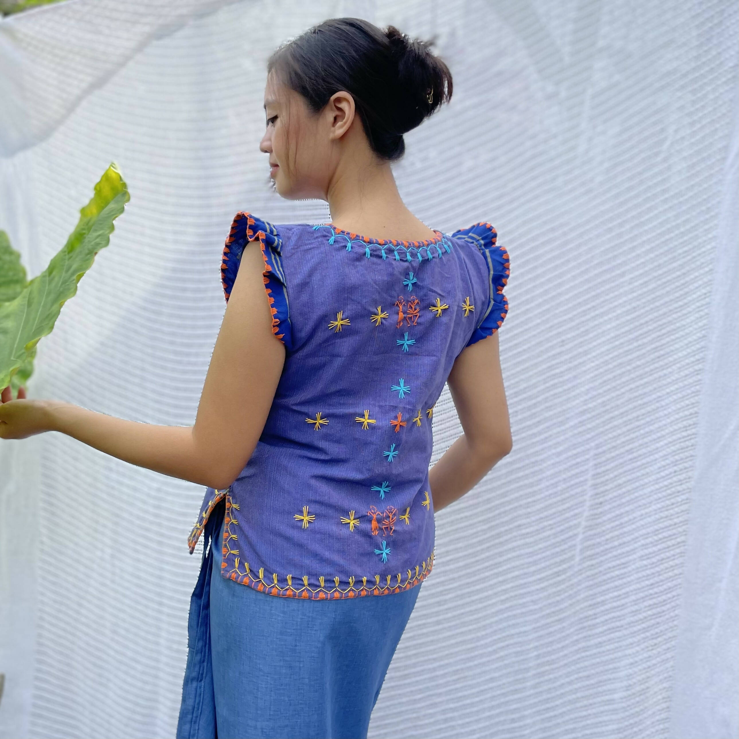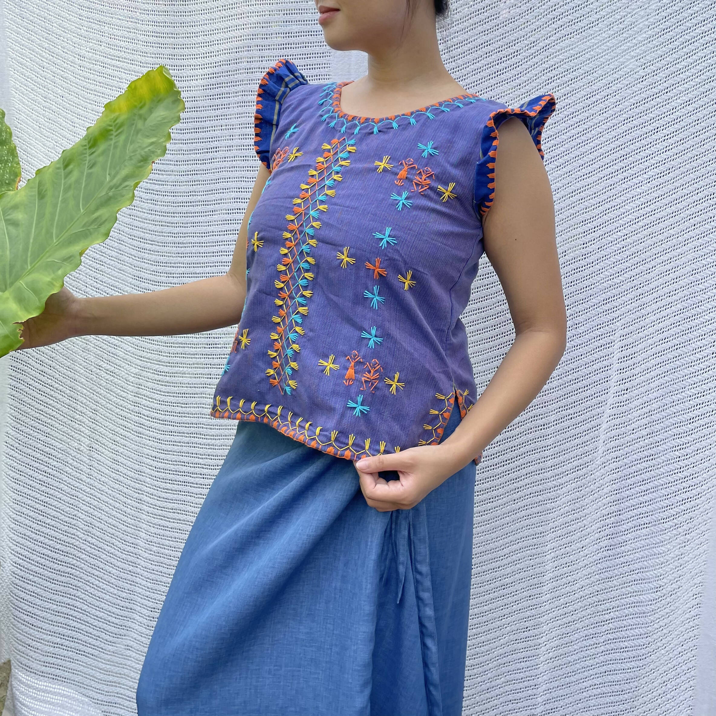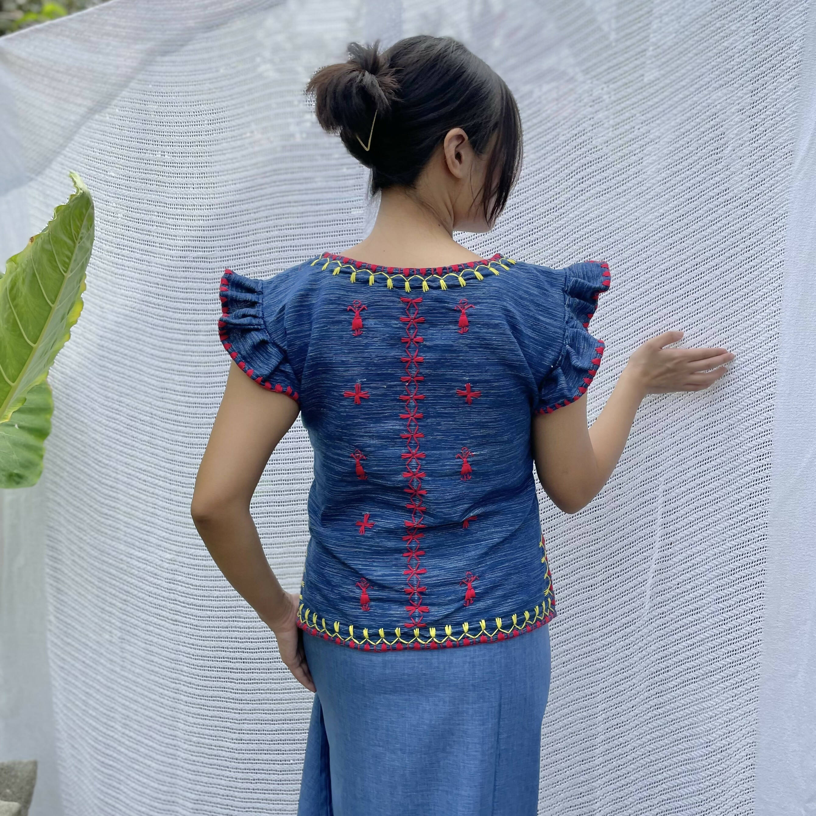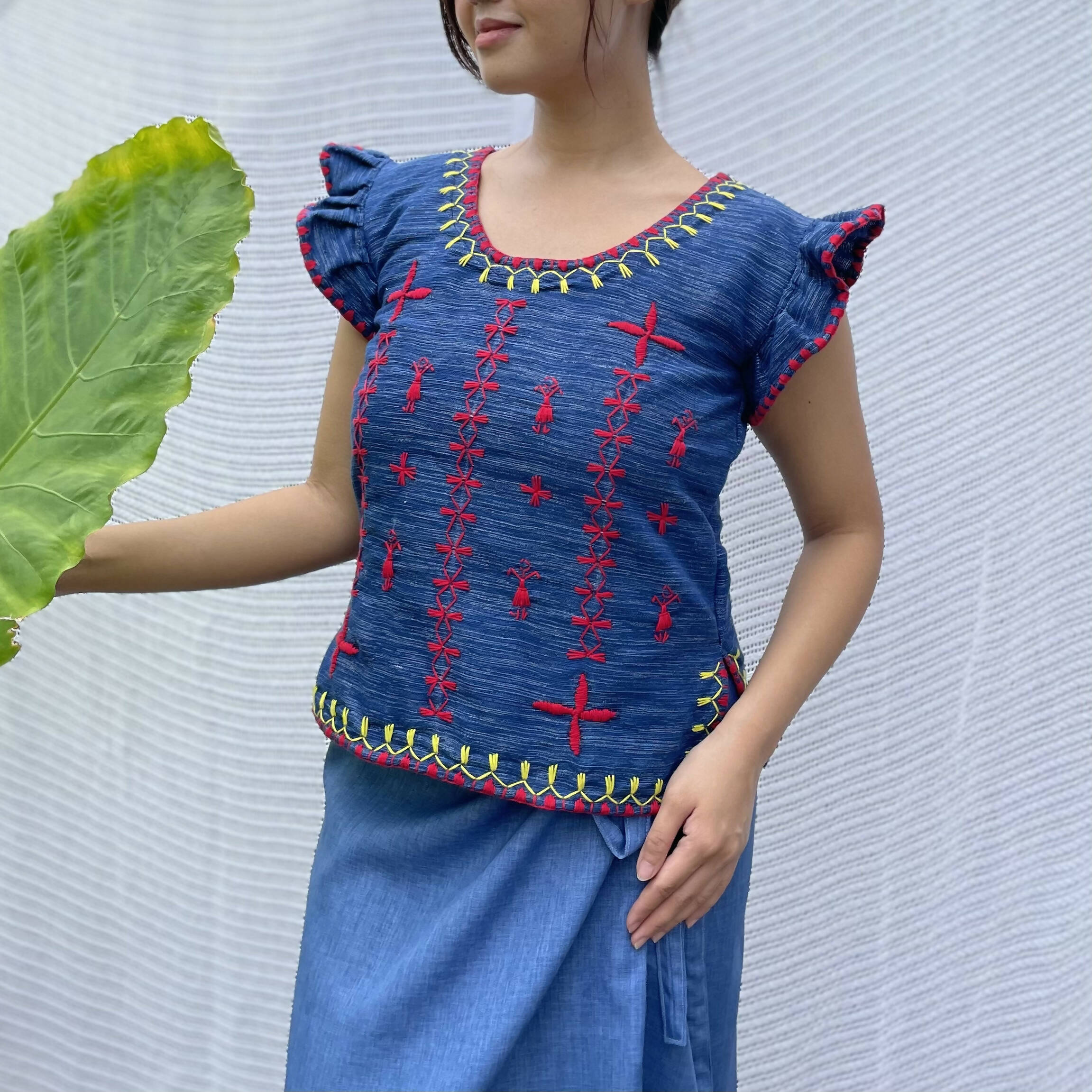 made of Inabel handwoven fabric by our partner weavers from Abra embroidered by the Itneg community small-batch every top is unique, as it is completely hand-crafted embroideries may differ per stock  made of cotton gentle handwash with like colors only SIZE SHOULDER BUST WAIST LENGTH Medium 14 in 34 in 34 in 22 in Large 14.5 in 36 in 36 in 22 in