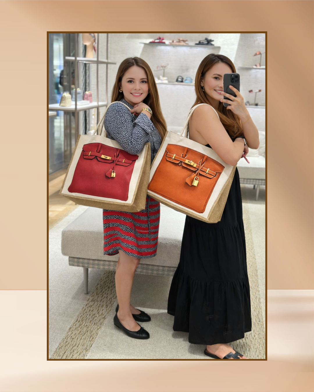 ·    Locally made and designed·    Both sides of the bag have design (front & back)·    Material: canvass and jute fiber·    Size: 42L x 18W x 34H cm·    Available in Brown and Red ·    Bag charms not included