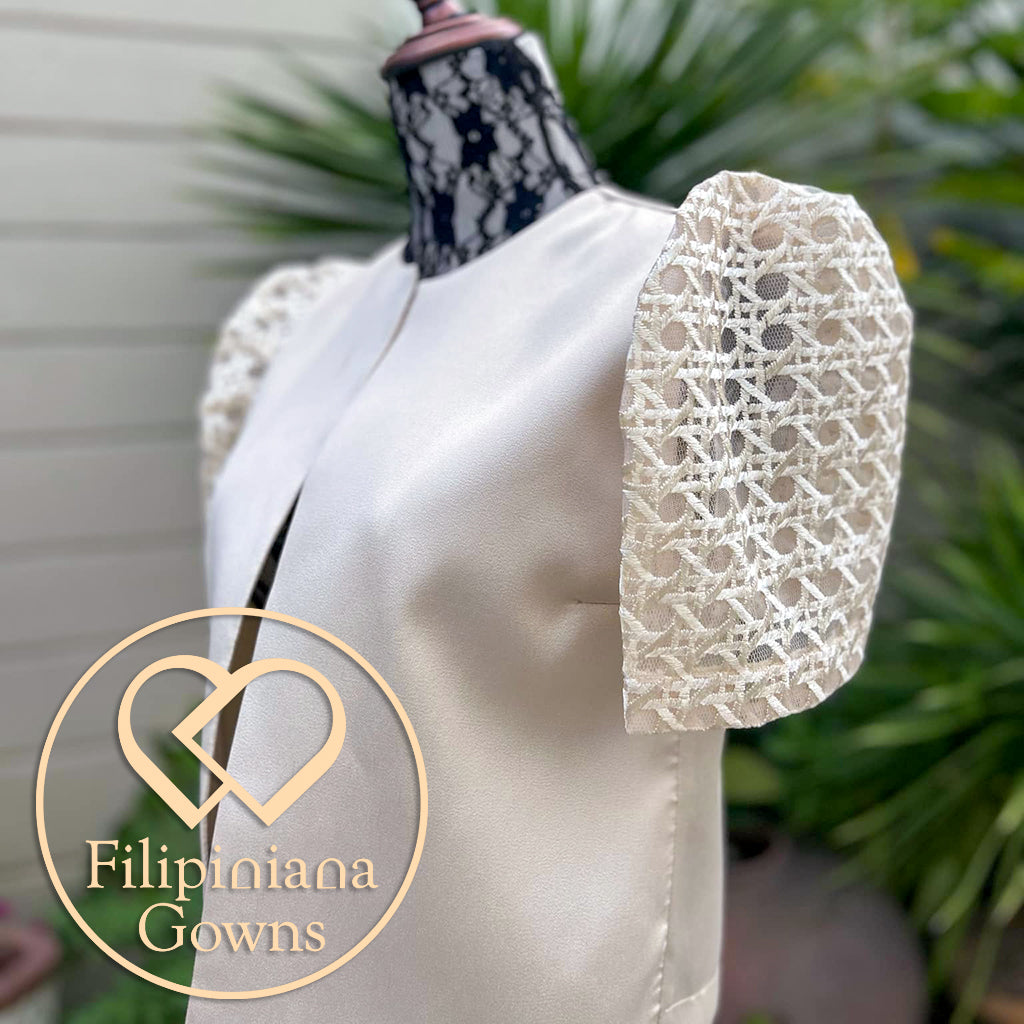 KIMONA BLOUSE also known as the top part of Filipiniana Terno attire that embodies elegance of our cultural heritage. It is characterized by its loose-fitting, short-sleeved blouse that is typically made from lightweight and colorful fabrics and flowing silhouette. Its butterfly sleeves are wide and voluminous, extending from the shoulder to the forearm, creating a distinctive and graceful appearance.