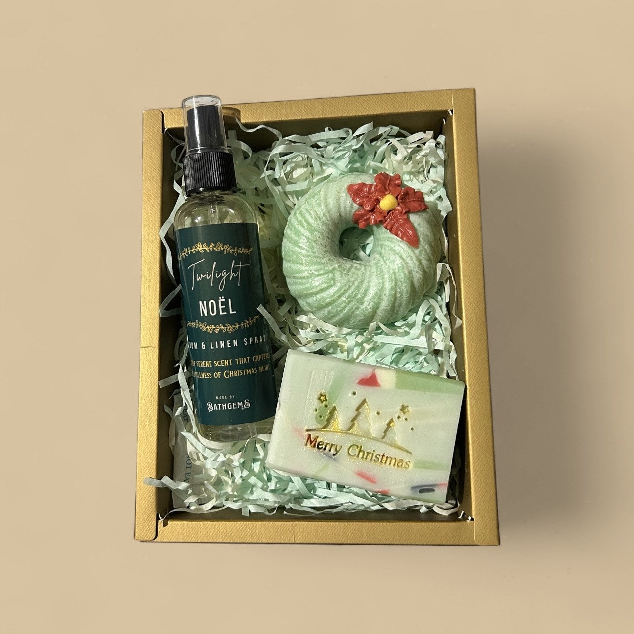 Discover Bathgems Christmas gift sets featuring handcrafted room and linen sprays, artisanal holiday soaps and festive bath treats.  A heartfelt, handcrafted luxury gift for the season.