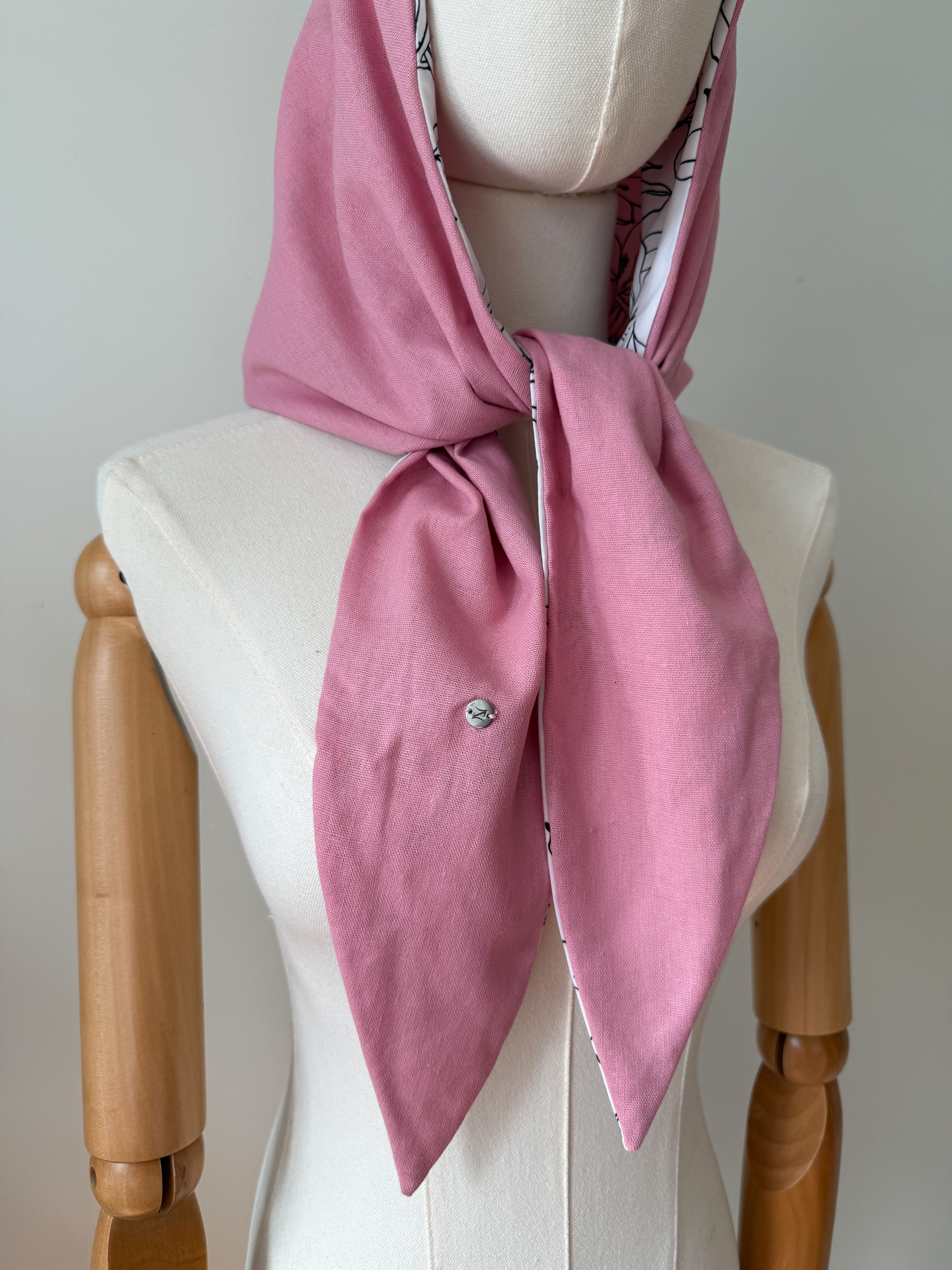 Hood-Scarf in Floral and Pink