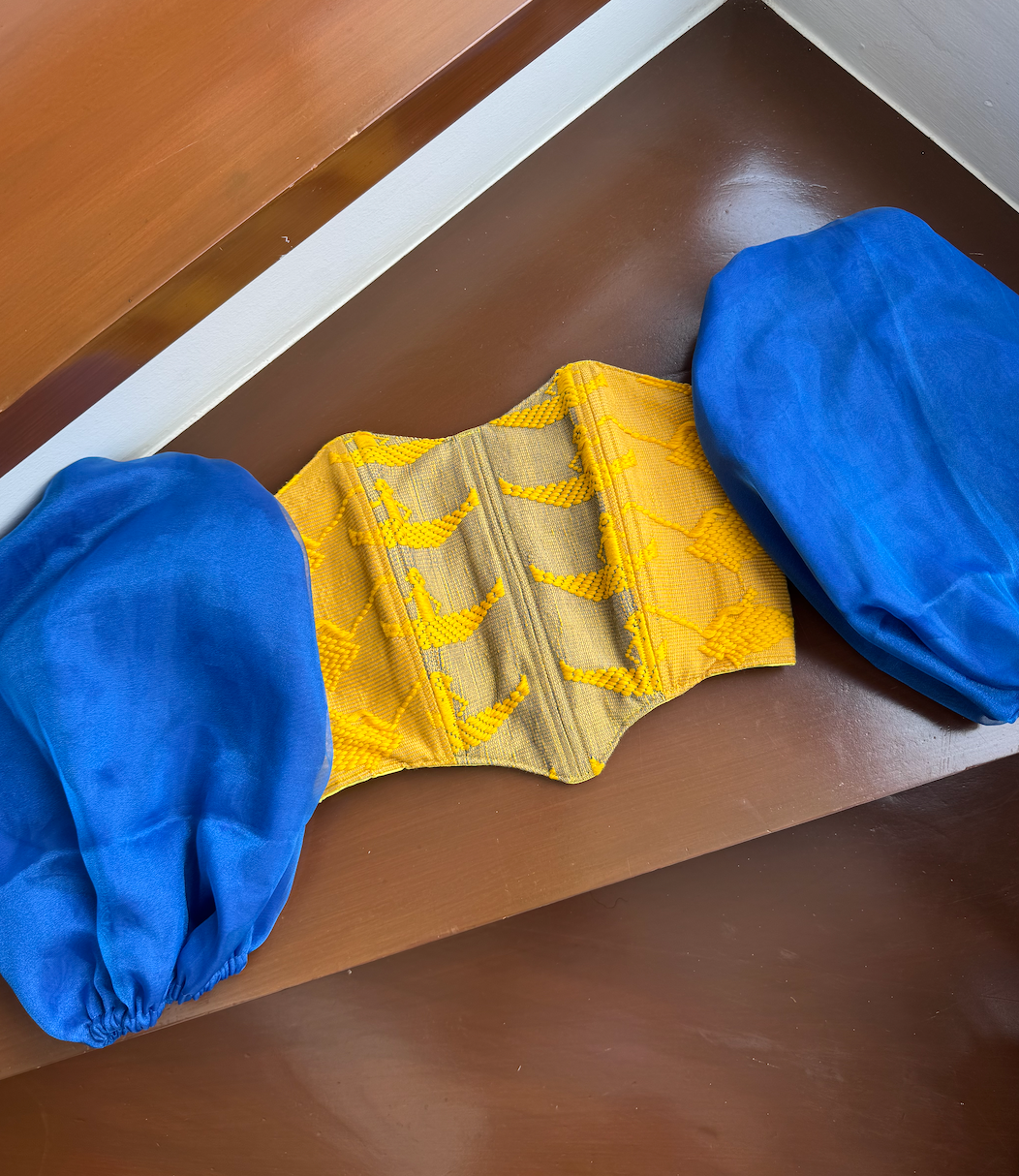 Inabel Corset + Detachable Organza Sleeves Small-MediumBody Length 10"Bust 34-36"Sleeve Armhole: 12-20"Sleeve Length:15"Corset Length Upper: 28"Corset Length Lower: 25"Please allow 0.5" measuring deviation due to handmade products.