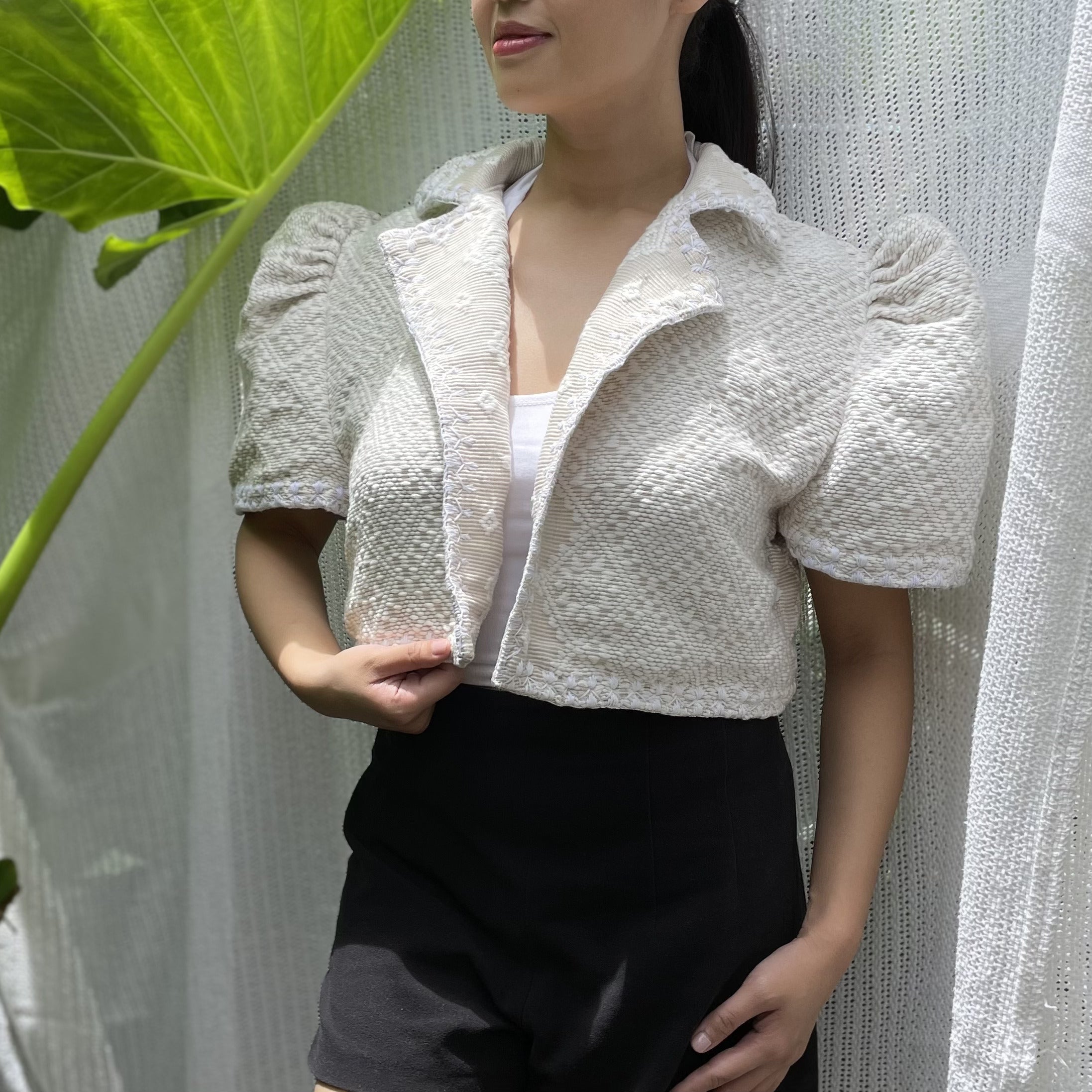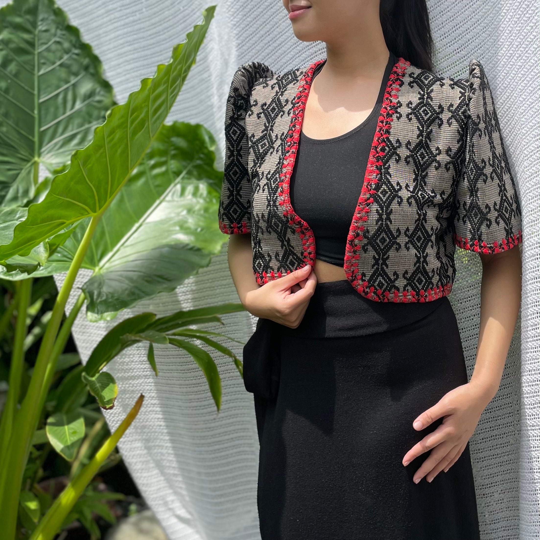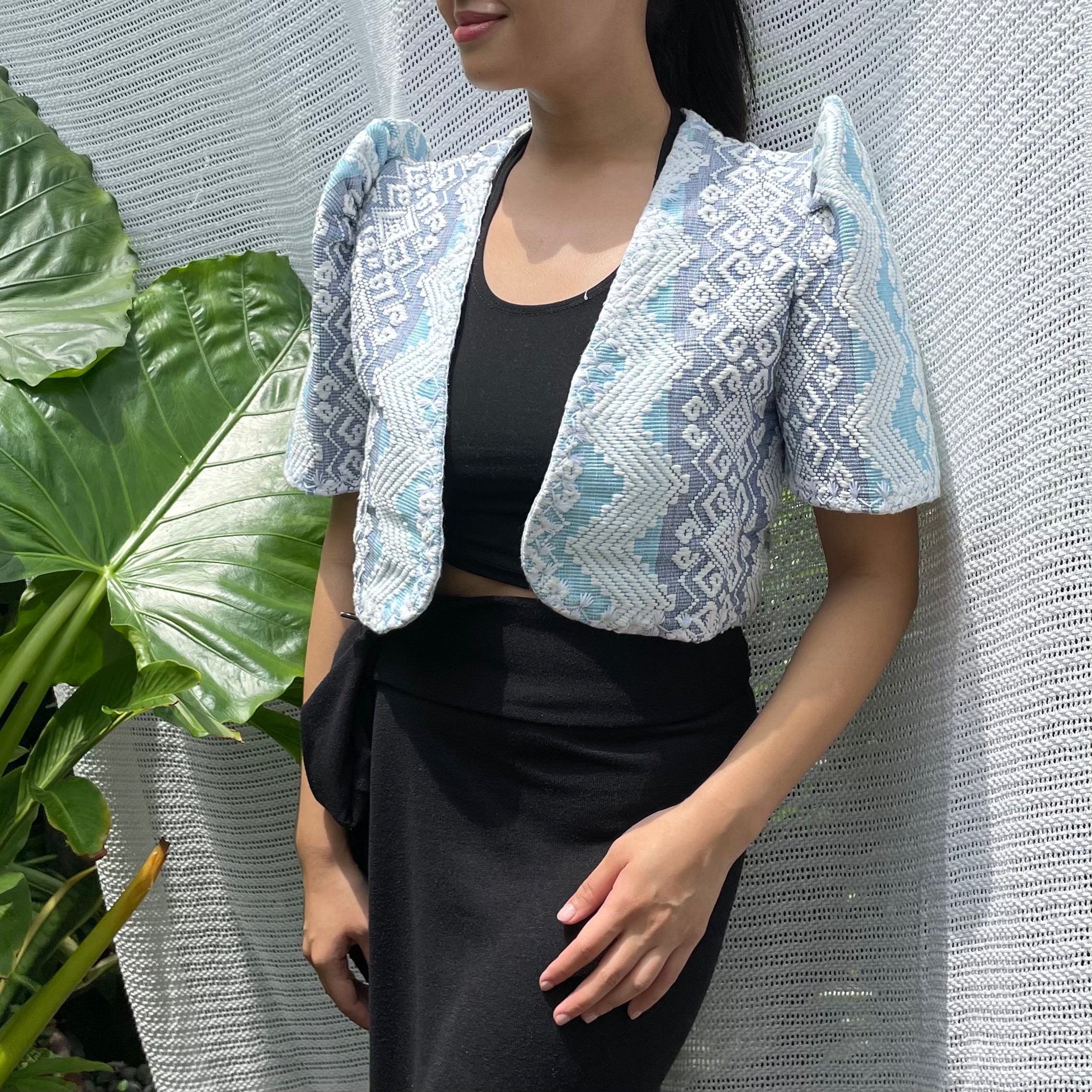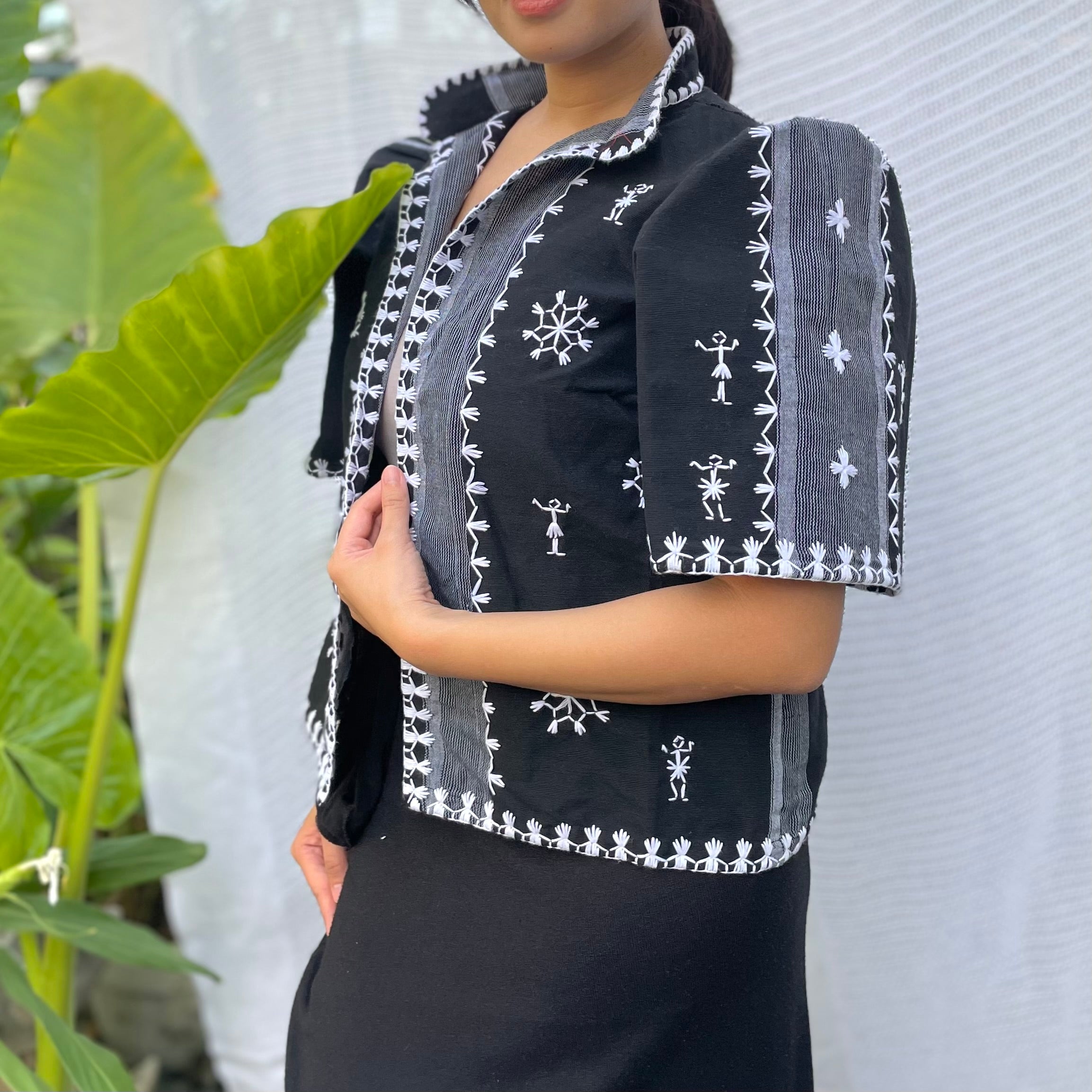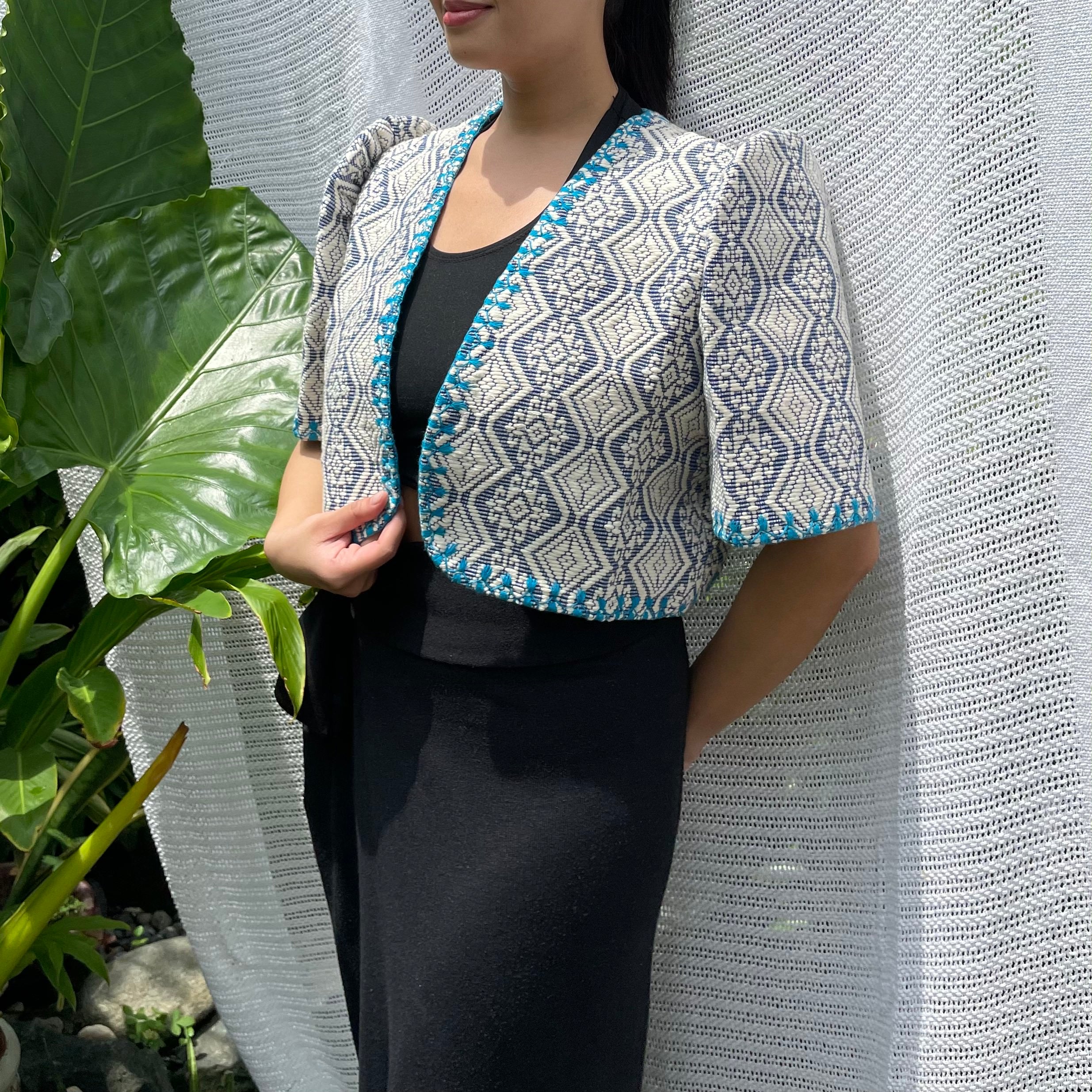 made of Inabel handwoven fabric made by our partner weavers from Abra embroidered by the Itneg community small-batch every bolero is unique embroideries may differ per stock  throw it on over any outfit: be it casual or formal! breathable and breezy as it is made of cotton length of bolero (from shoulders down): 15 in