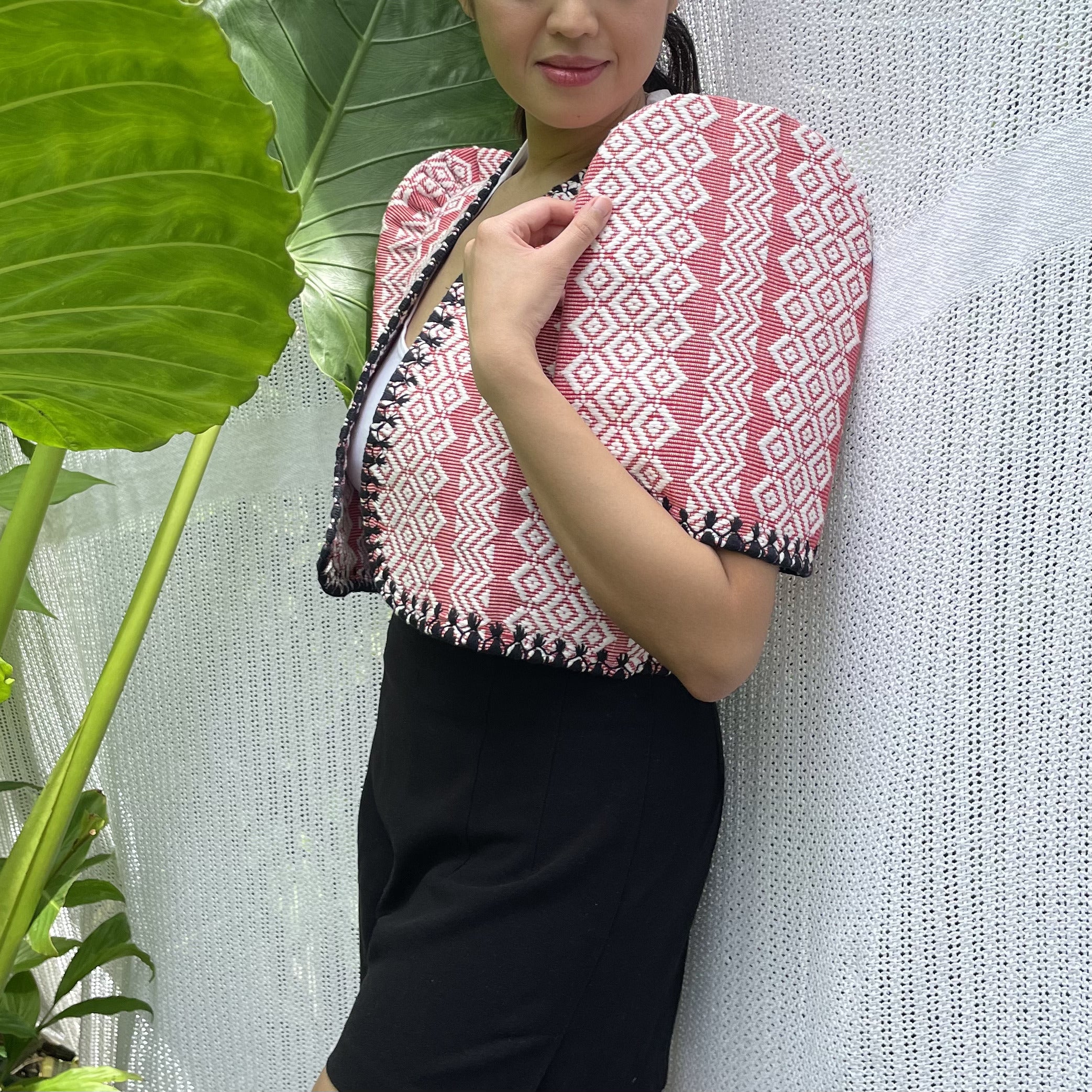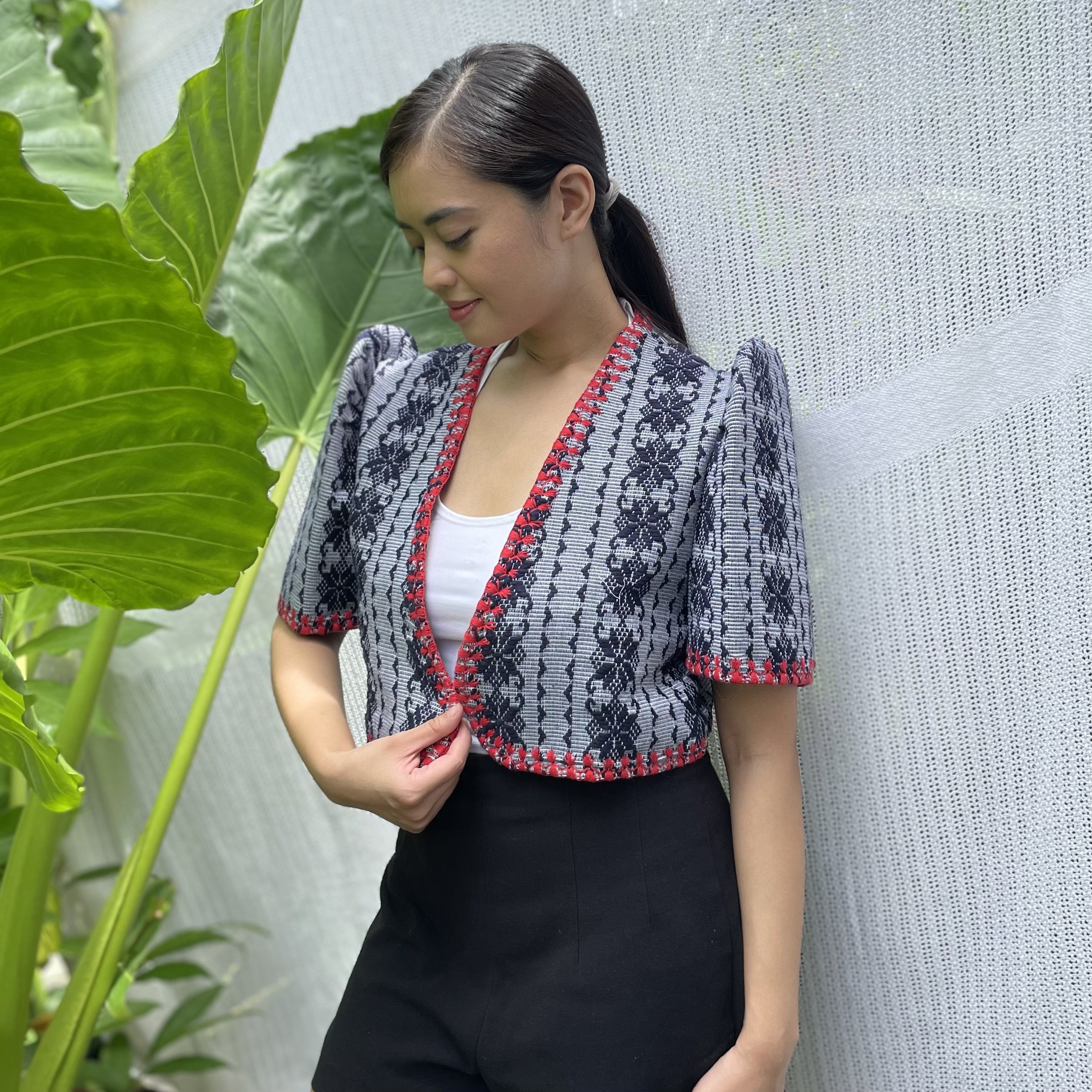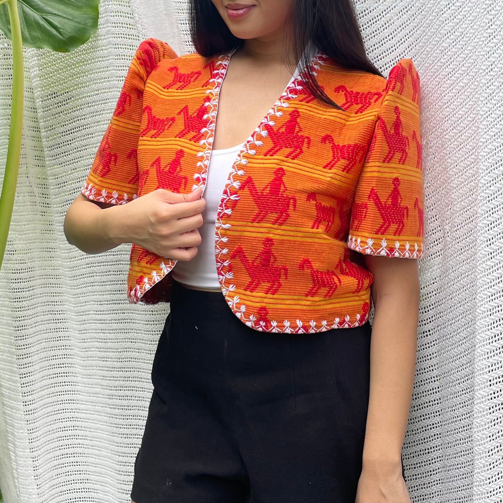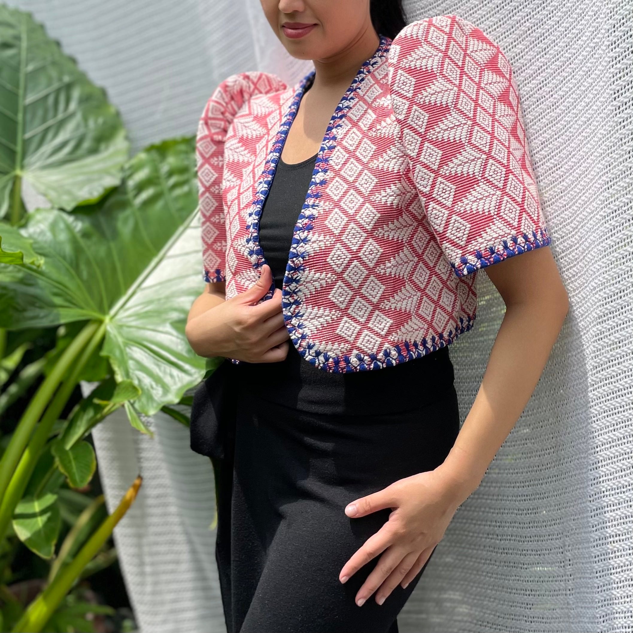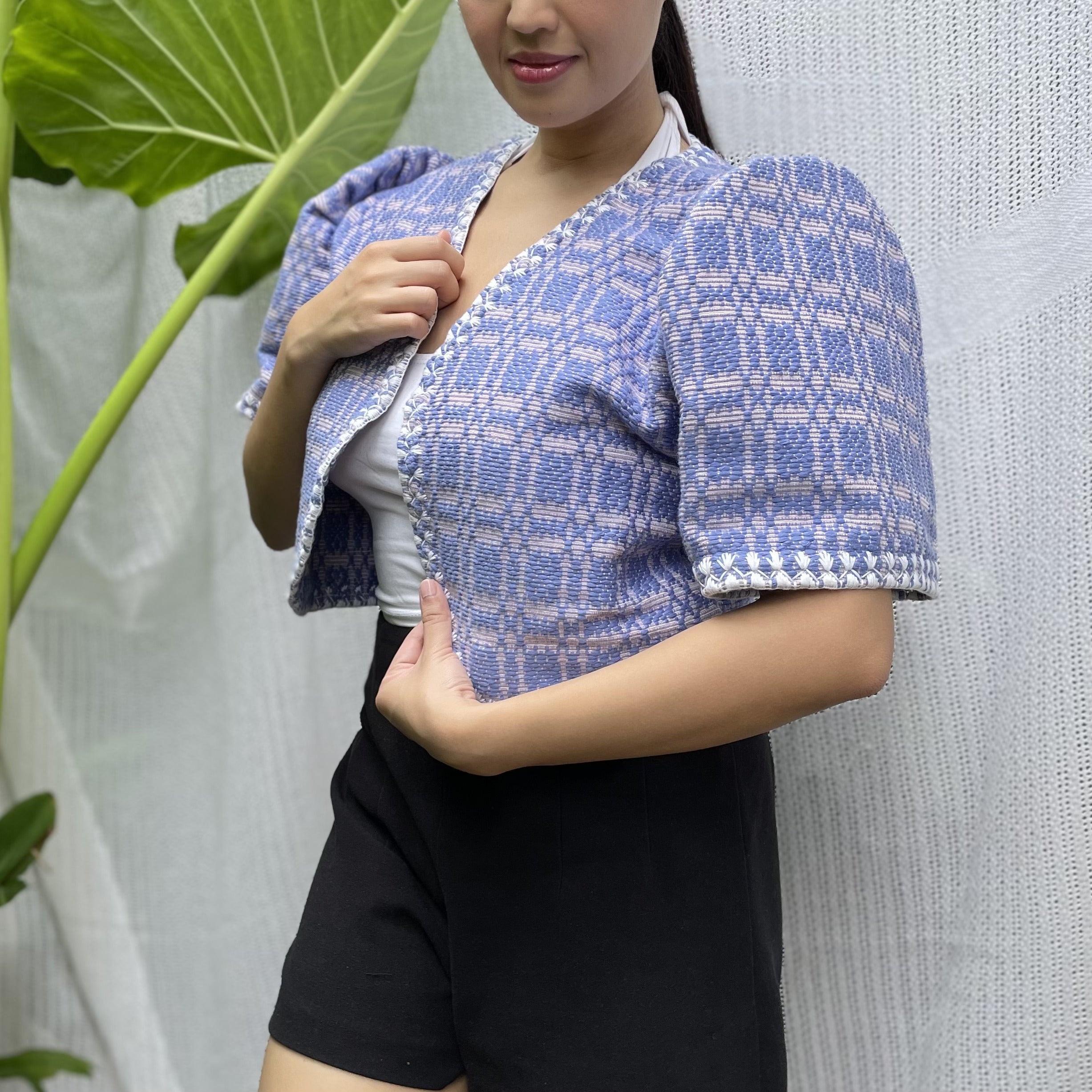 made of Inabel handwoven fabric made by our partner weavers from Abra embroidered by the Itneg community small-batch every bolero is unique embroideries may differ per stock  throw it on over any outfit: be it casual or formal! breathable and breezy as it is made of cotton length of bolero (from shoulders down): 15 in