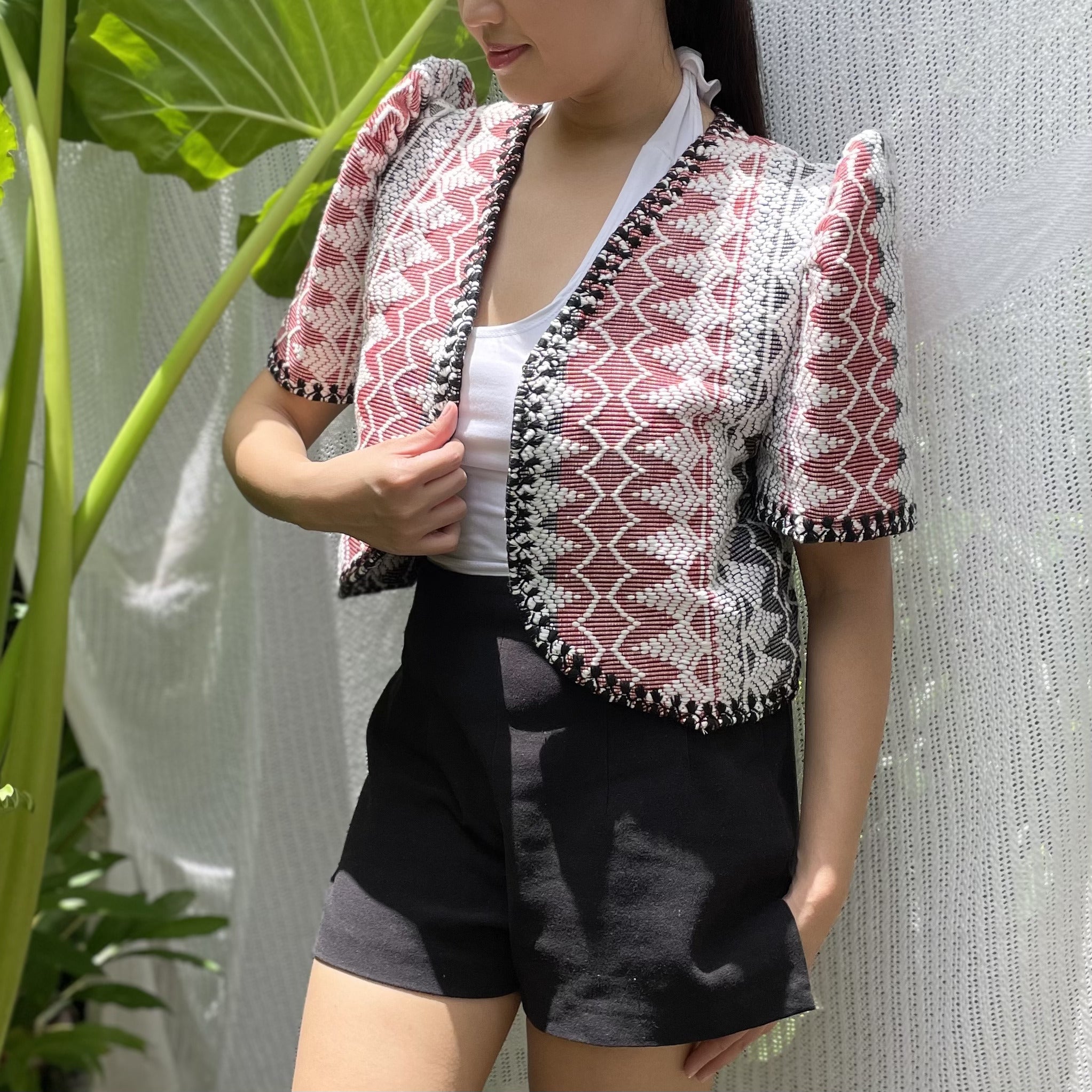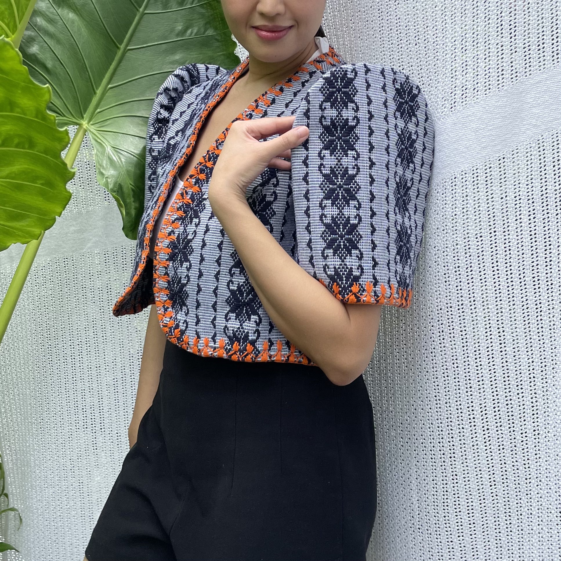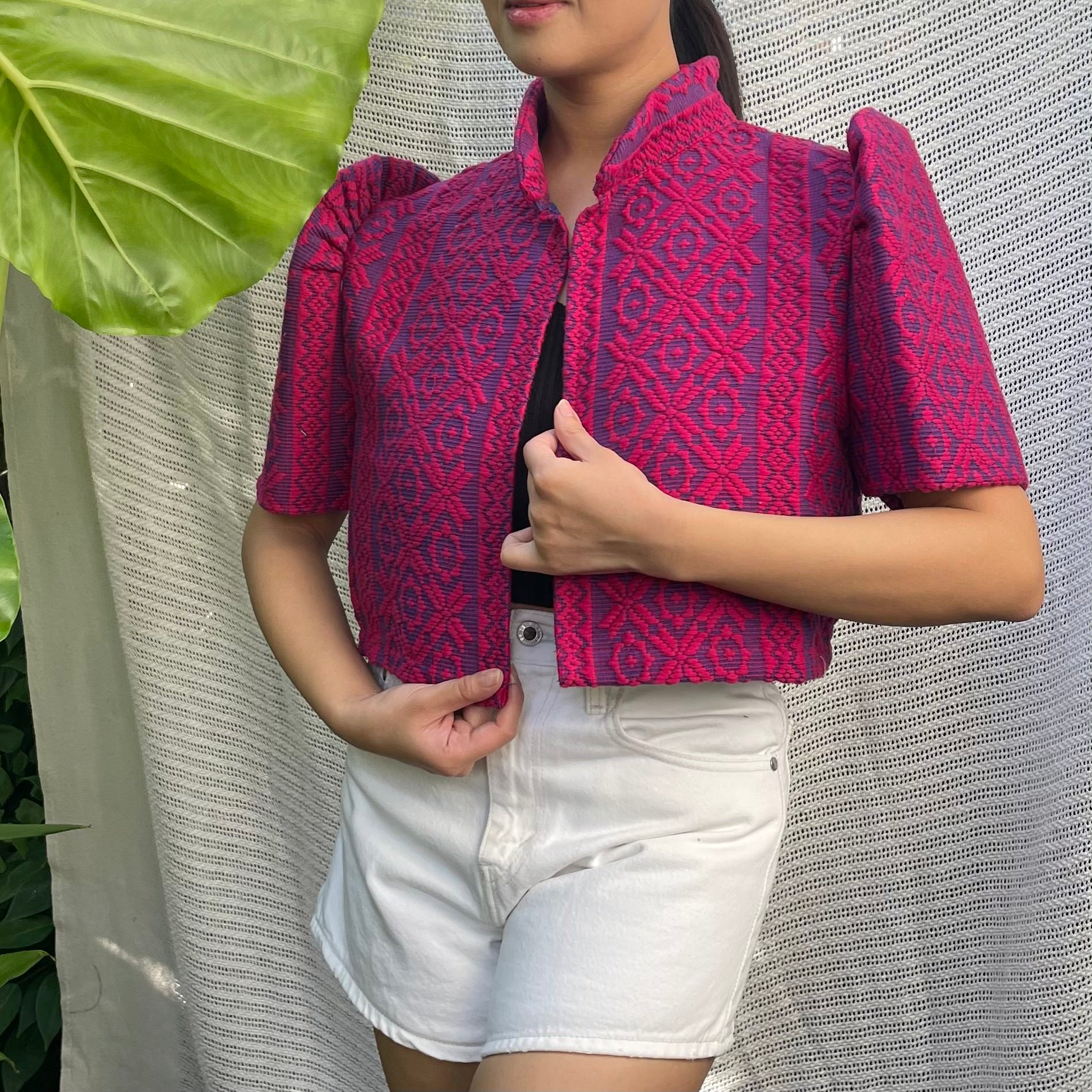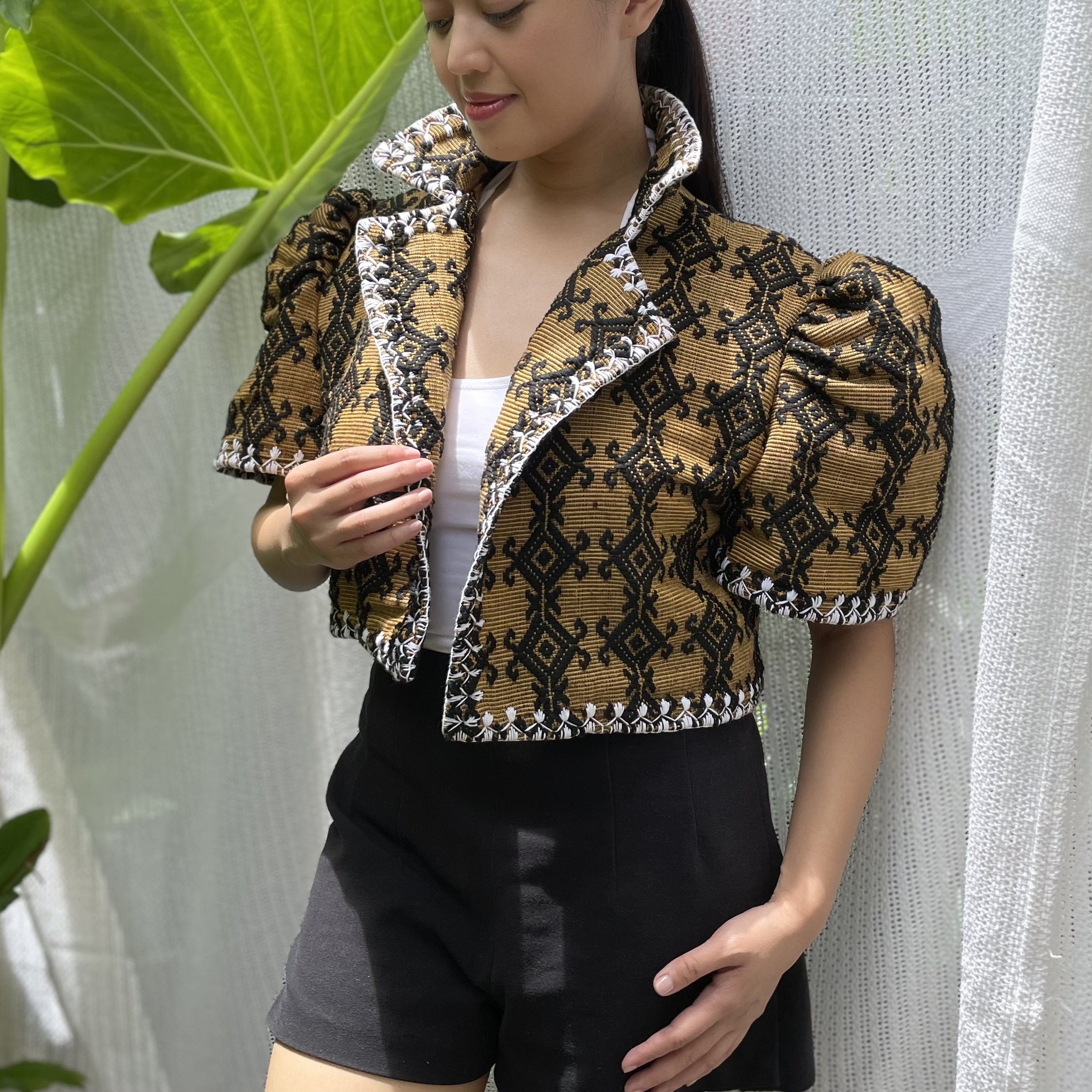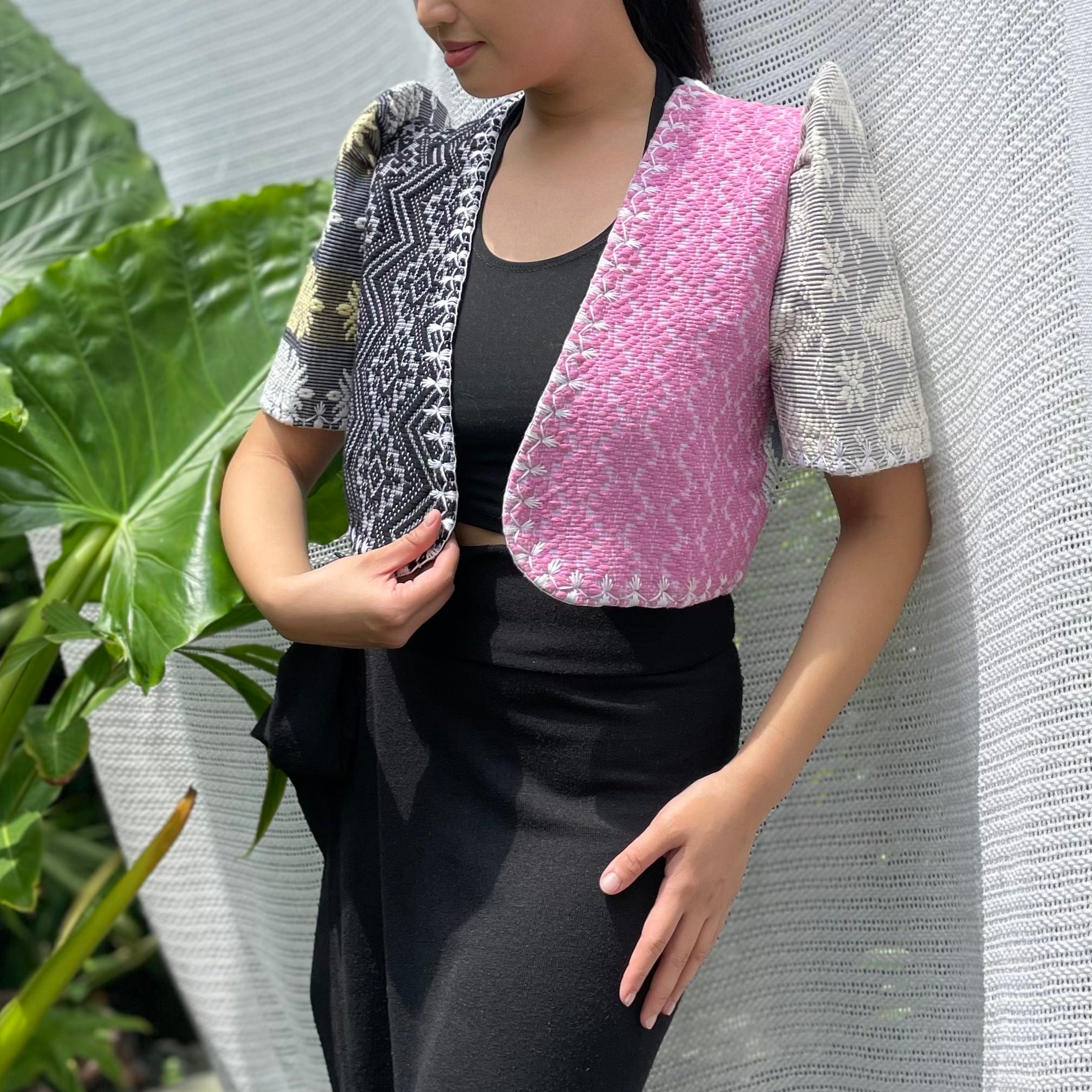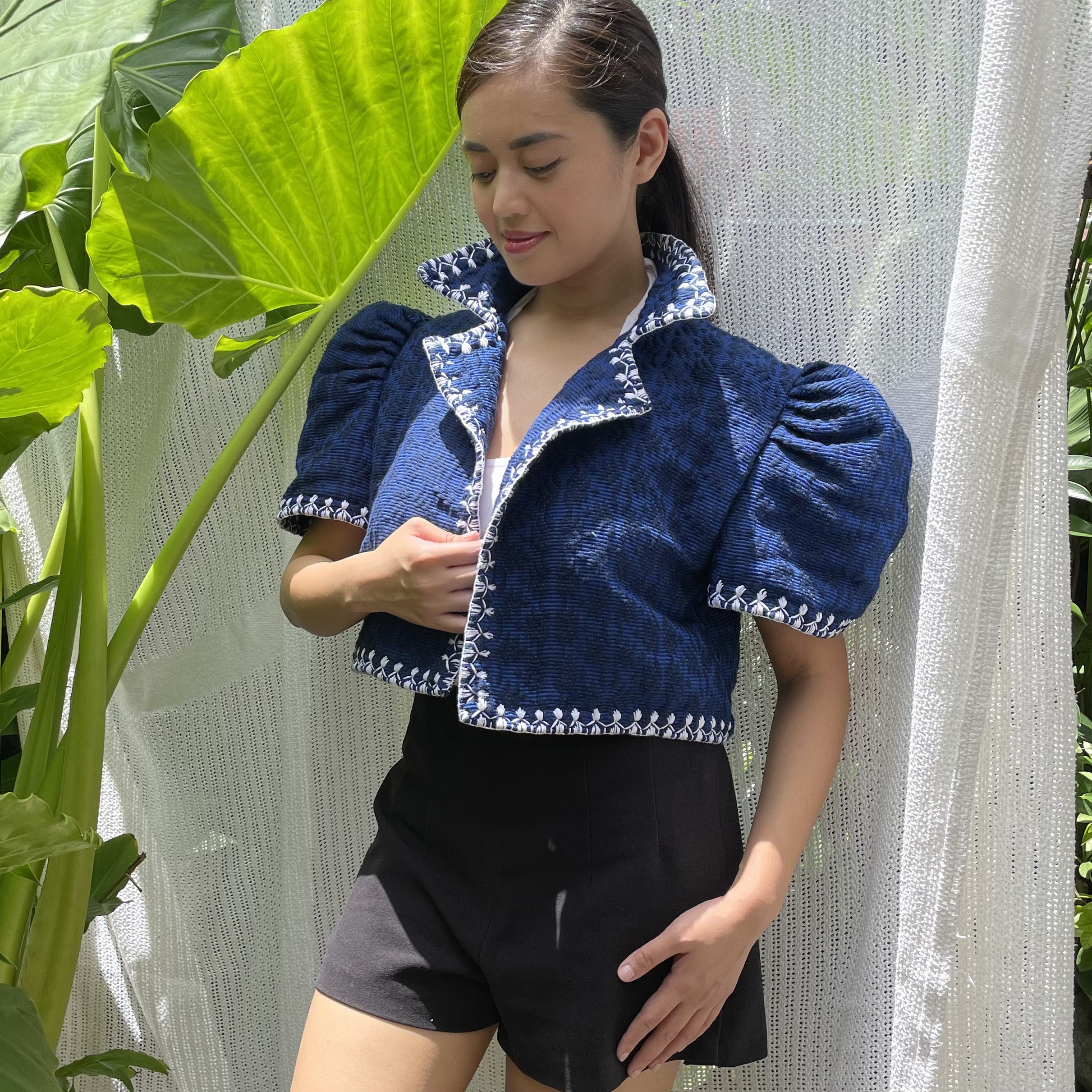 made of Inabel handwoven fabric made by our partner weavers from Abra embroidered by the Itneg community small-batch every bolero is unique embroideries may differ per stock  throw it on over any outfit: be it casual or formal! breathable and breezy as it is made of cotton length of bolero (from shoulders down): 15 in