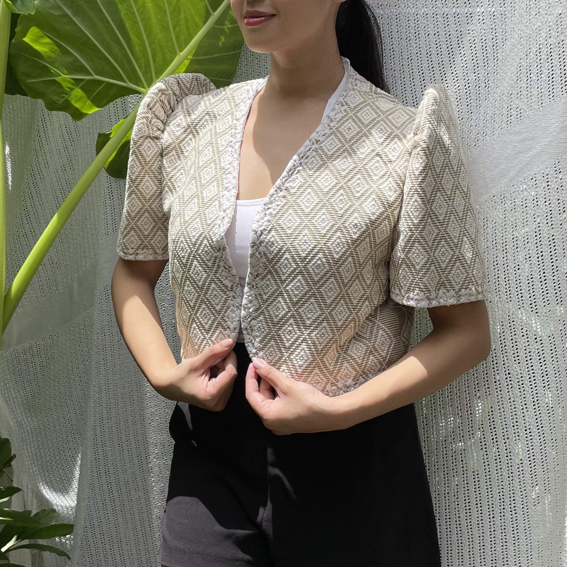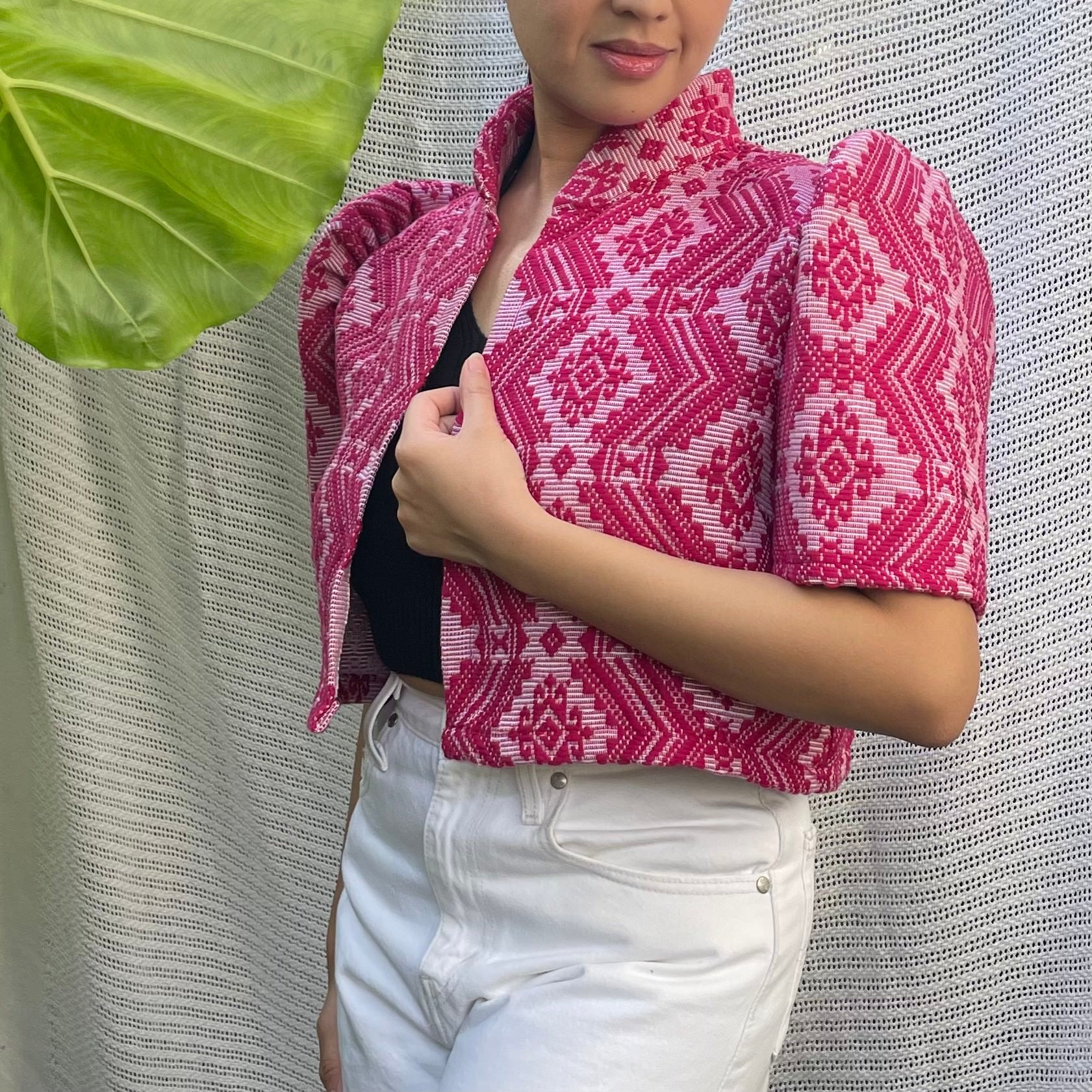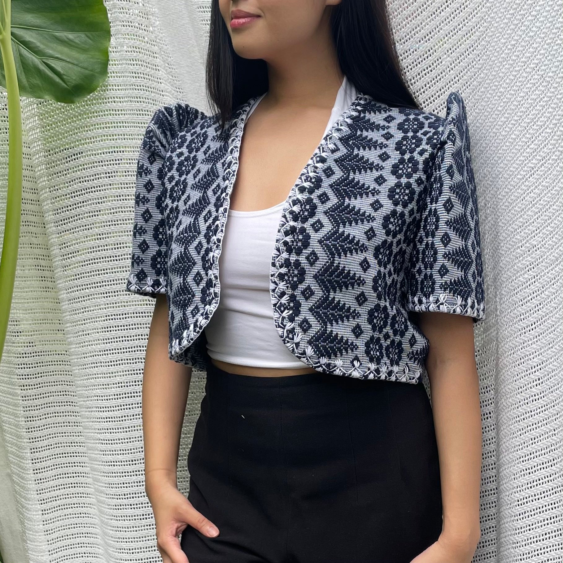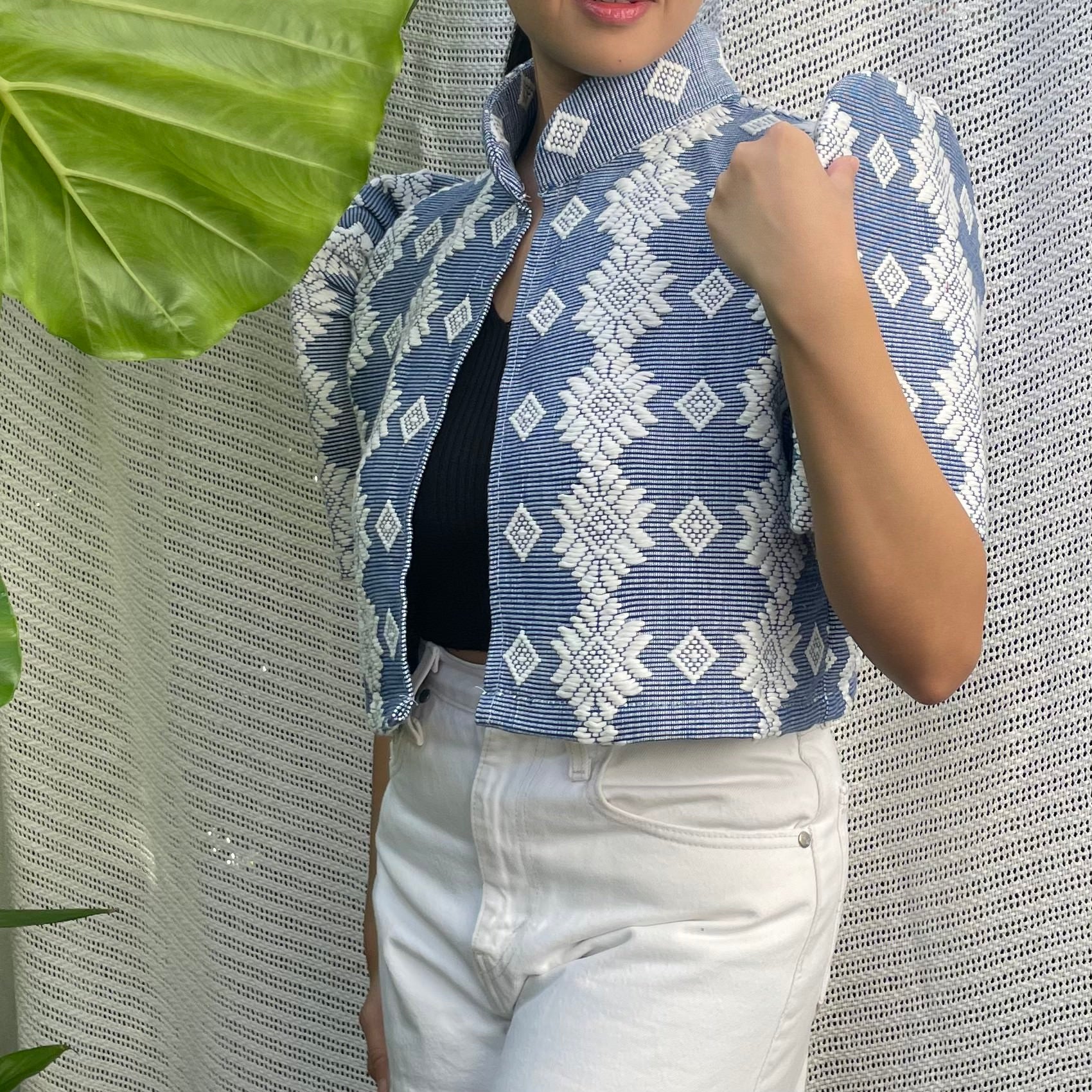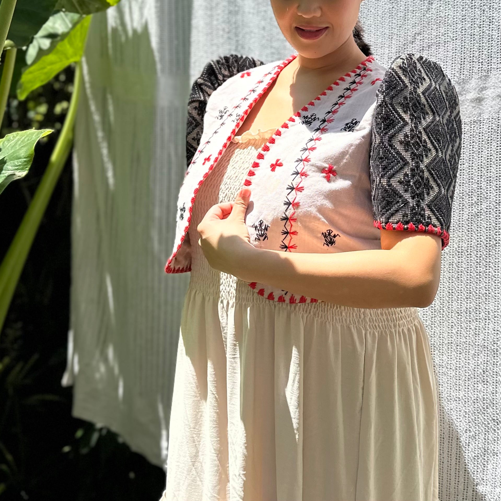 made of Inabel handwoven fabric made by our partner weavers from Abra embroidered by the Itneg community small-batch every bolero is unique embroideries may differ per stock  throw it on over any outfit: be it casual or formal! breathable and breezy as it is made of cotton length of bolero (from shoulders down): 15 in
