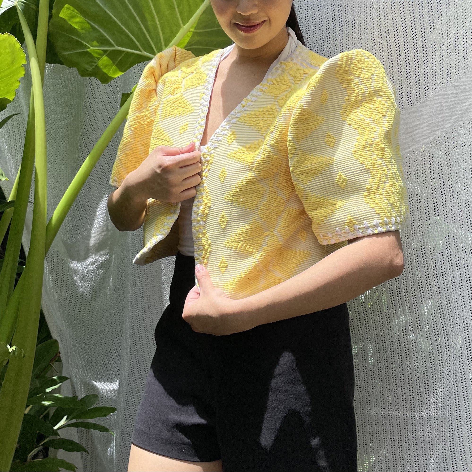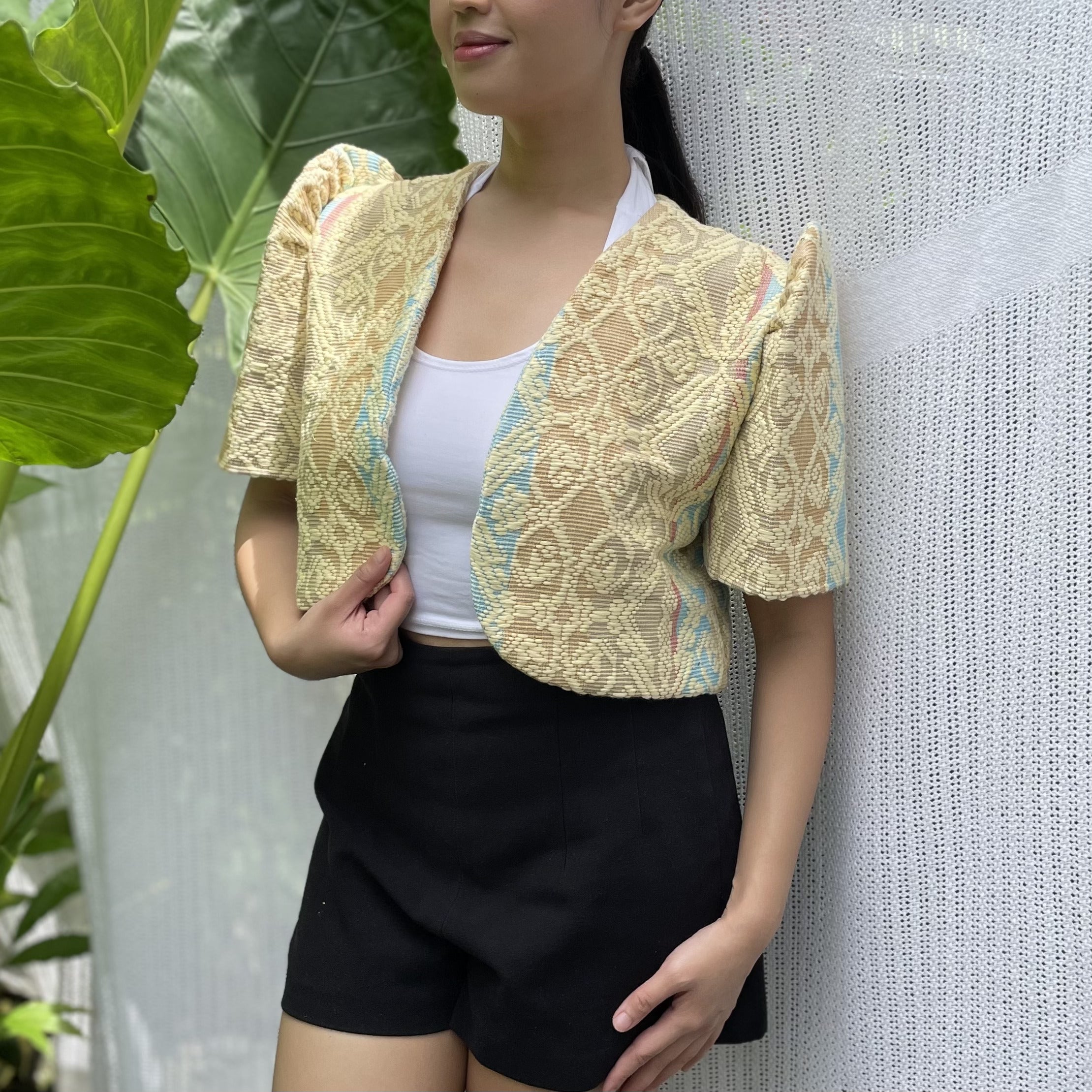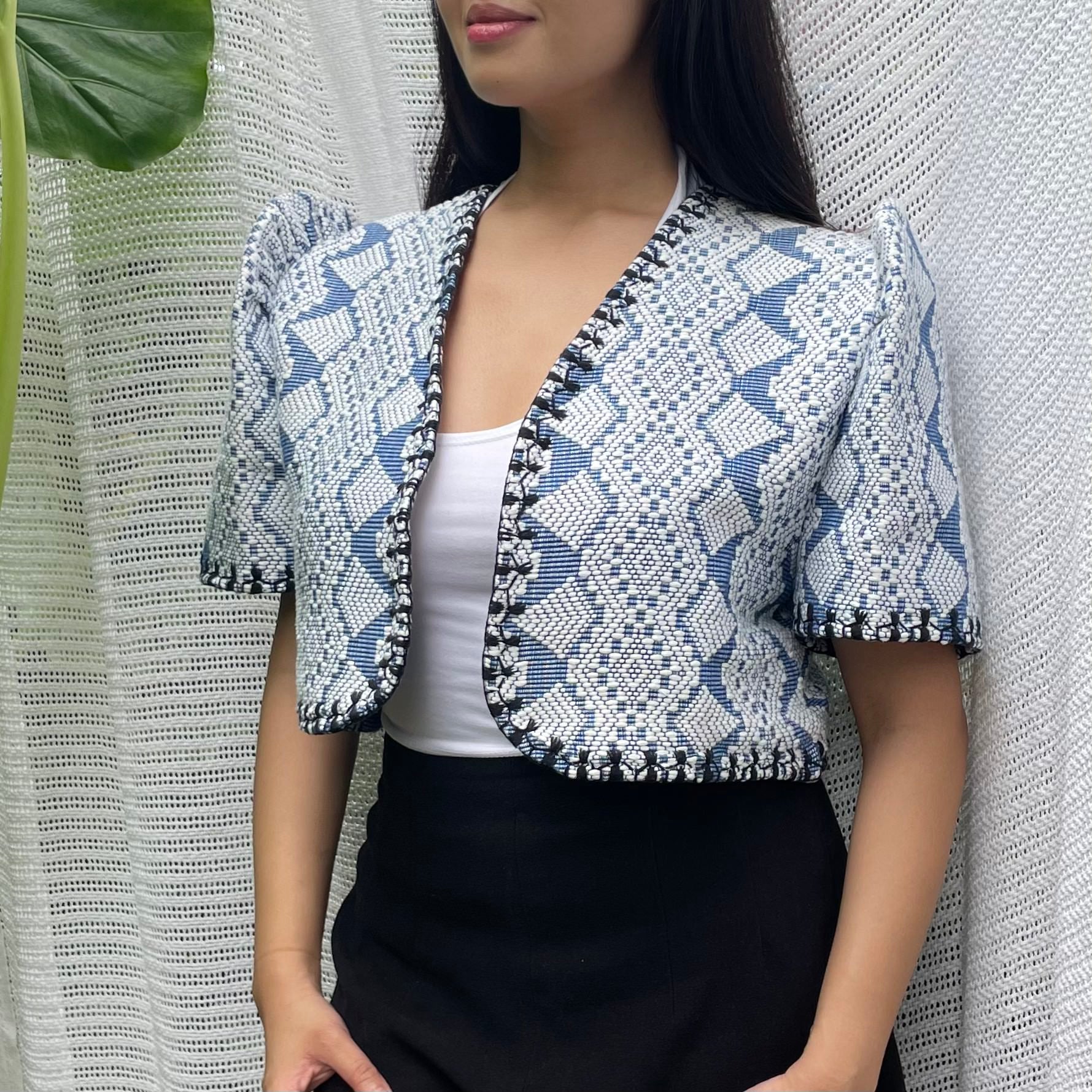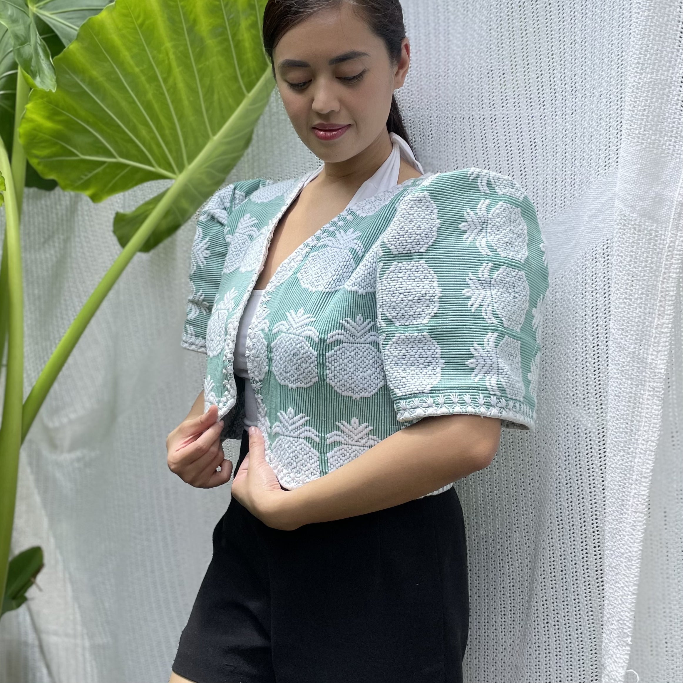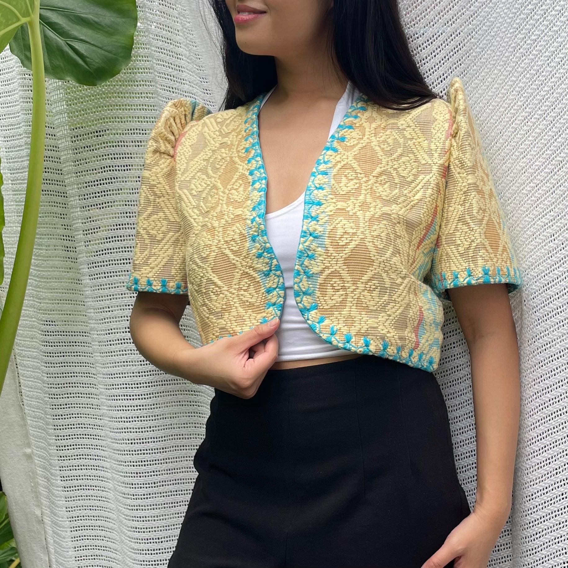 made of Inabel handwoven fabric made by our partner weavers from Abra embroidered by the Itneg community small-batch every bolero is unique embroideries may differ per stock  throw it on over any outfit: be it casual or formal! breathable and breezy as it is made of cotton length of bolero (from shoulders down): 15 in