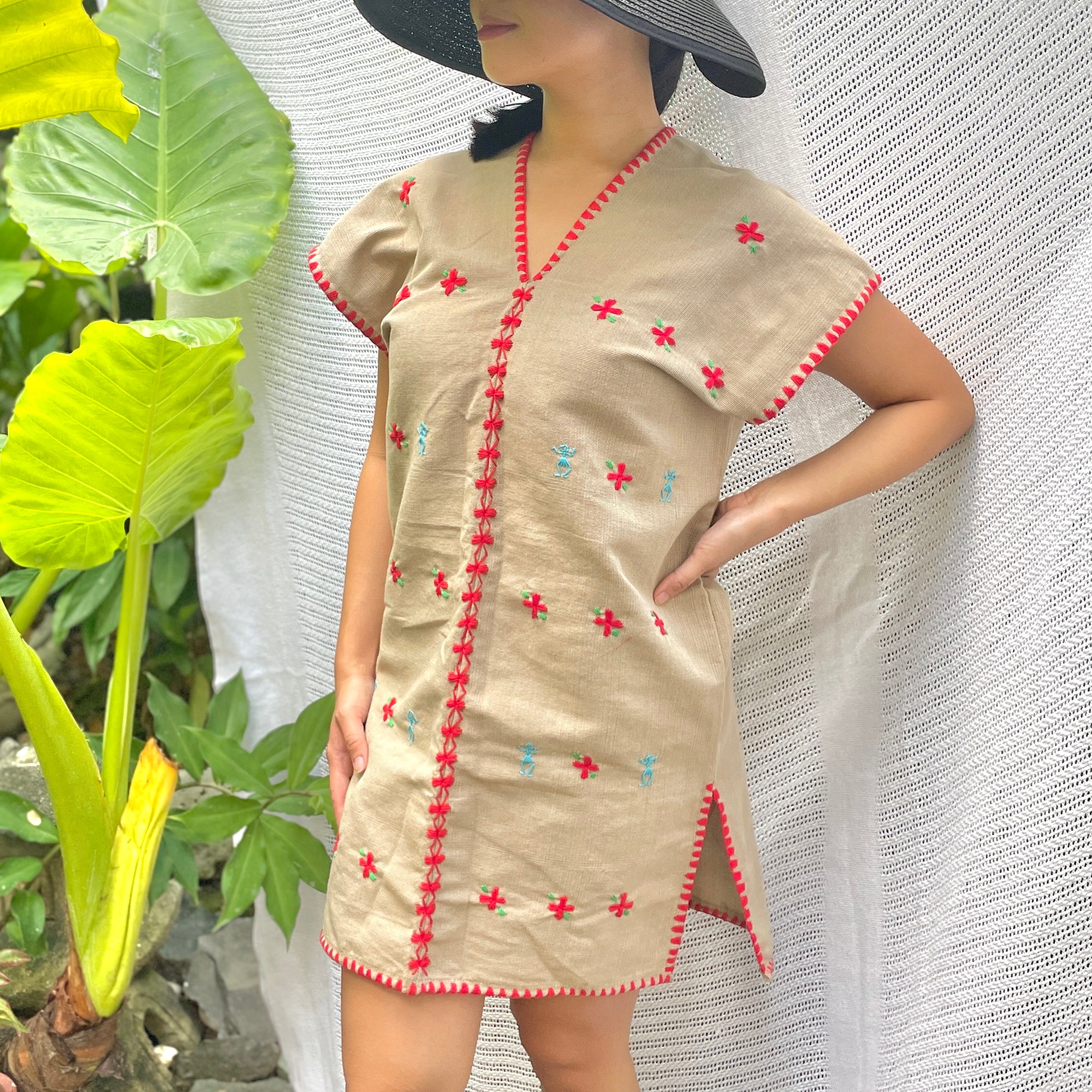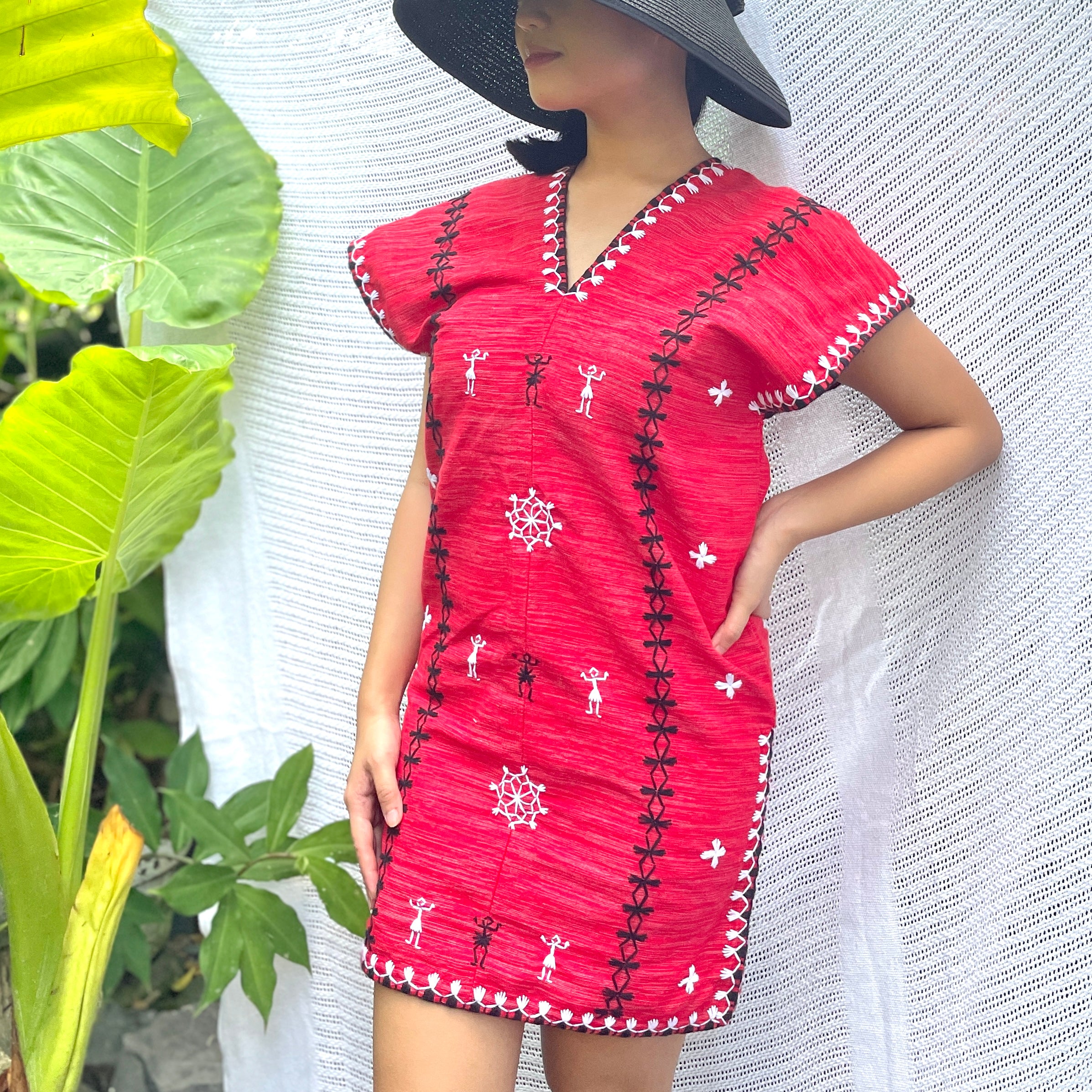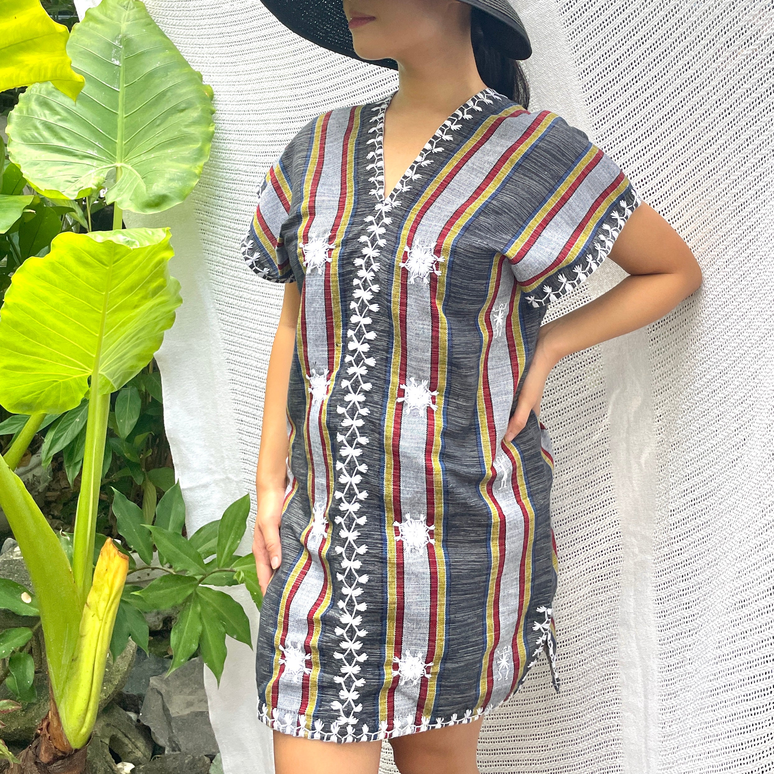 -Caftan dress handwoven and hand-embroidered by our partner weavers from Abra, Philippines