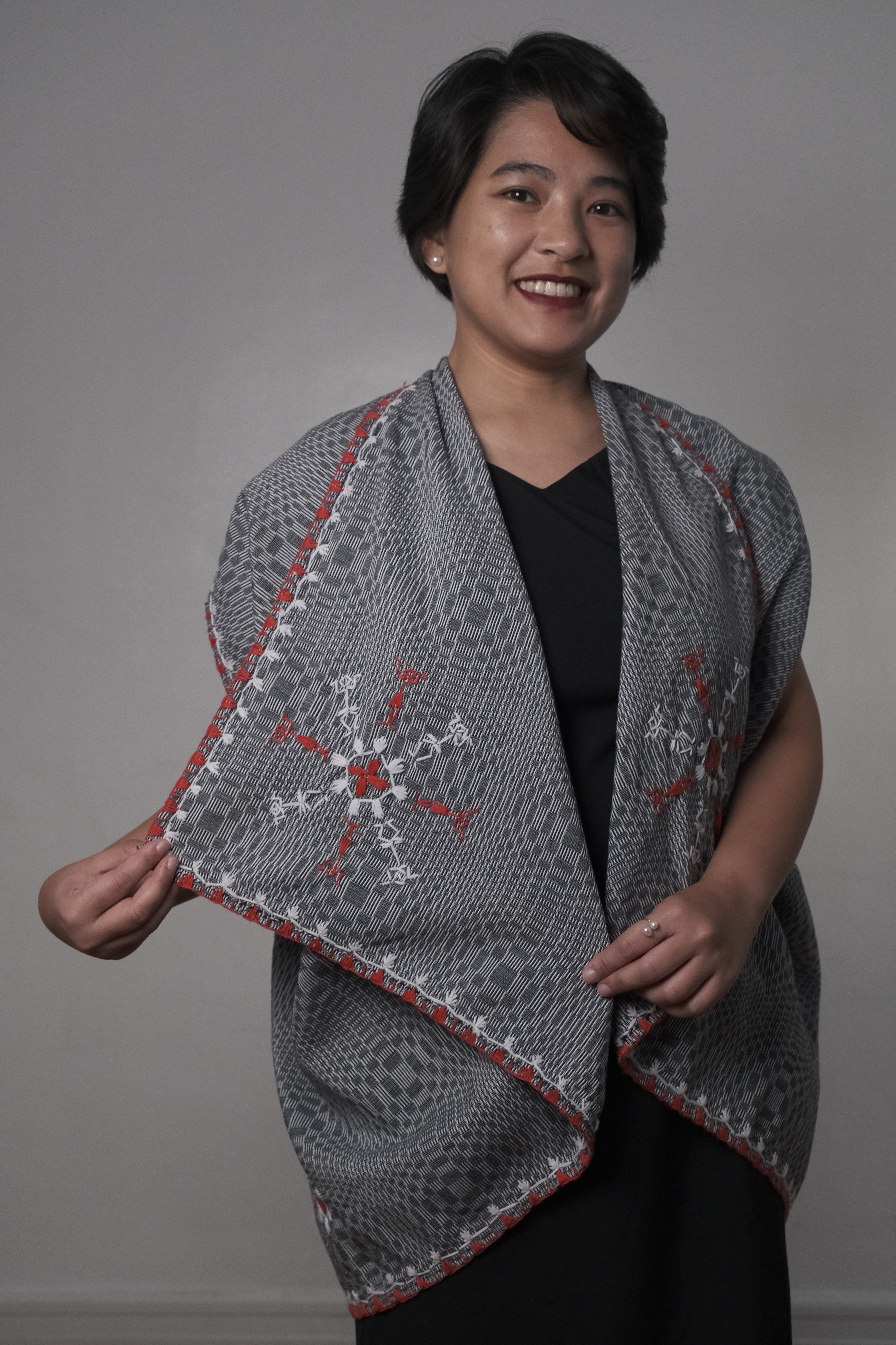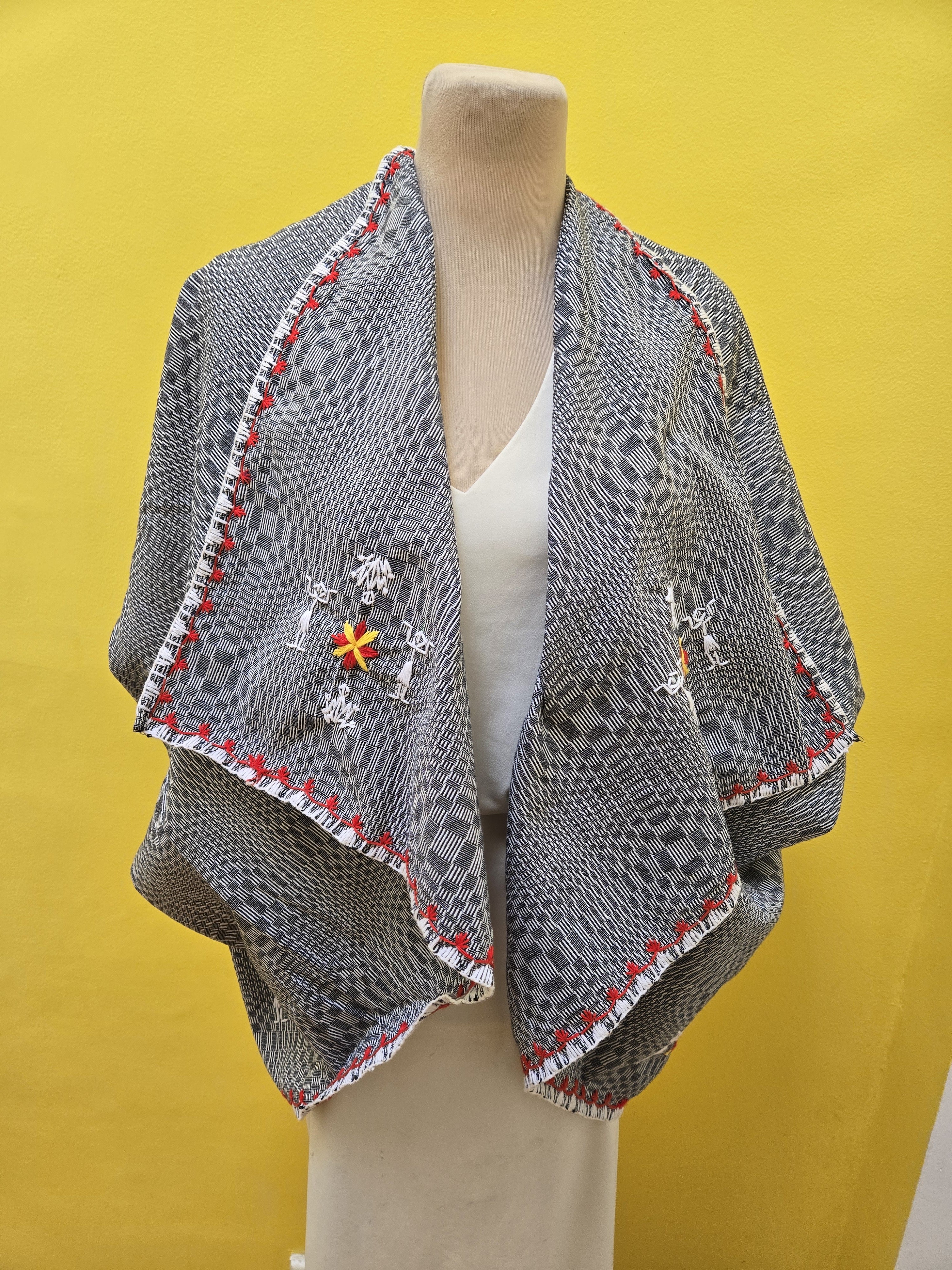 Grey Binakol poncho/cape in binakol weave with  intricate Itneg embroidery. Proudly Filipino made.