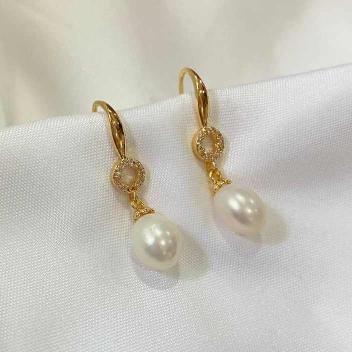 Freshwater Pearl Earrings Material: Gold Plated Chain Shape: Biwa Size: 8-9 mm