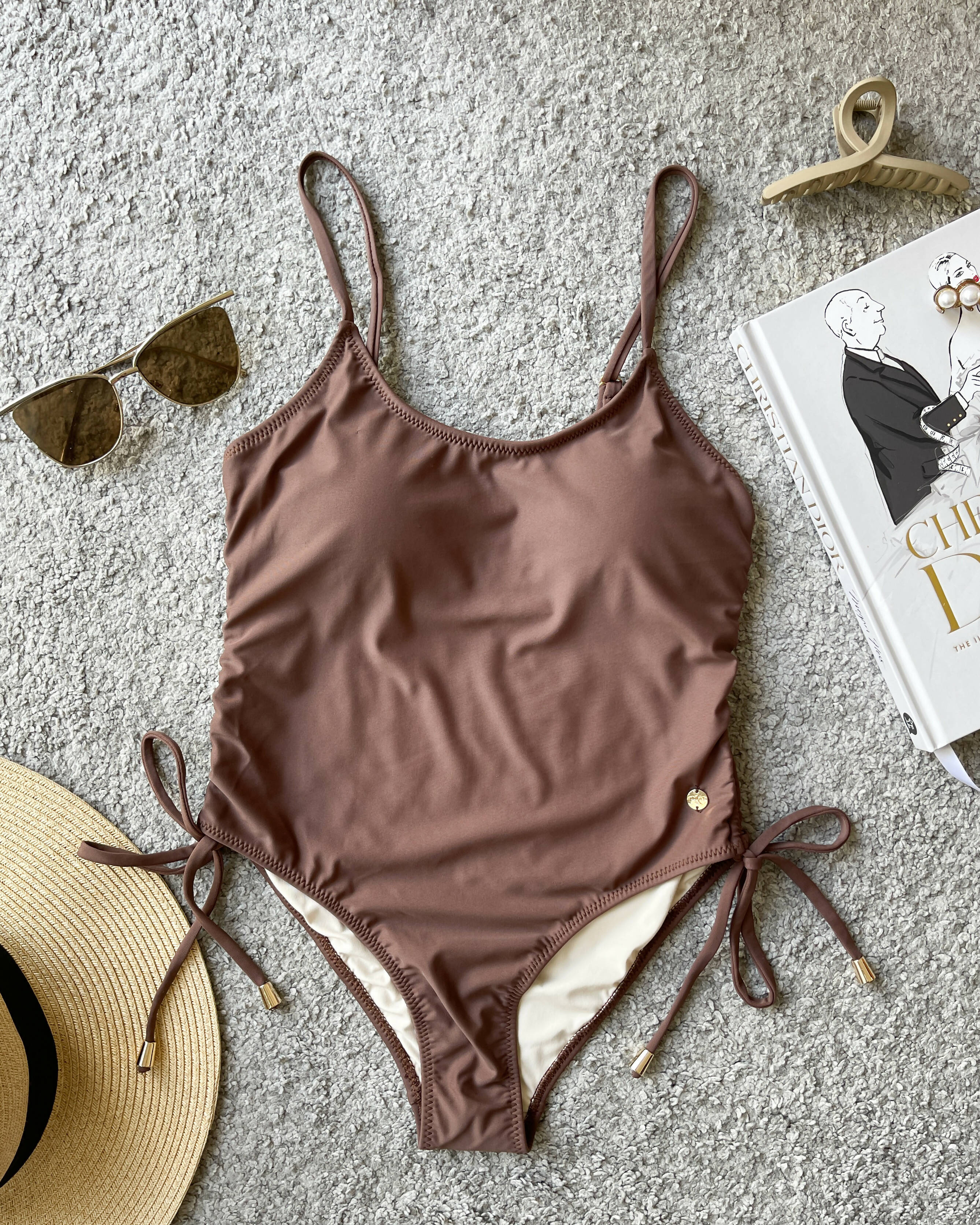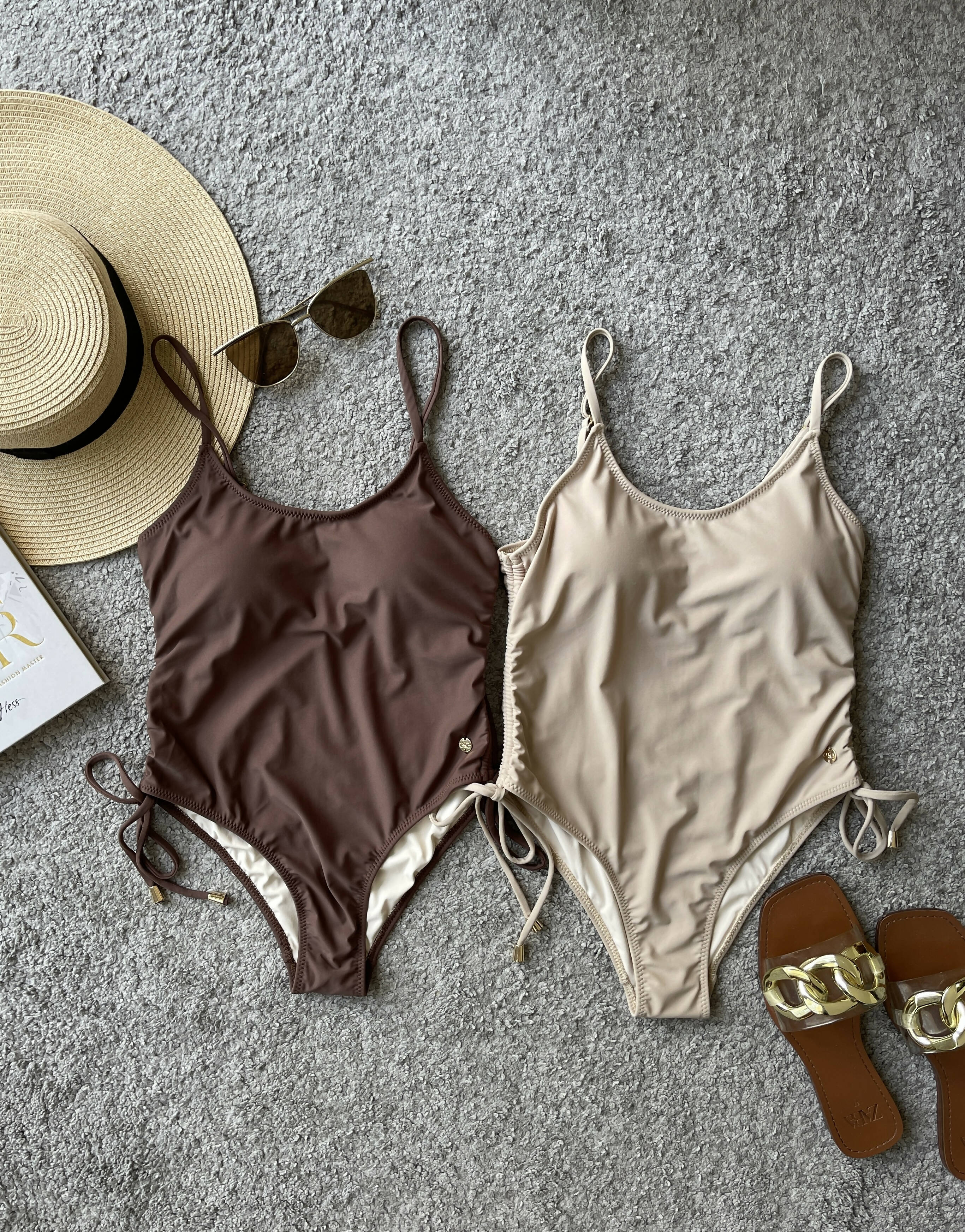 Jessica is a full piece swimwear that allows you to adjust the coverage of the leg hole with the adjustable tie strings on both sides!